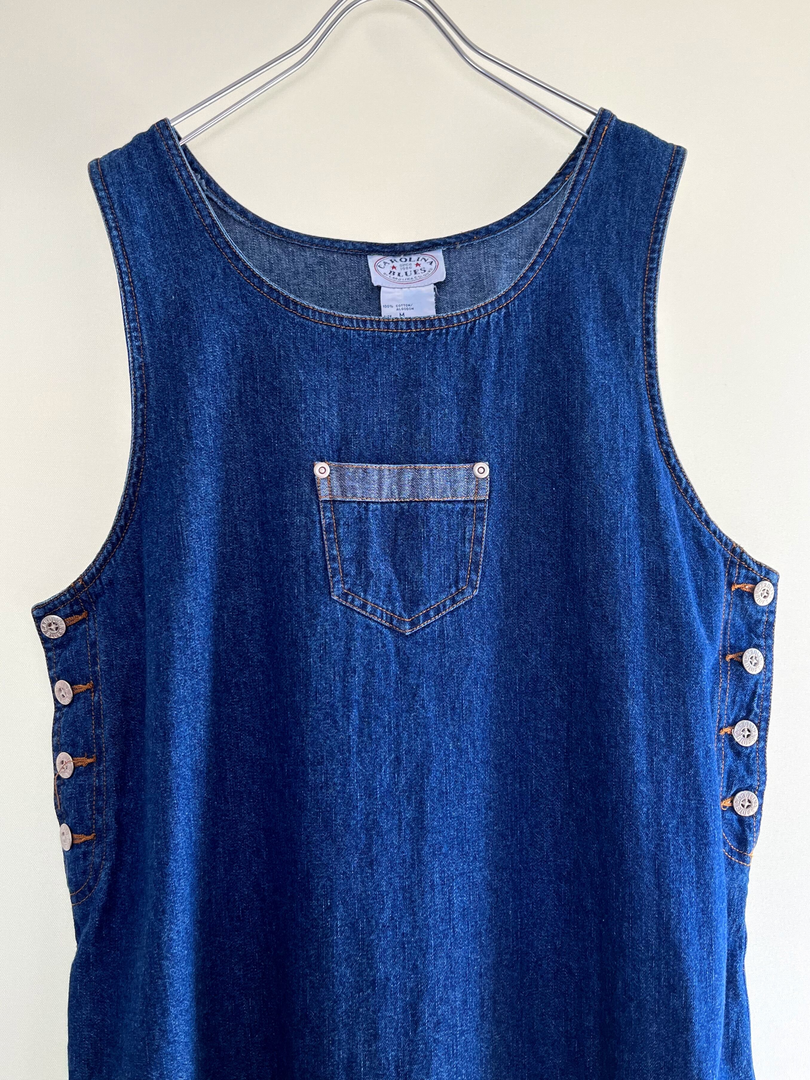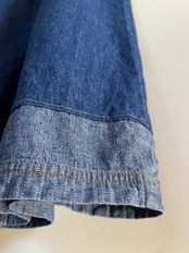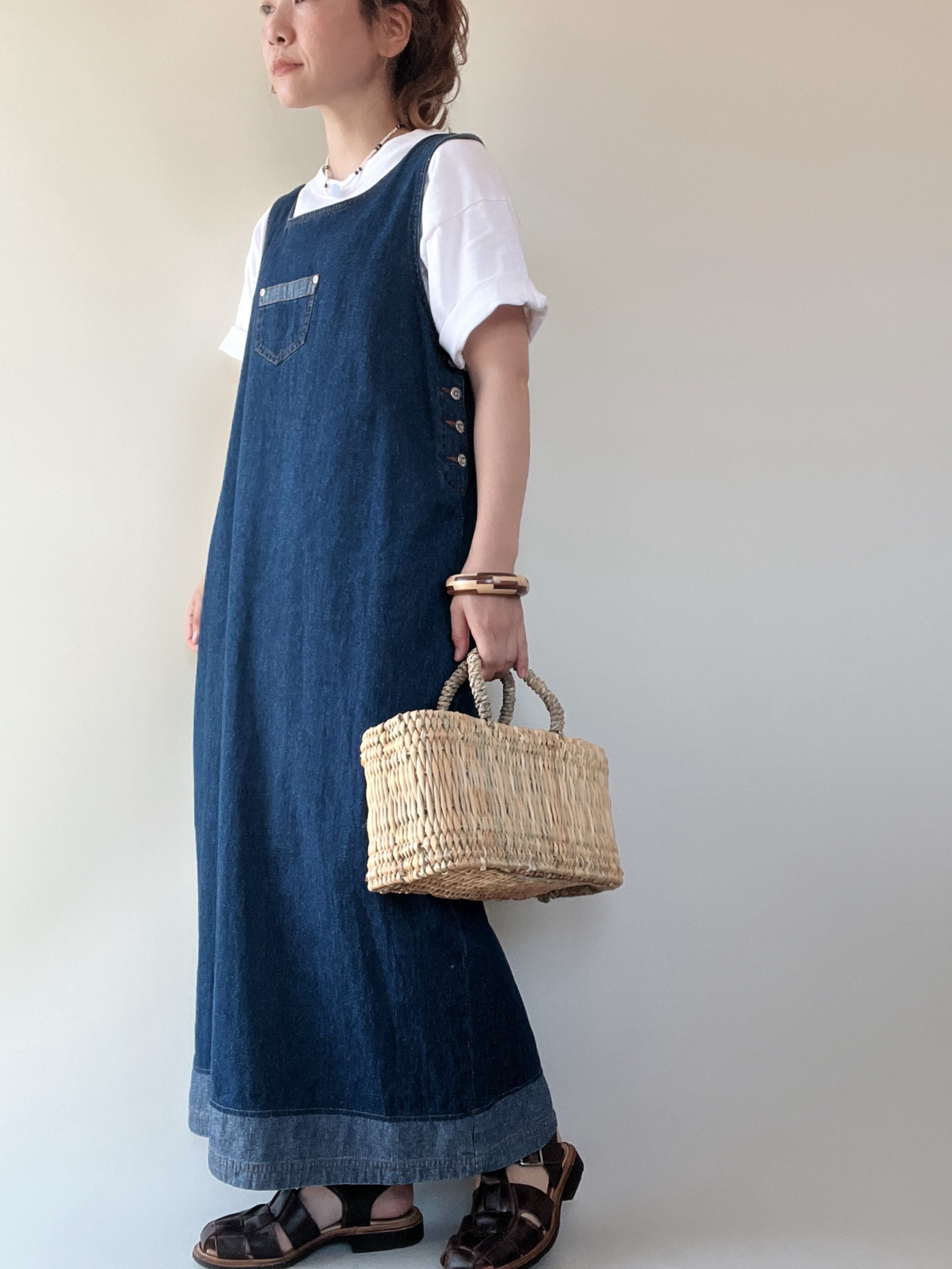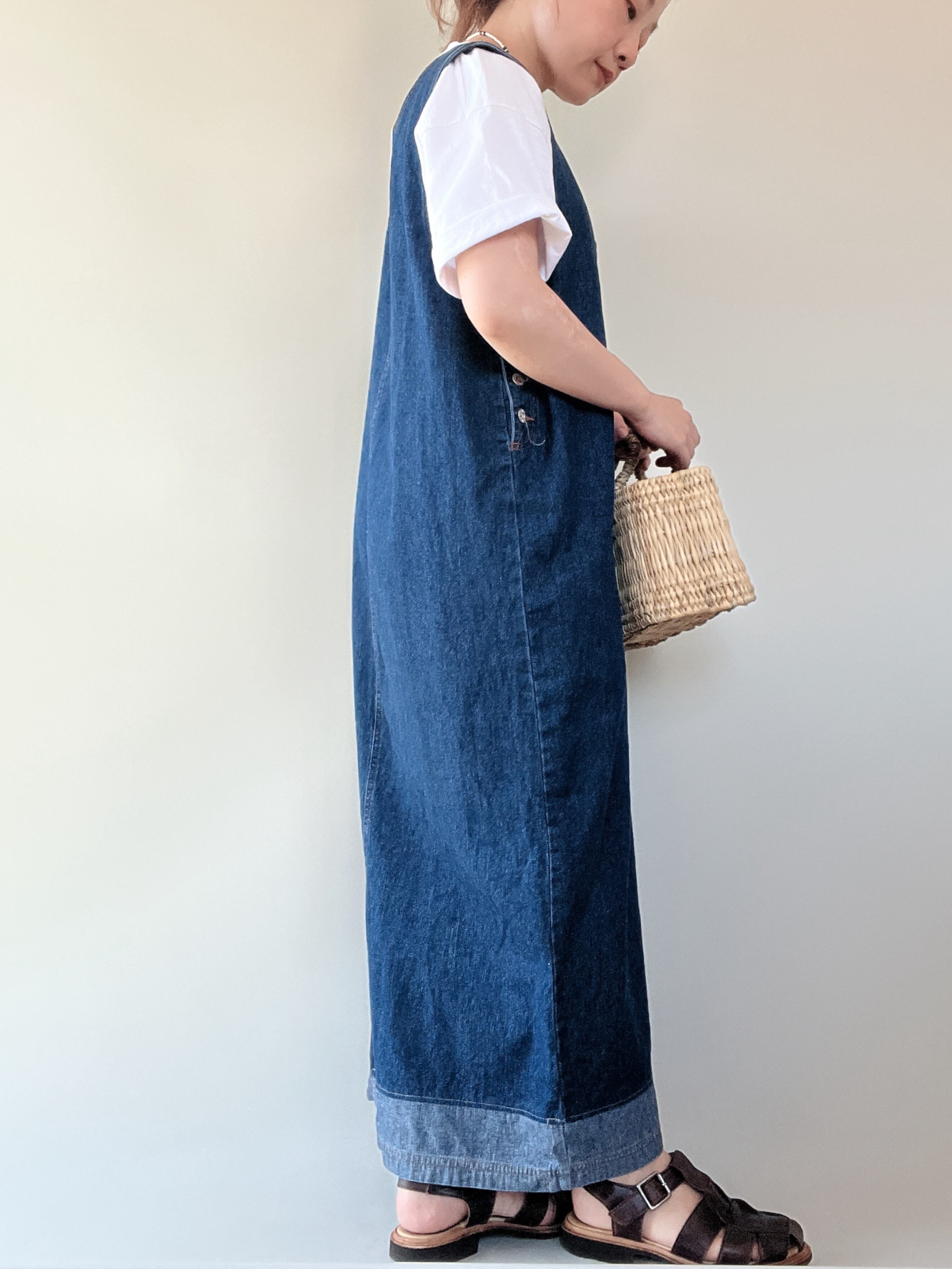 裾に淡いデニムの切り替え、胸に小さなポケットなど、古着らしい遊び心あるデザインも兼ね備え,