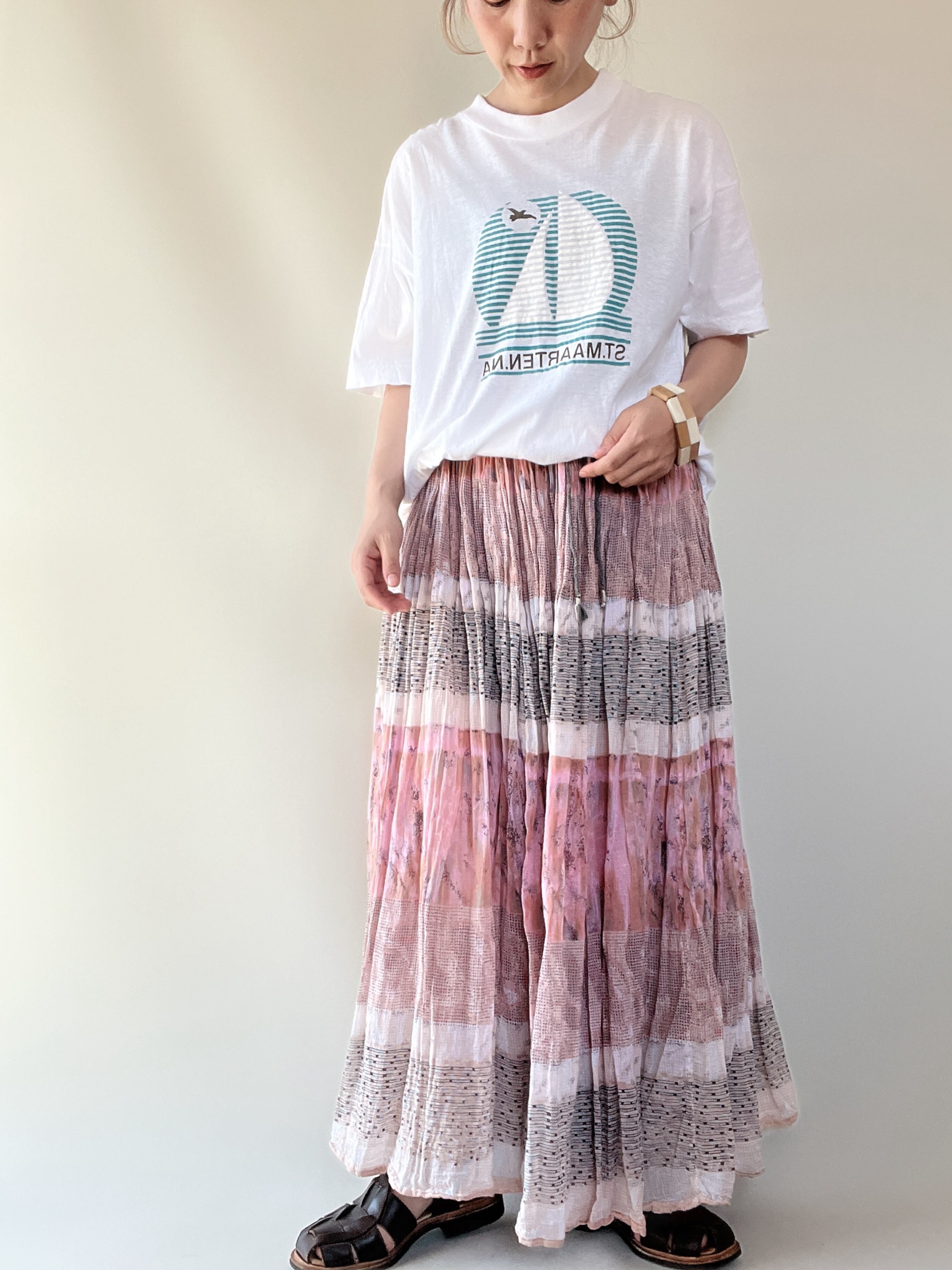 ボリュームあるマキシ丈スカートです。