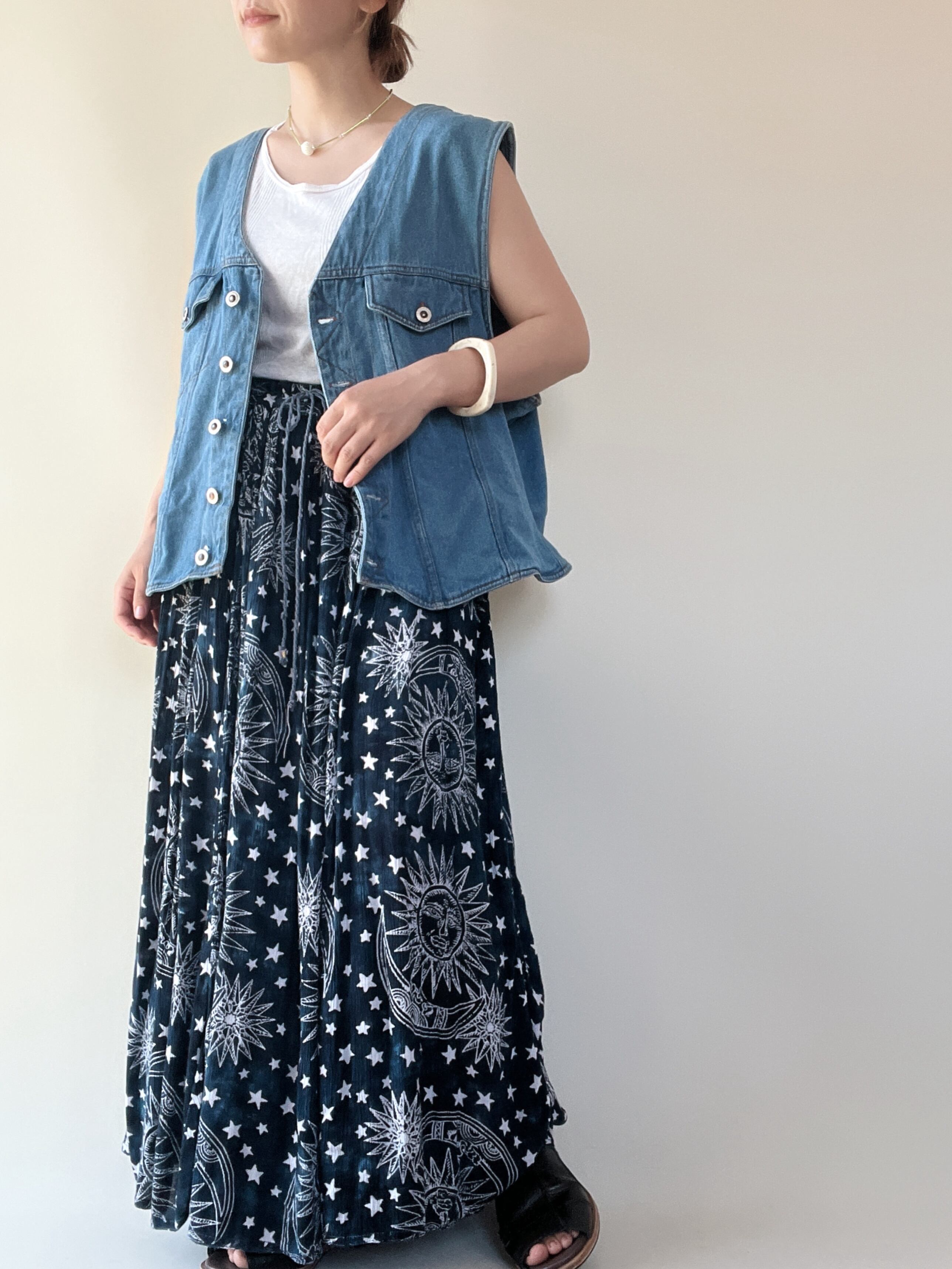 古着らしいデザインのマキシ丈スカートです。