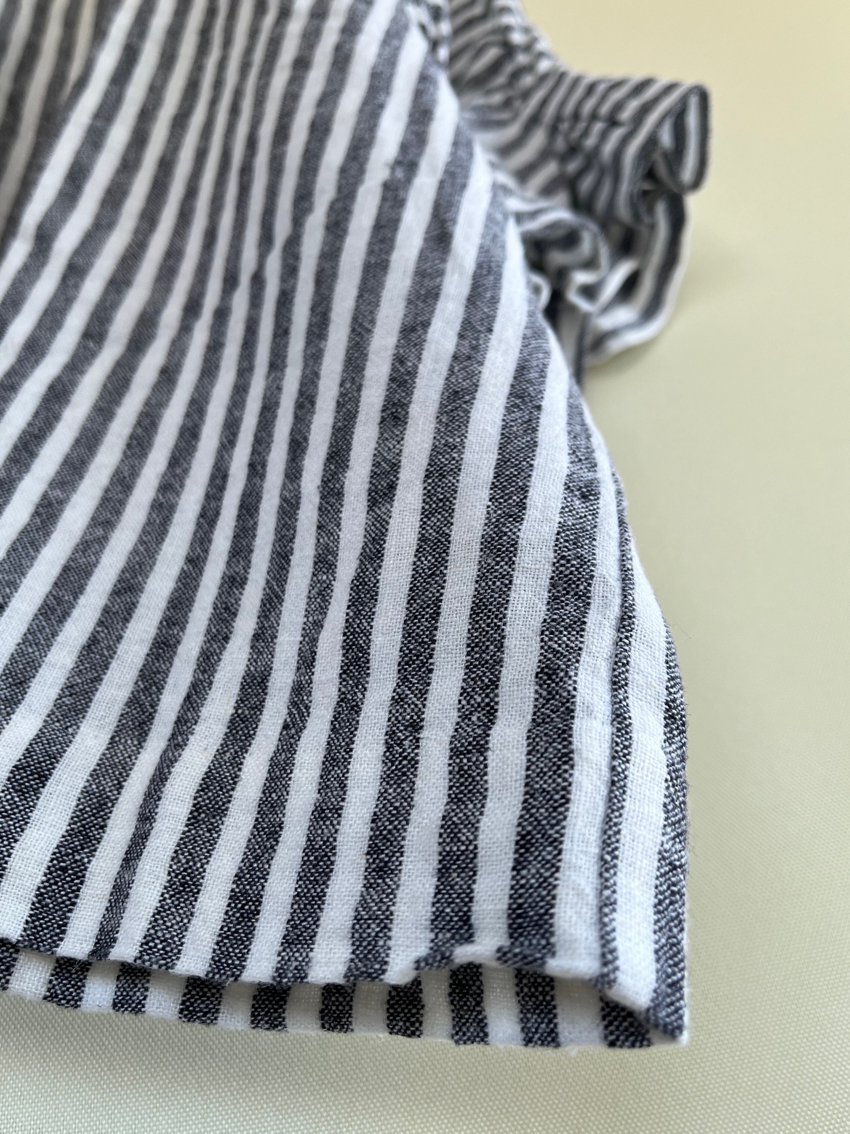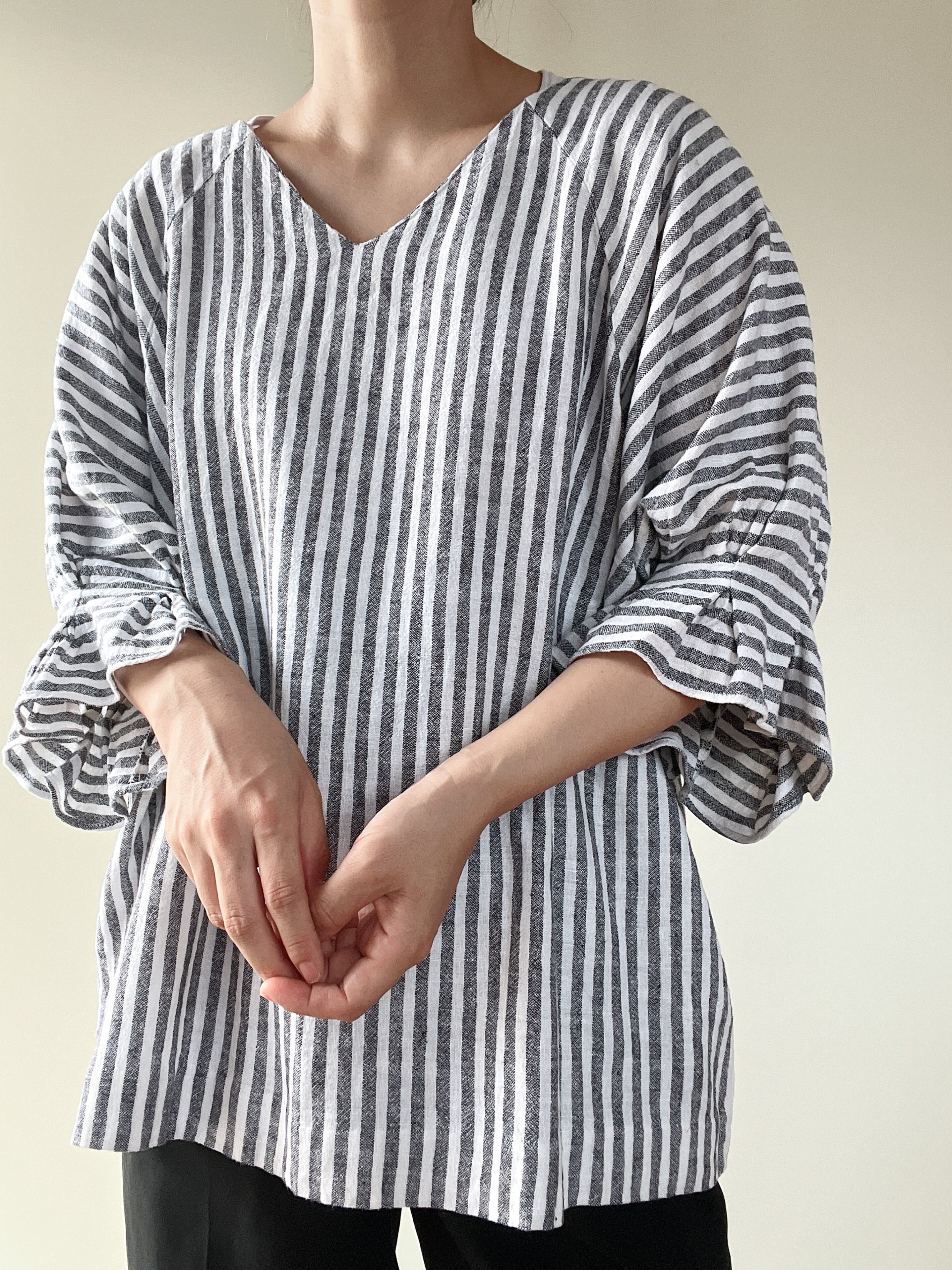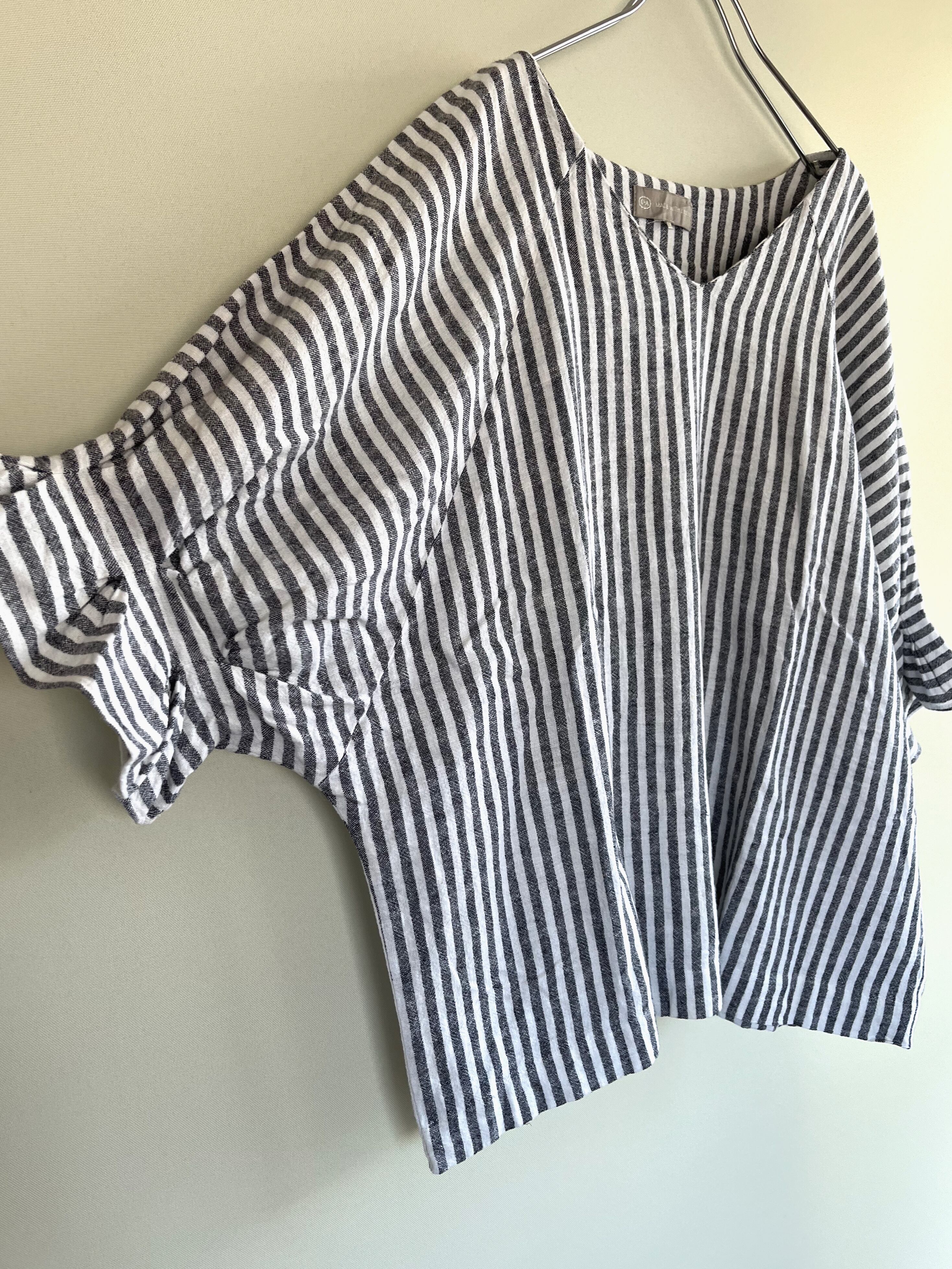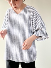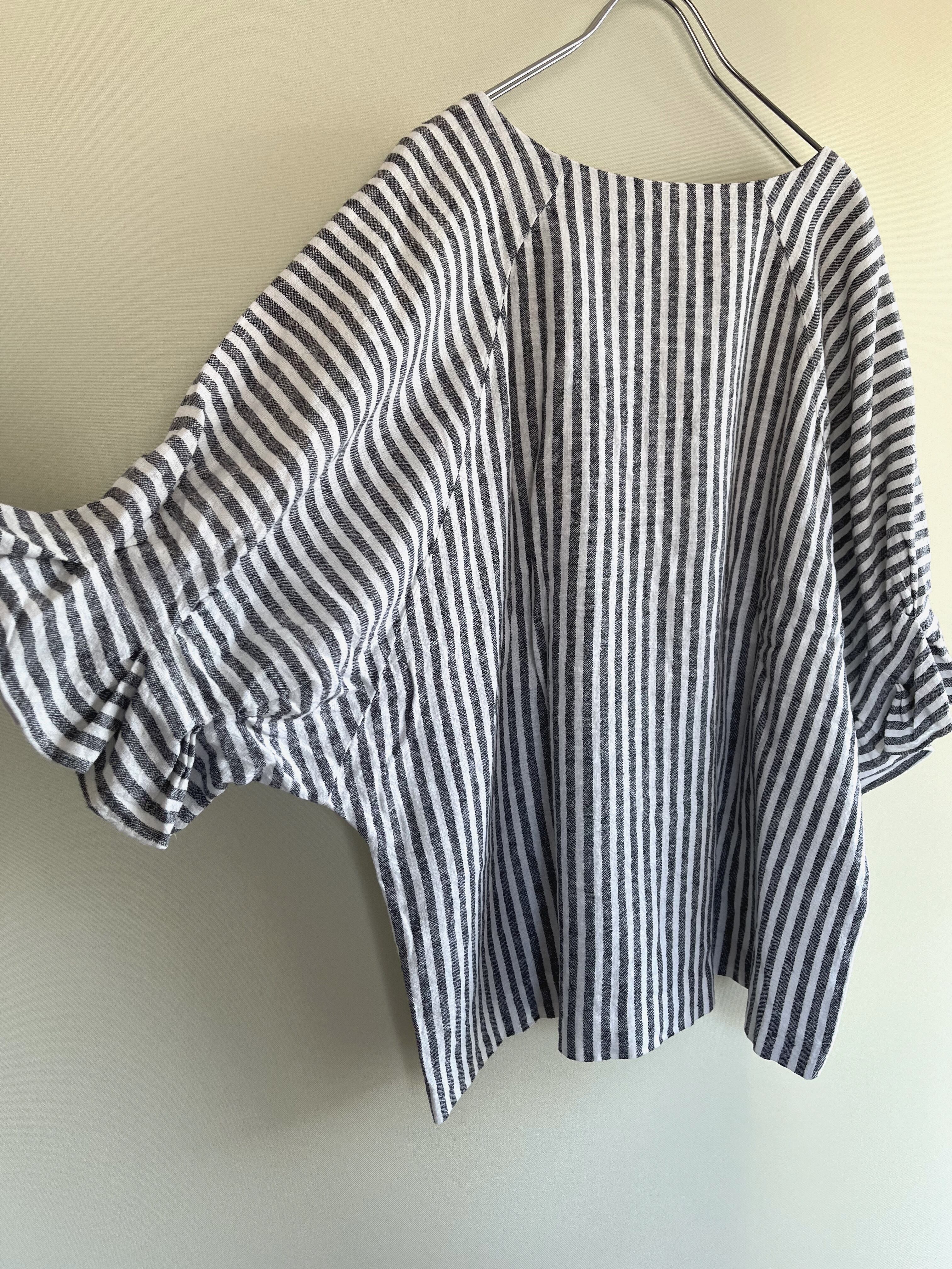 linen rayon stripe round sleeve tops