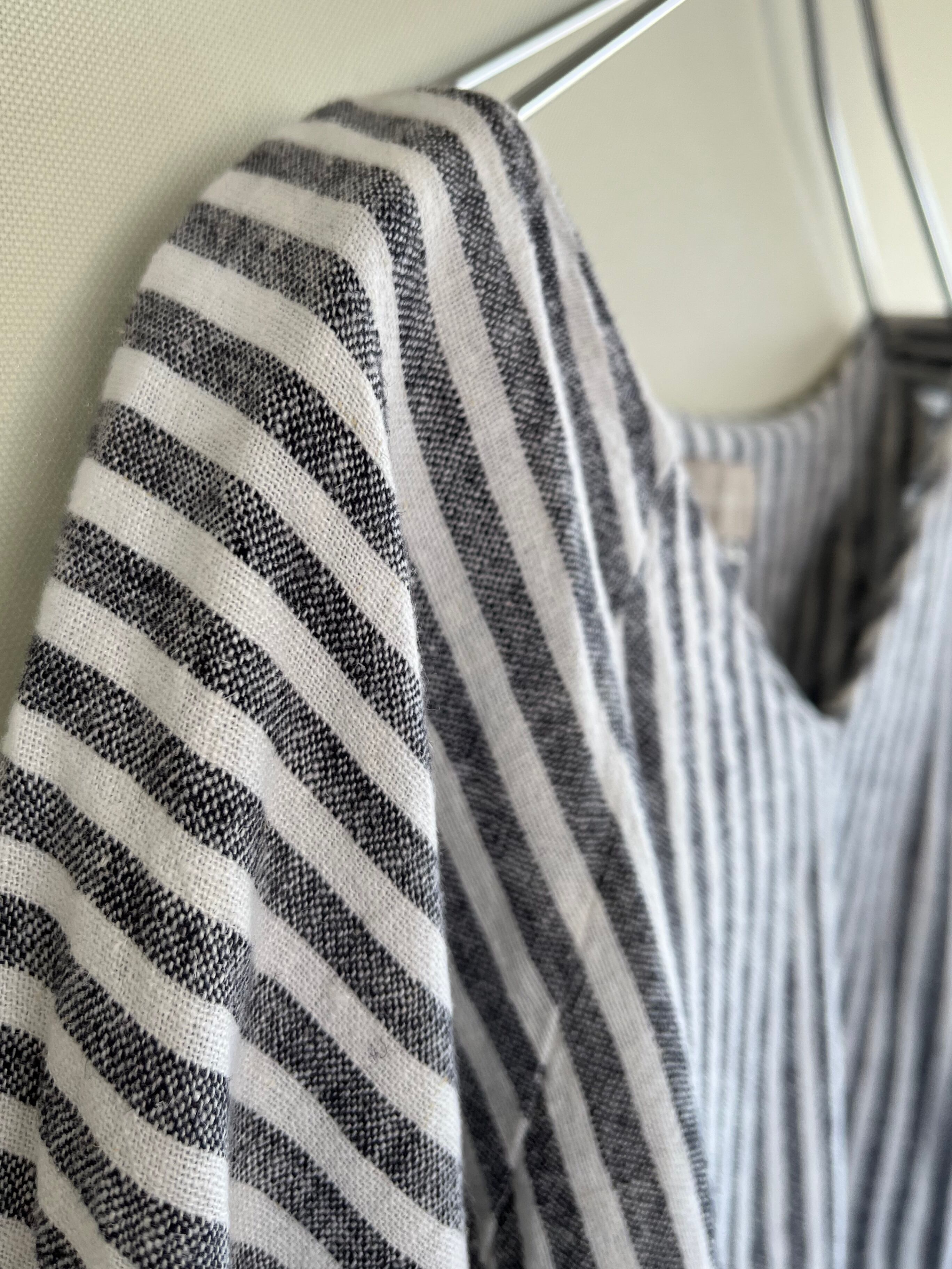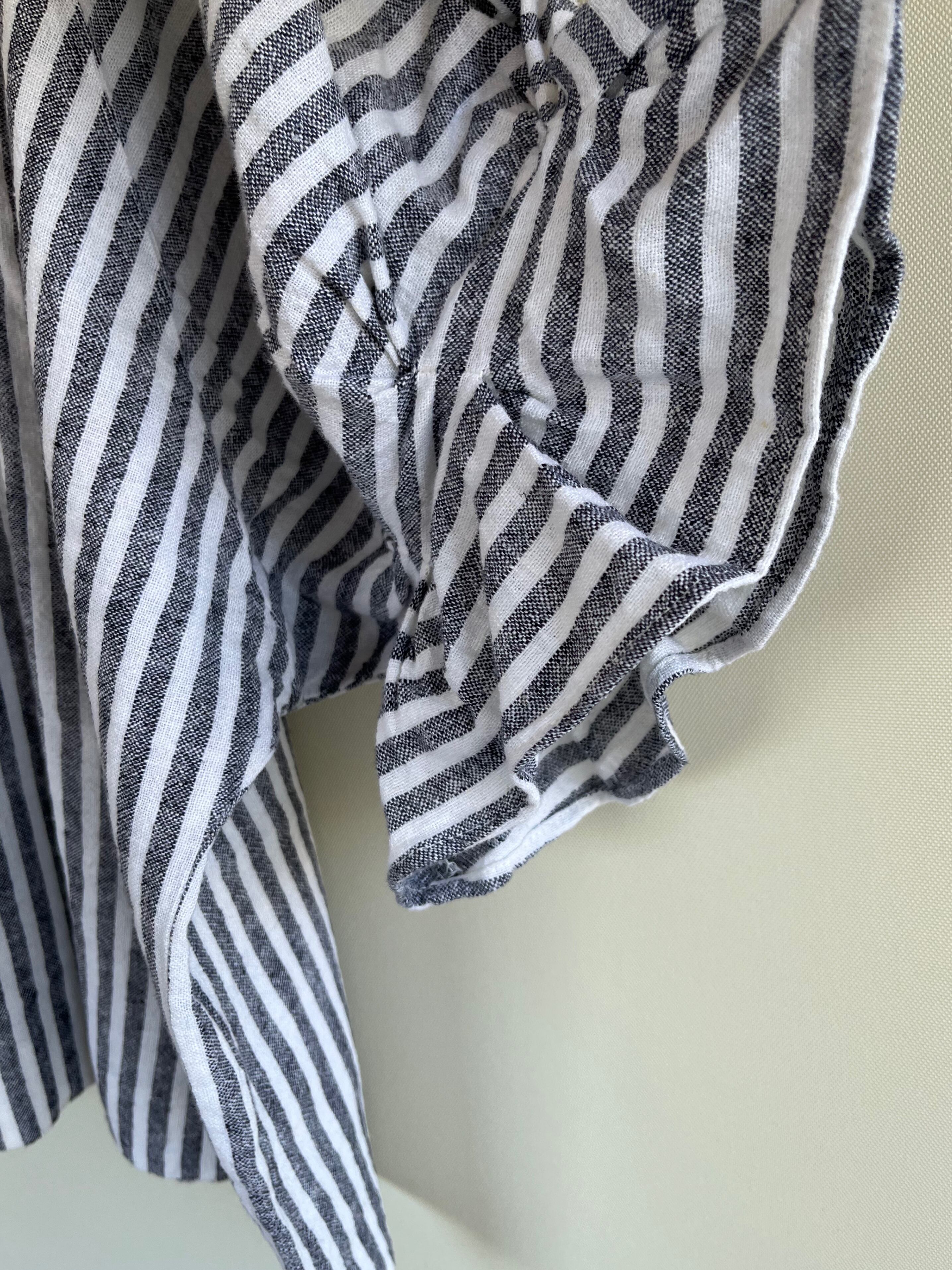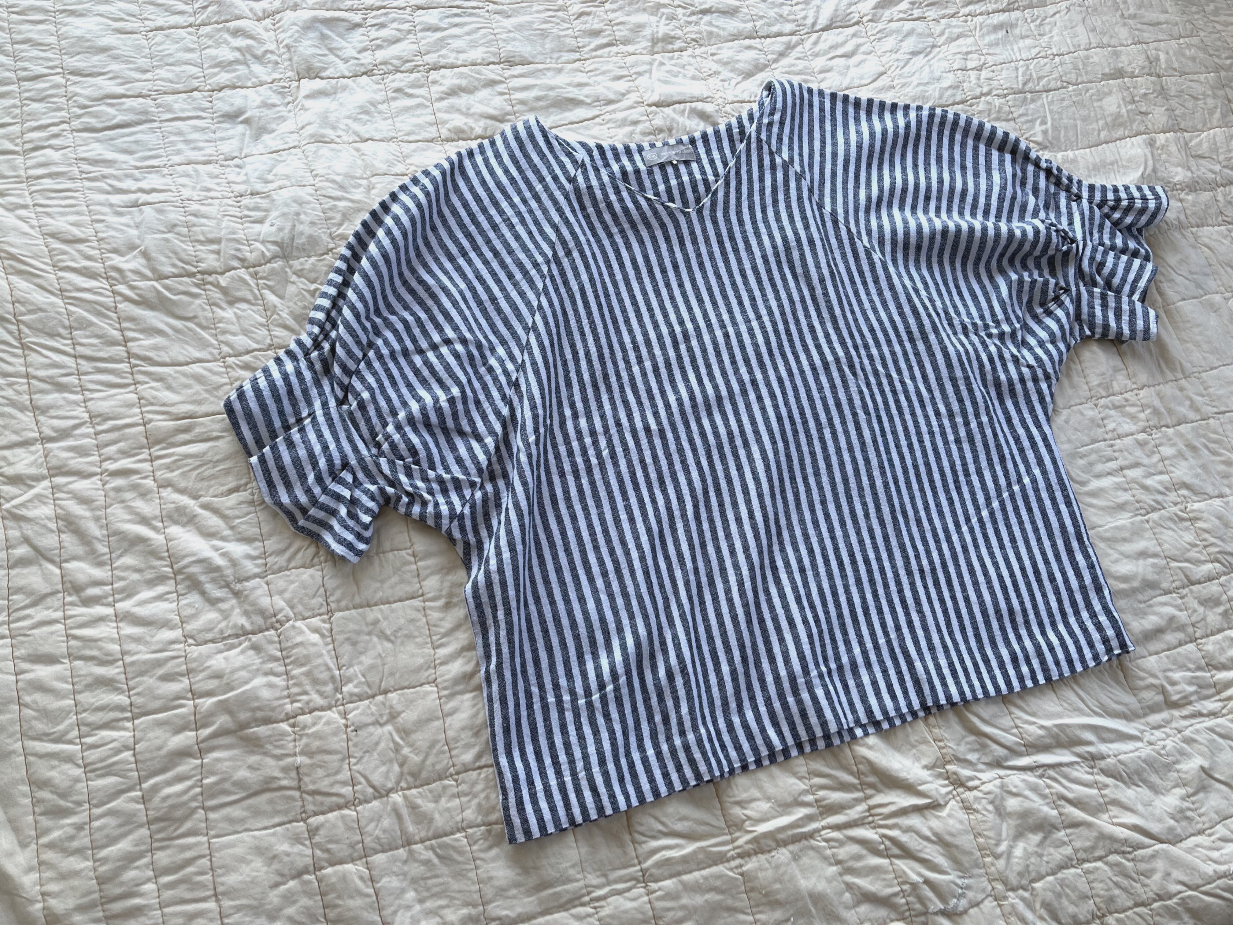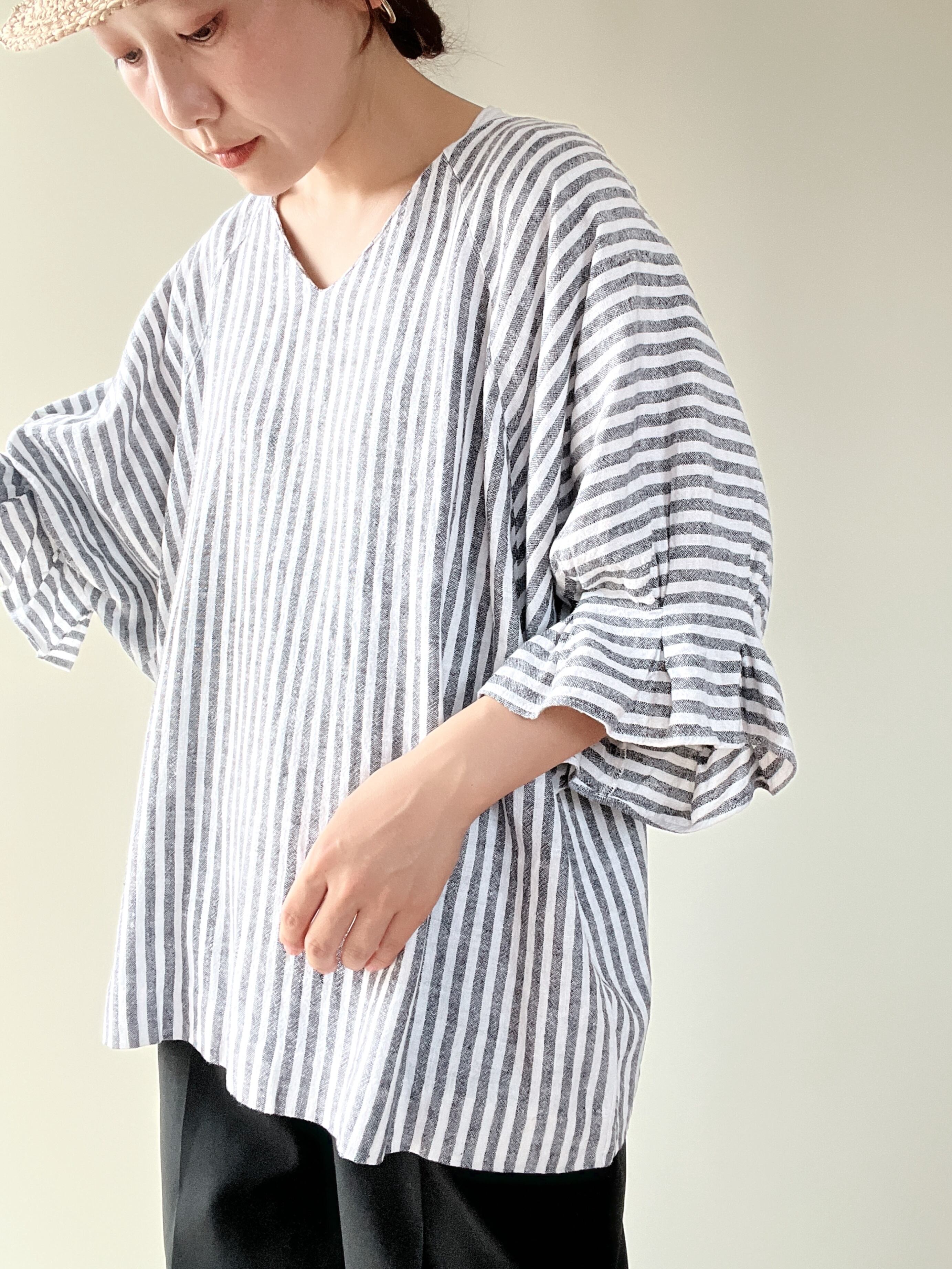 linen rayon stripe round sleeve tops