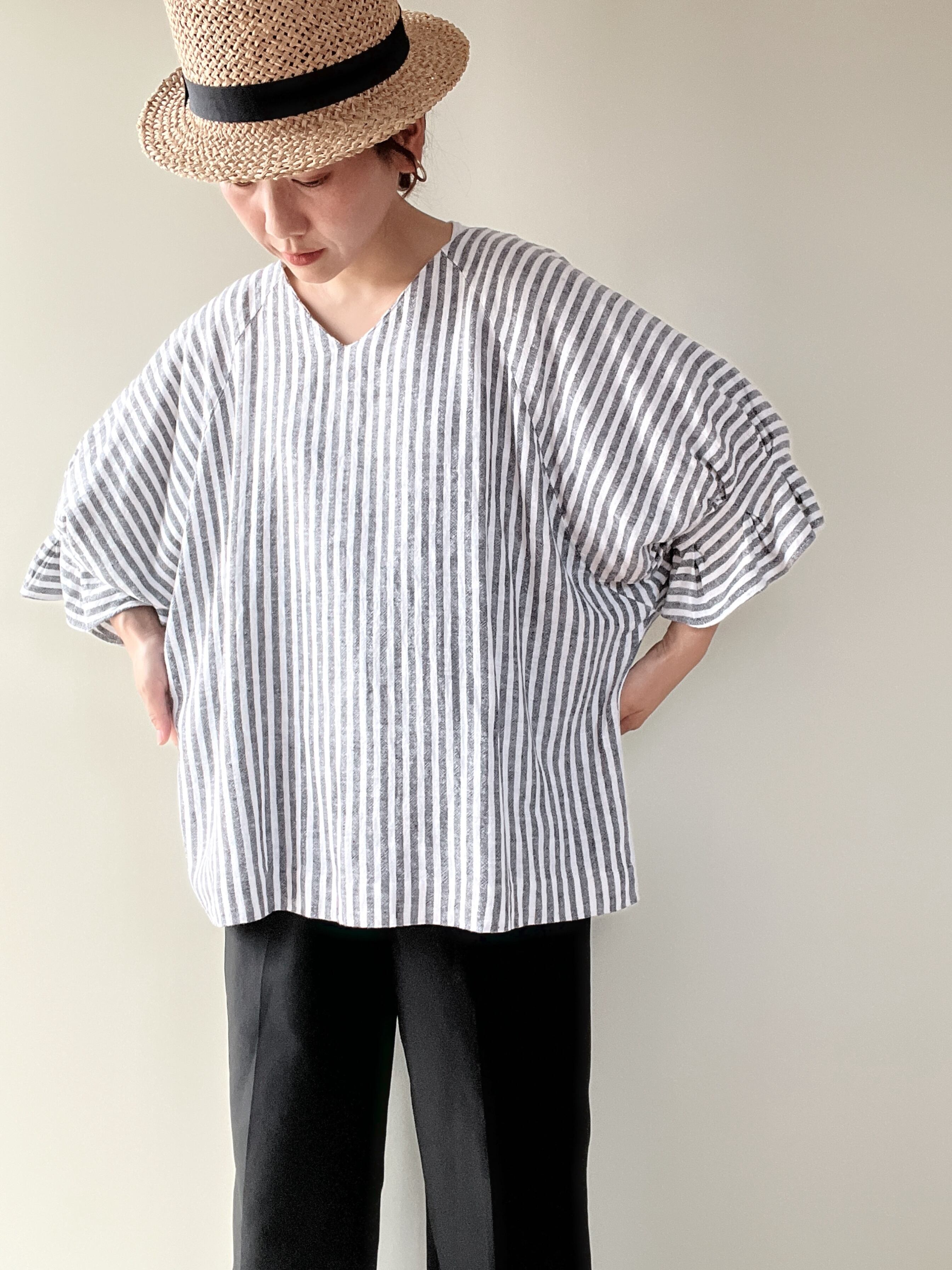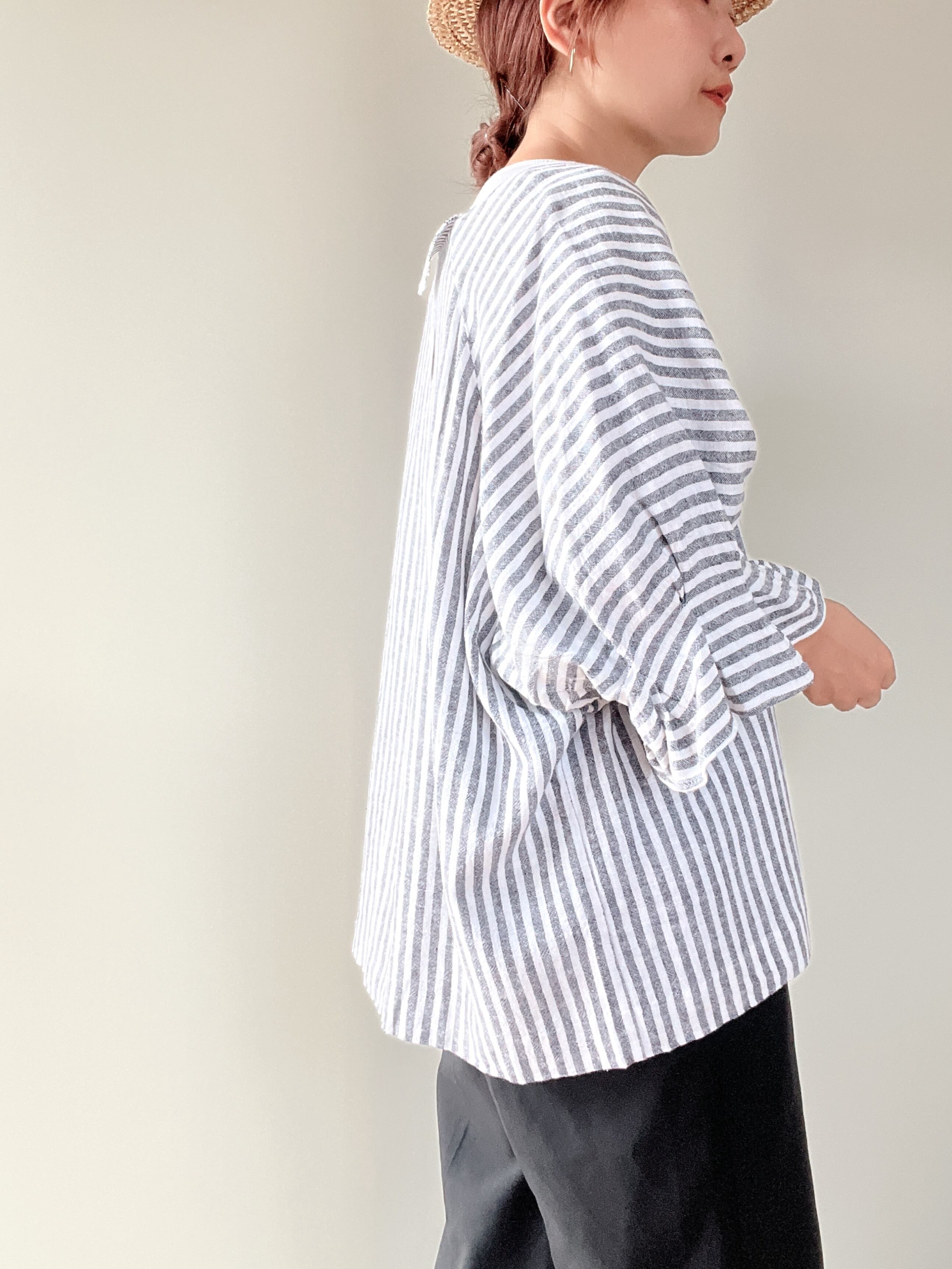 丸い袖が優しい印象です。