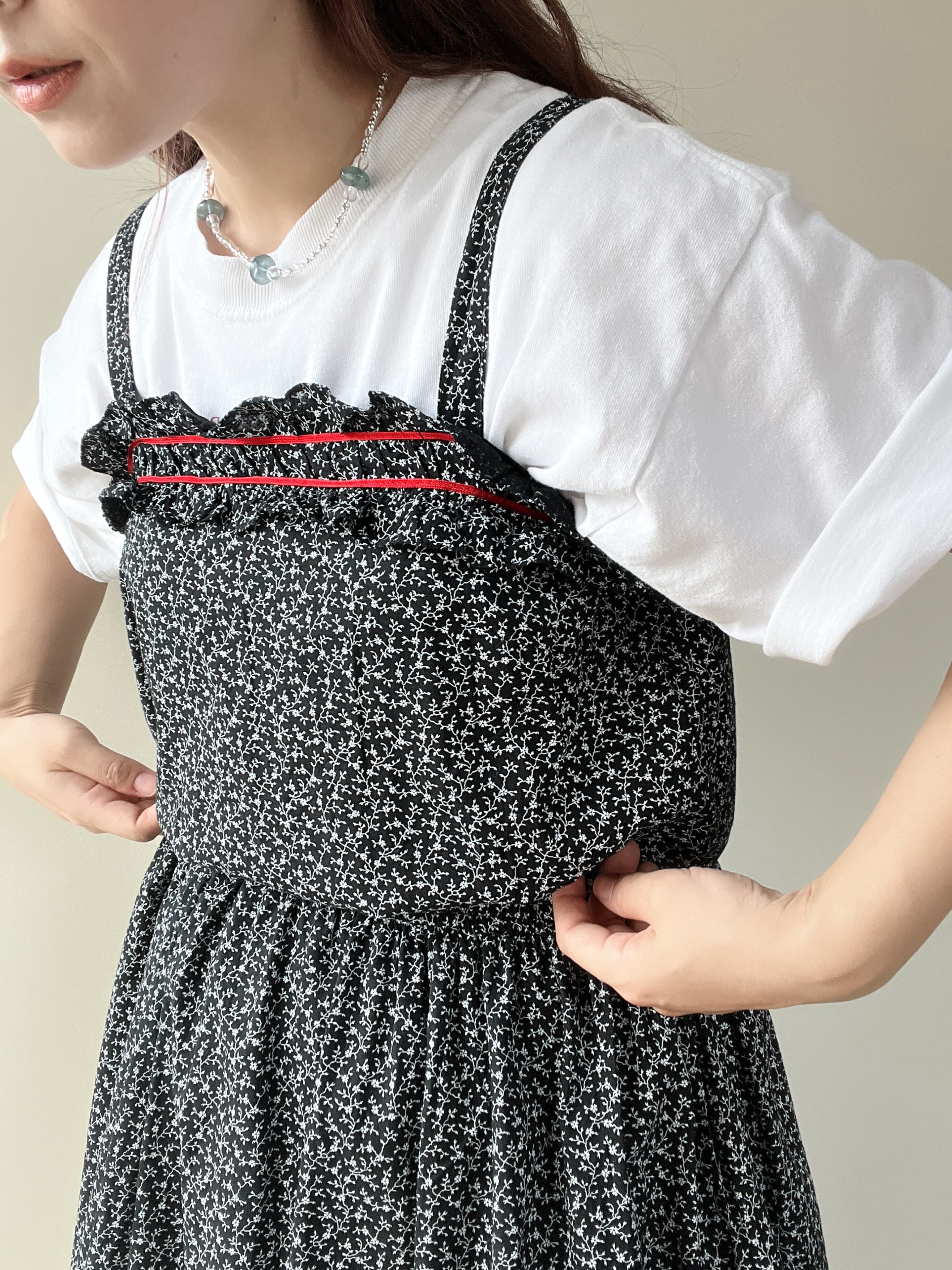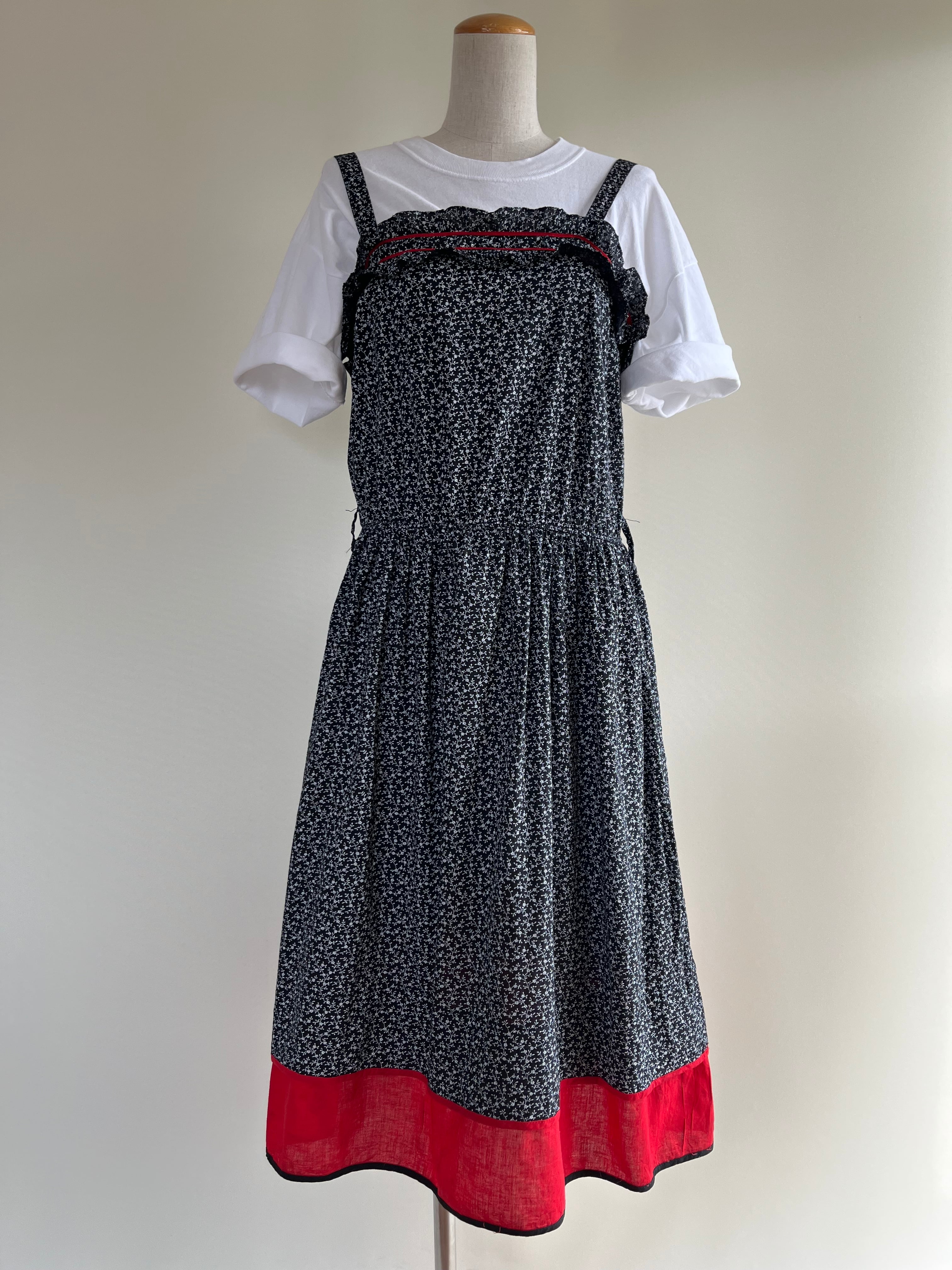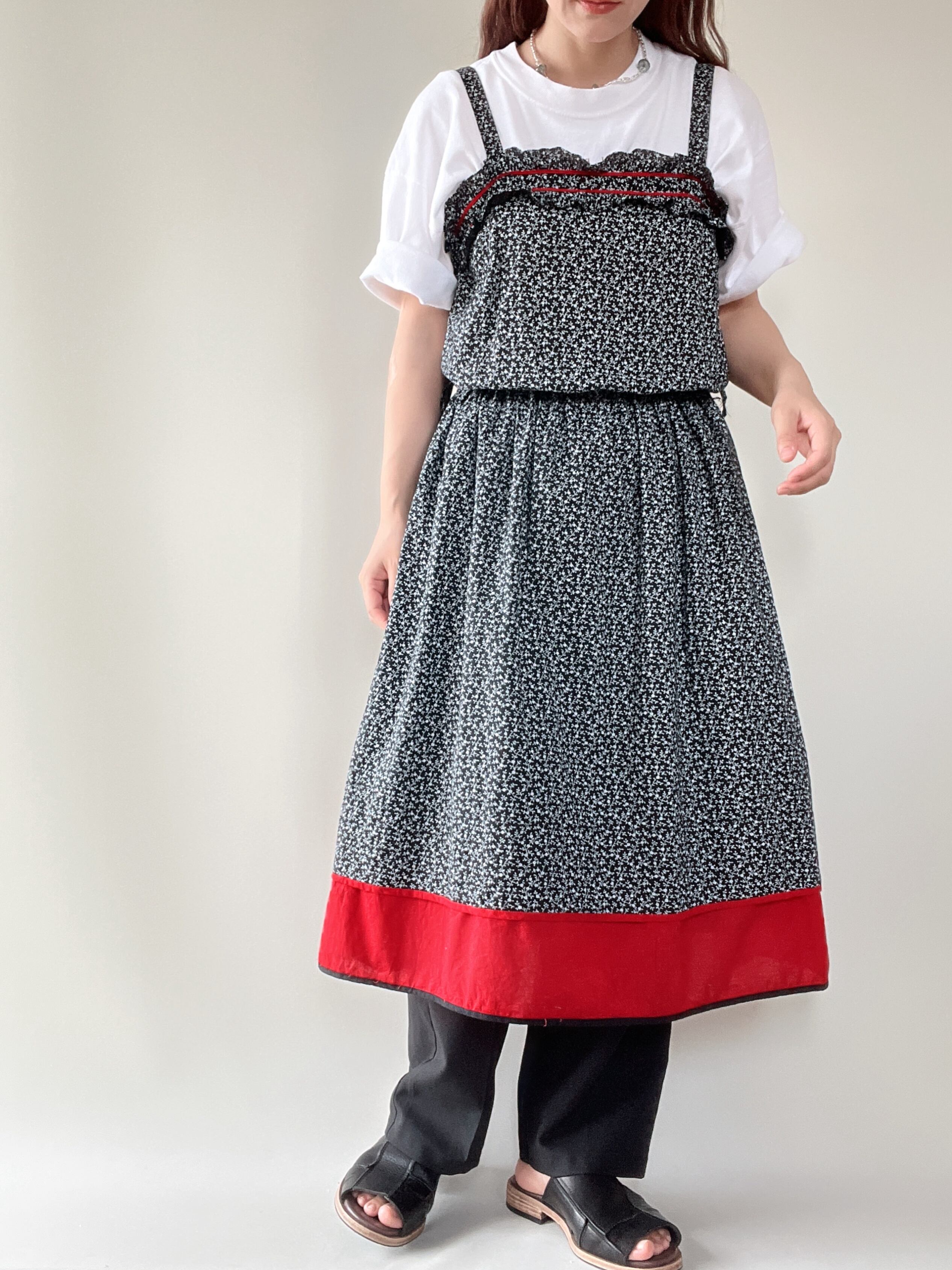 レッドカラーの裾切り替えが古着らしいデザインのキャミソールワンピースです。