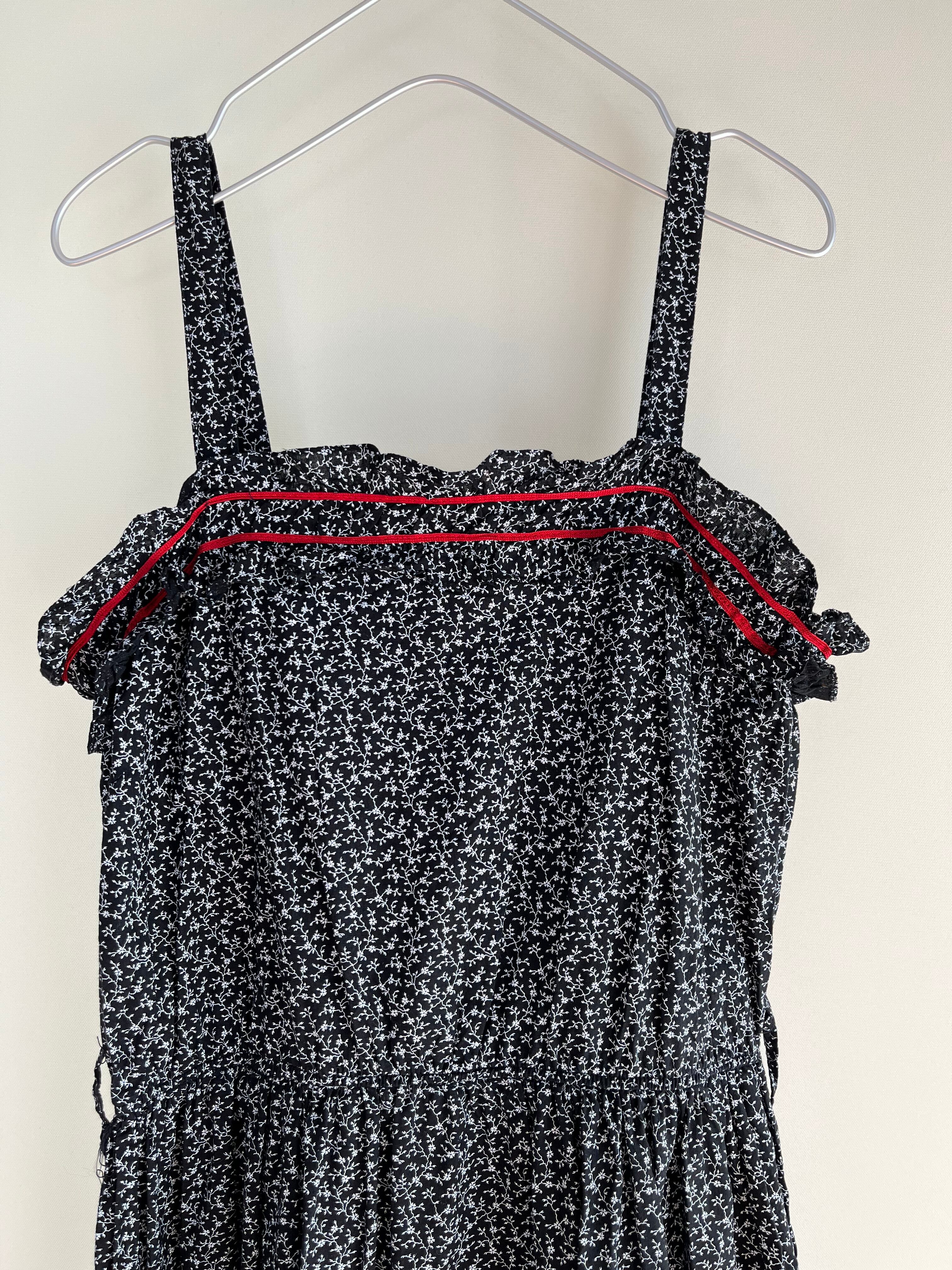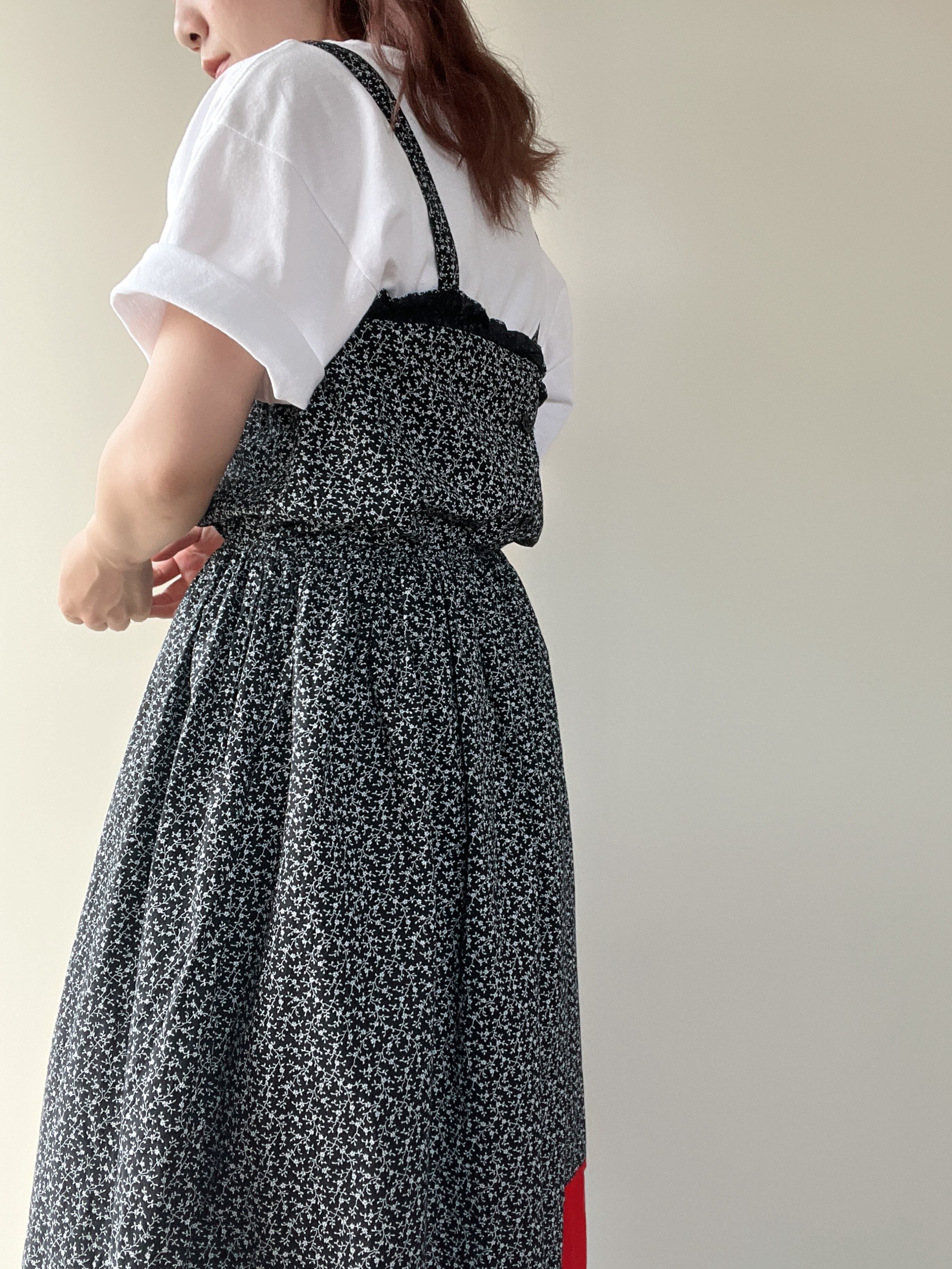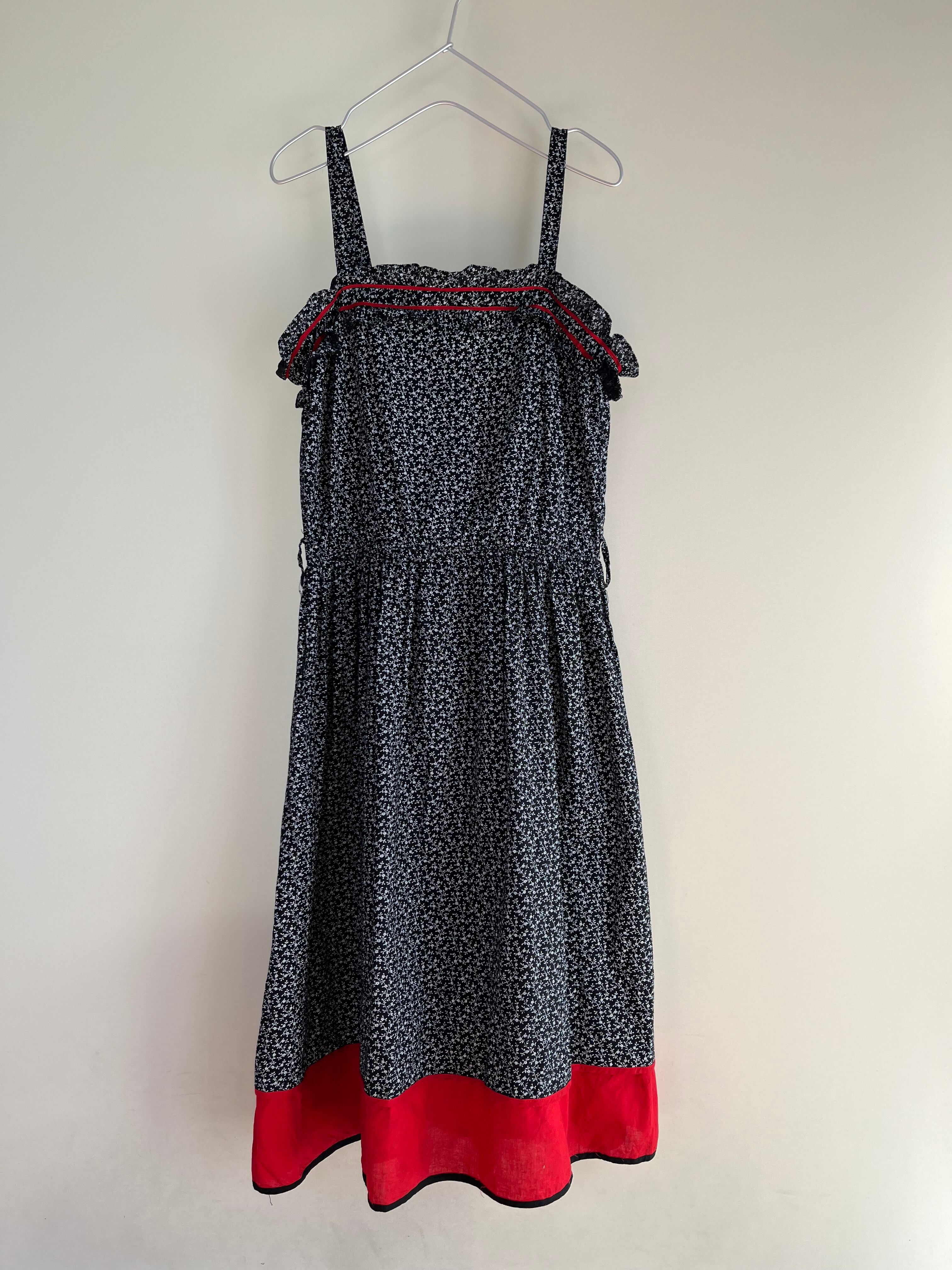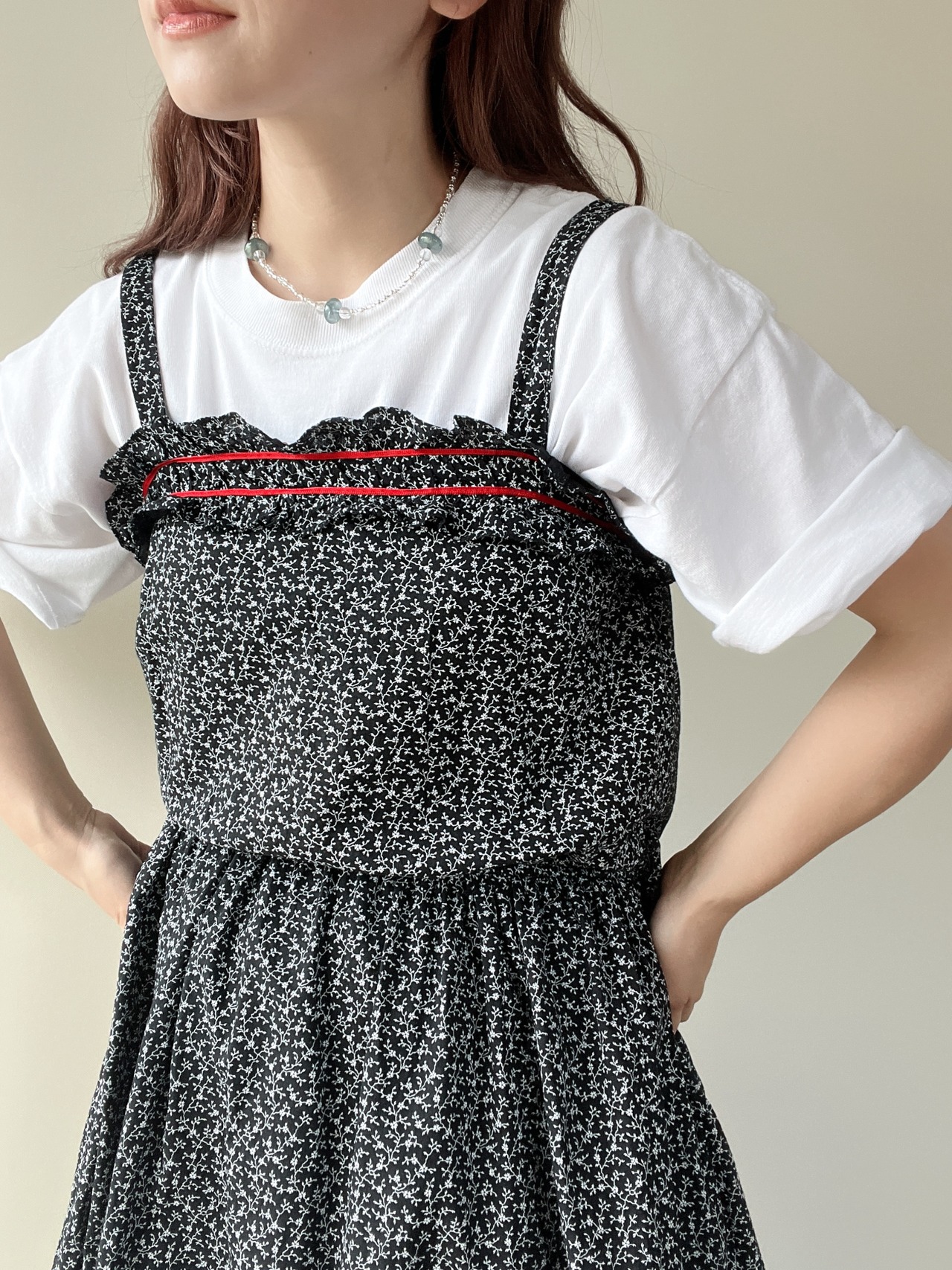 レッドカラーの裾切り替えが古着らしいデザインのキャミソールワンピースです。