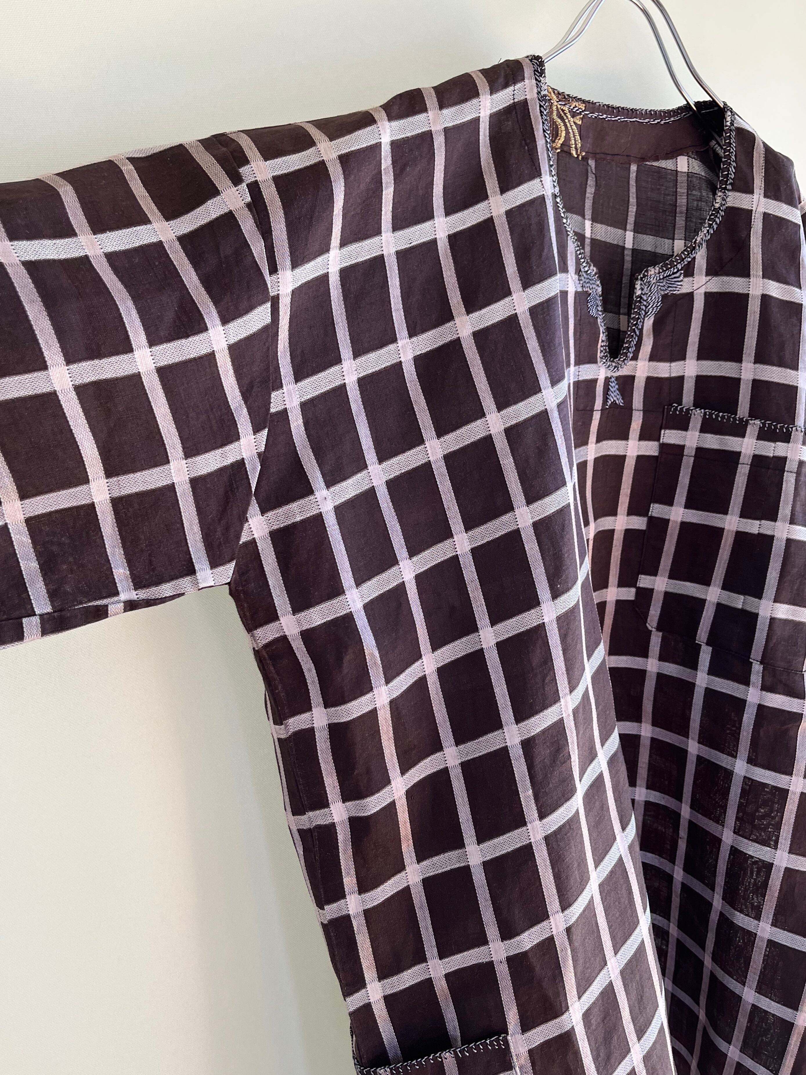 白黒2色が,混ざった糸で手刺繍のステッチが細かくデザインされています。