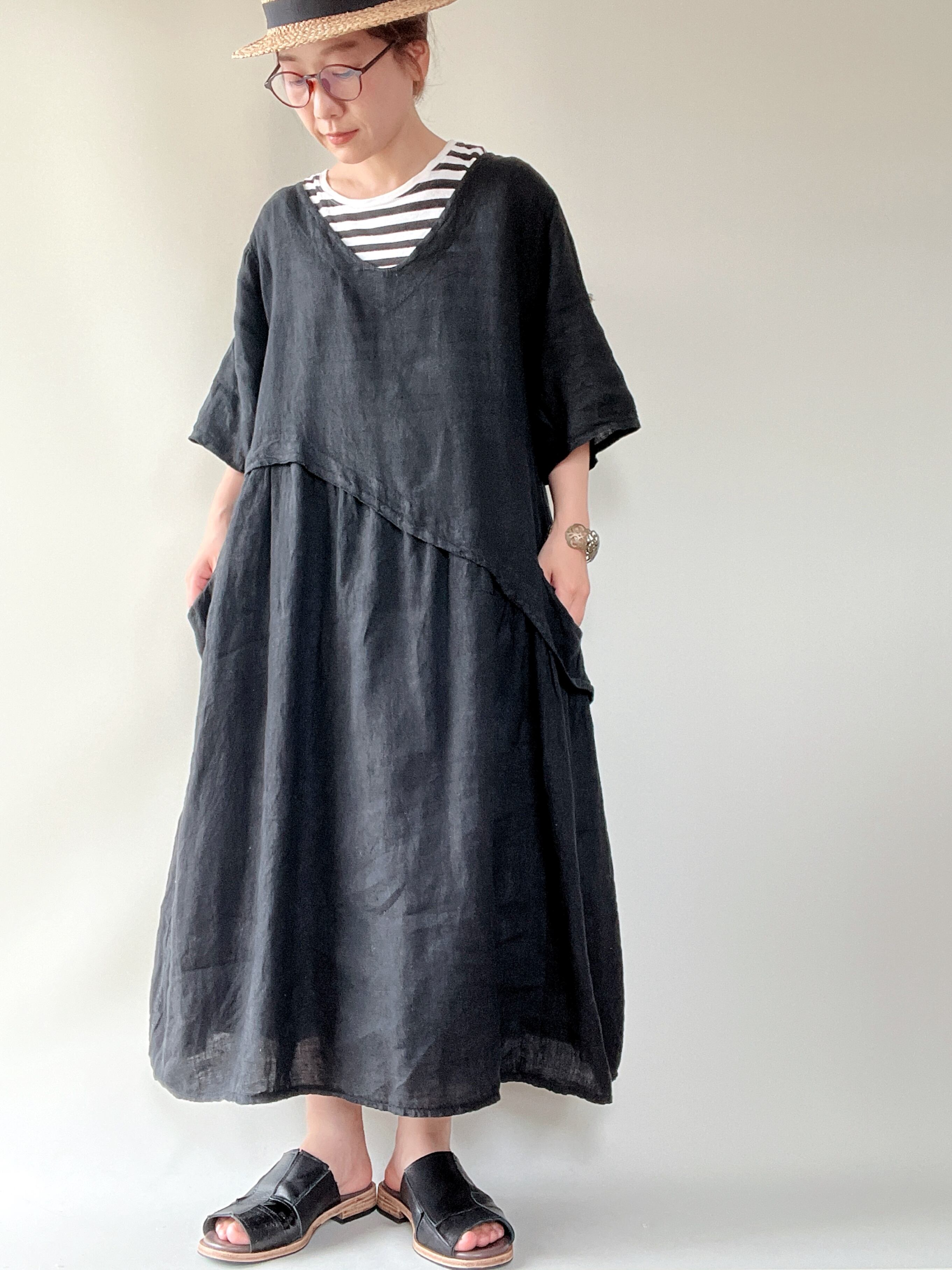 お腹あたりには斜めに切り替えのはいったシルエットで