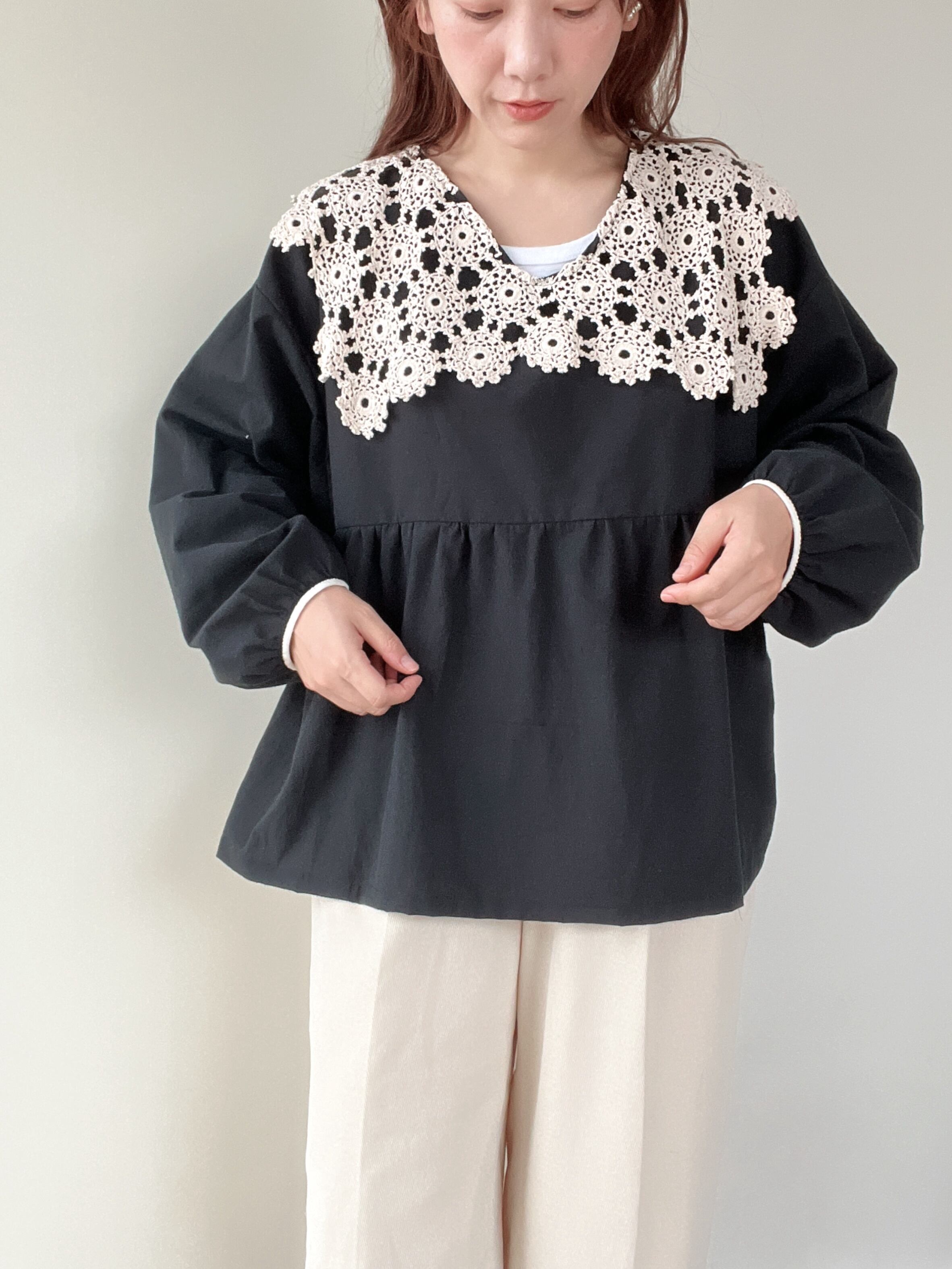 やや四角いシルエットでセーラーカラーのようなデザインとなりました。