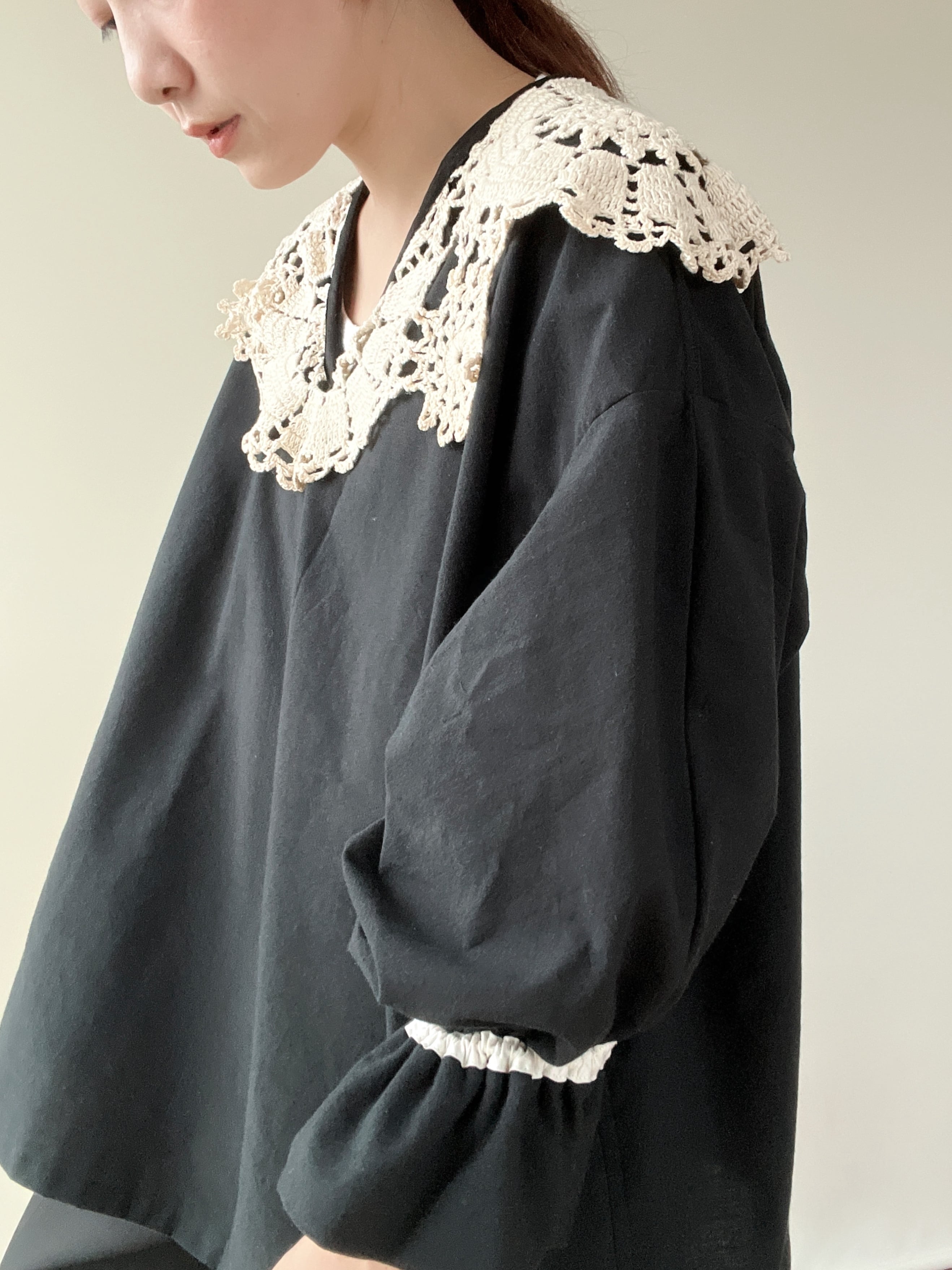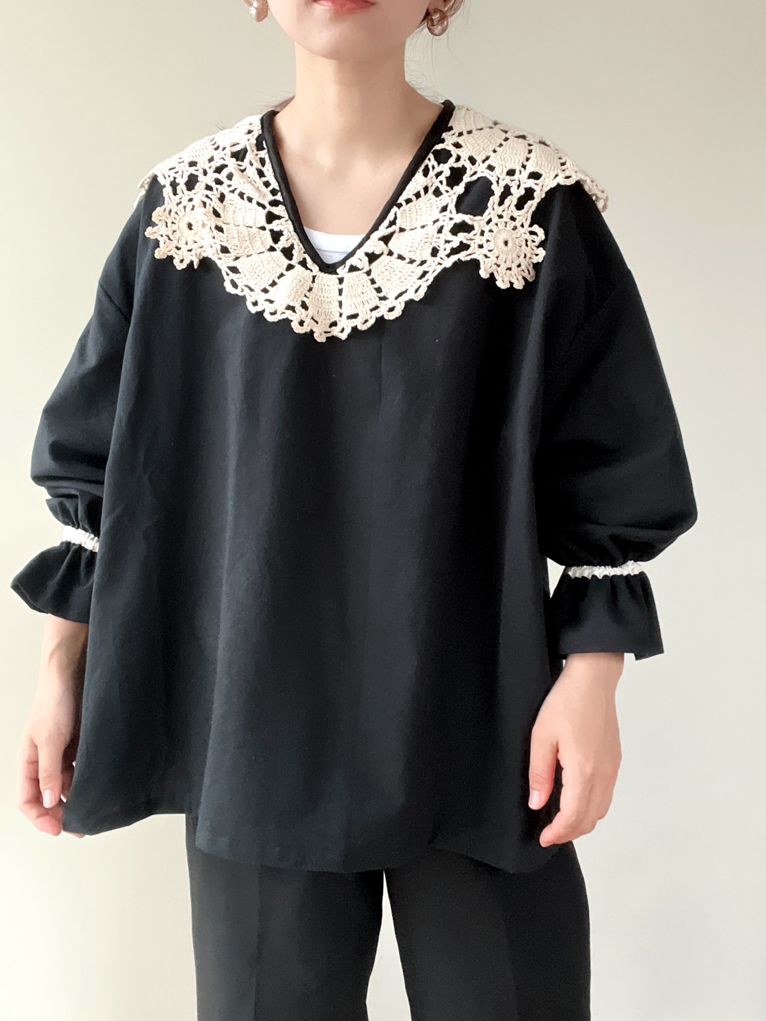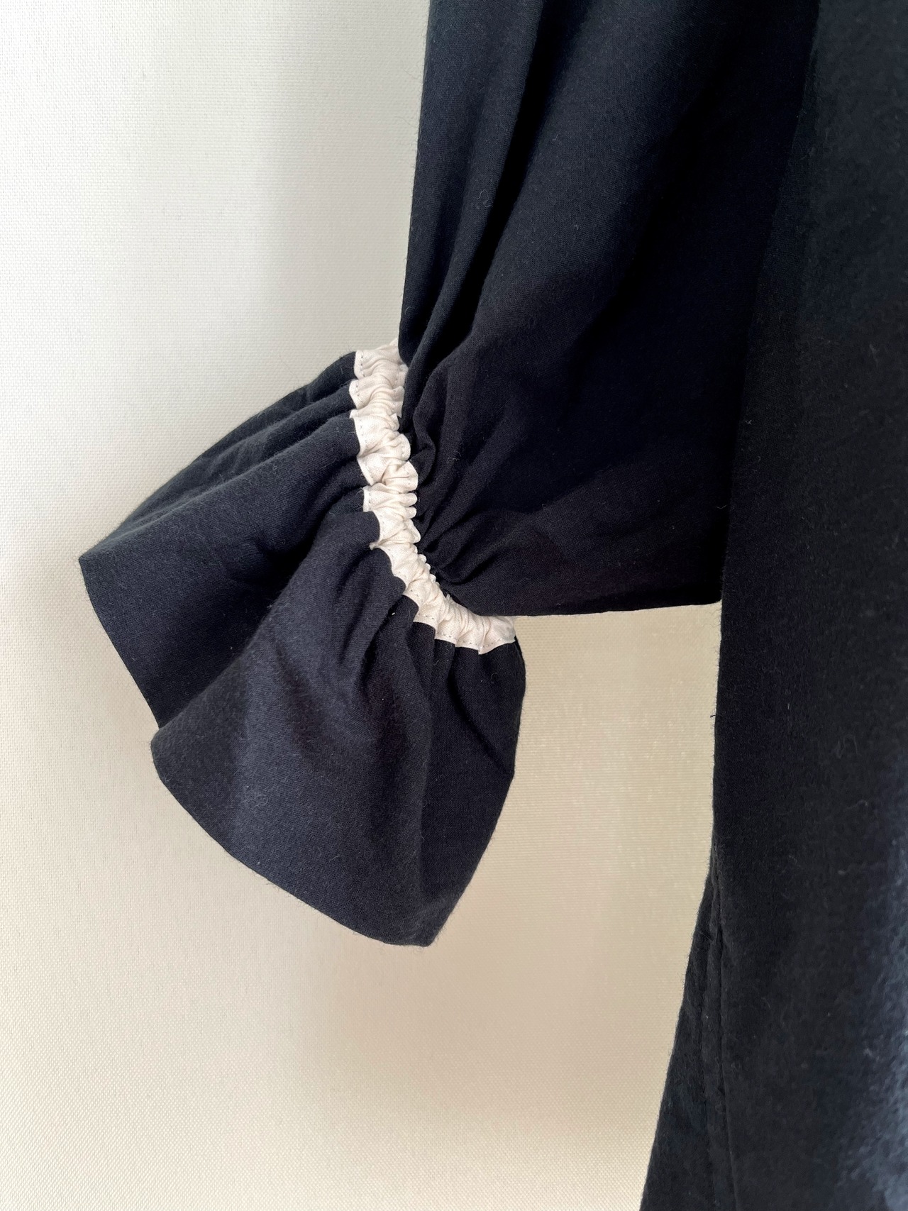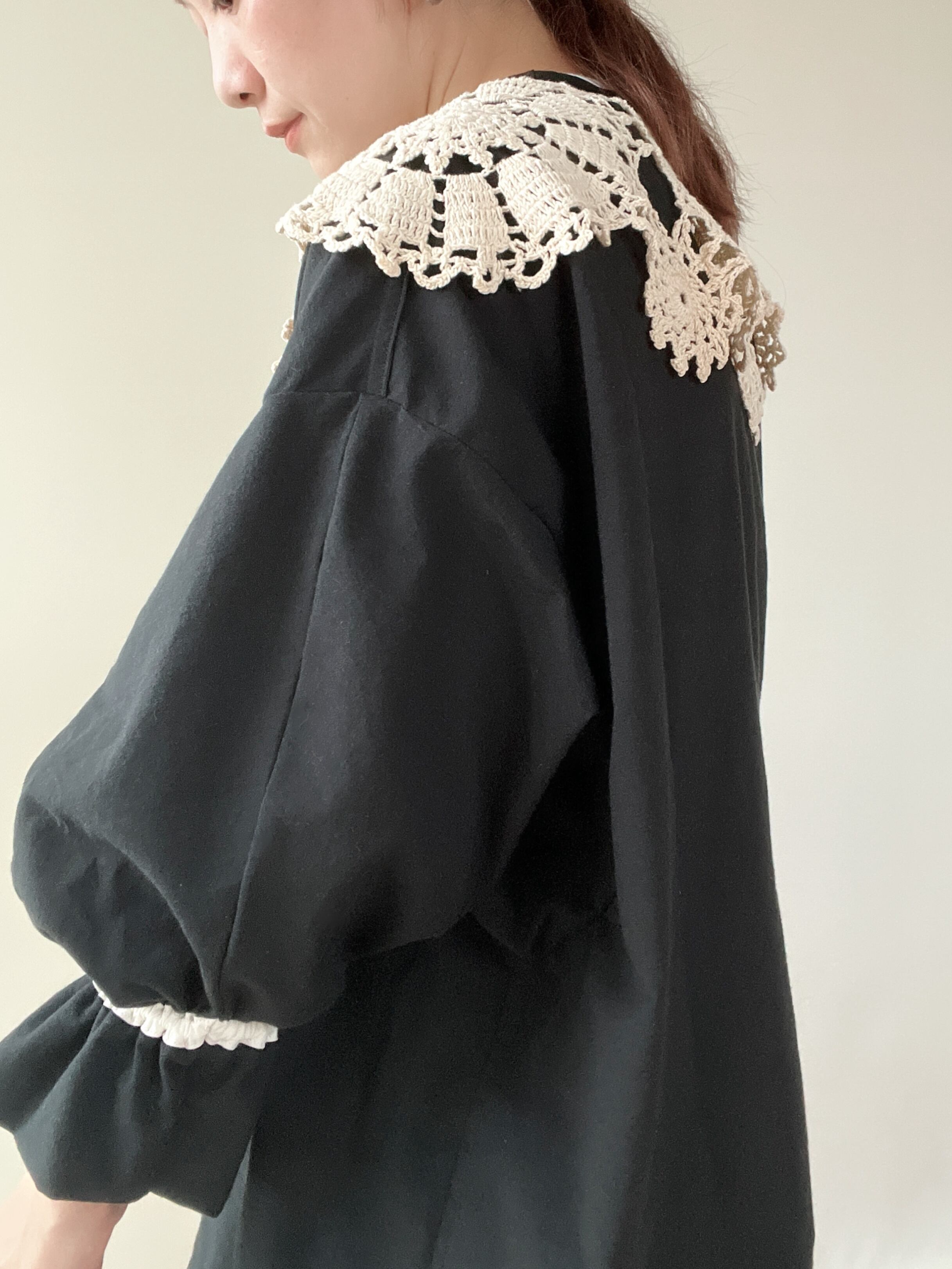袖はあえて少し短くし、丸みがありながら手首が見えるスッキリとした印象になっています。