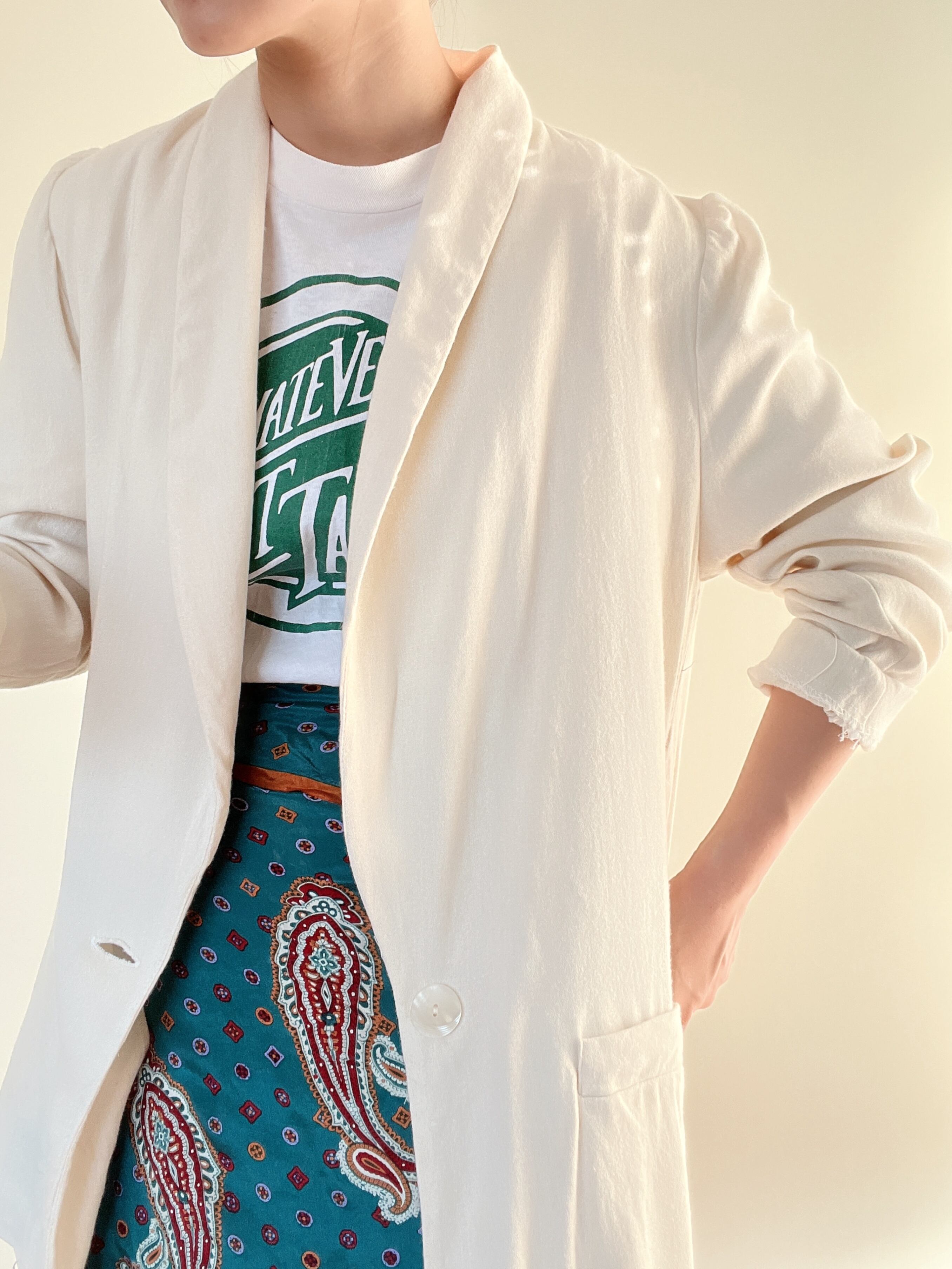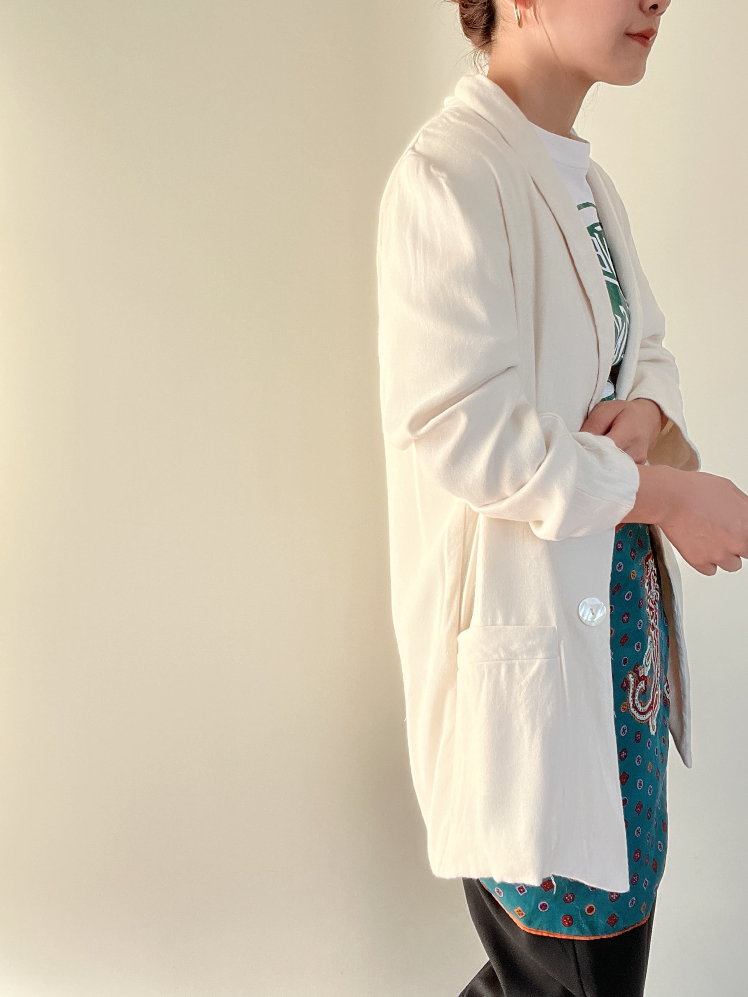 レーヨンの柔らかさとウールが少し混合しており程よい温かさのある生地感です。