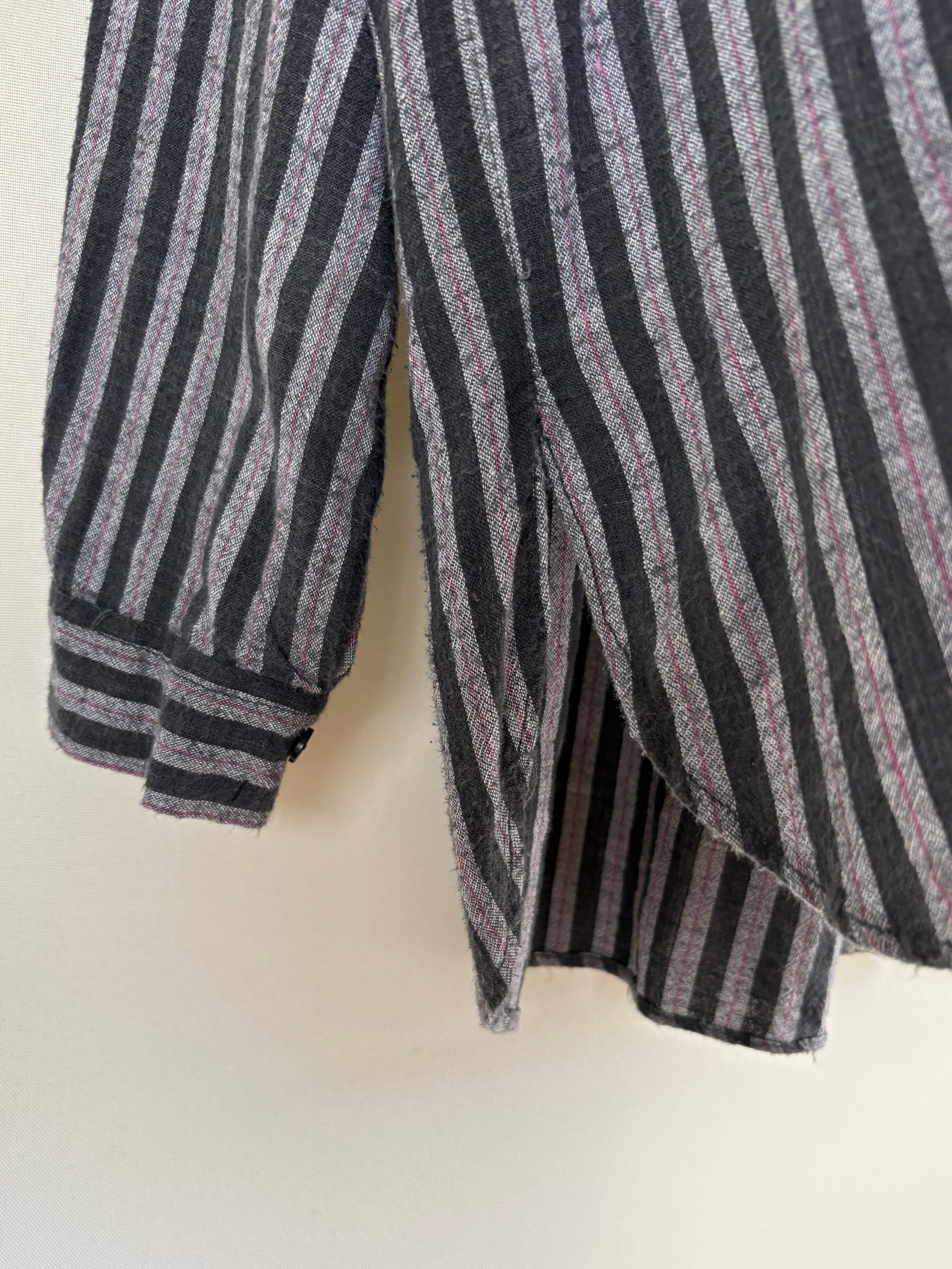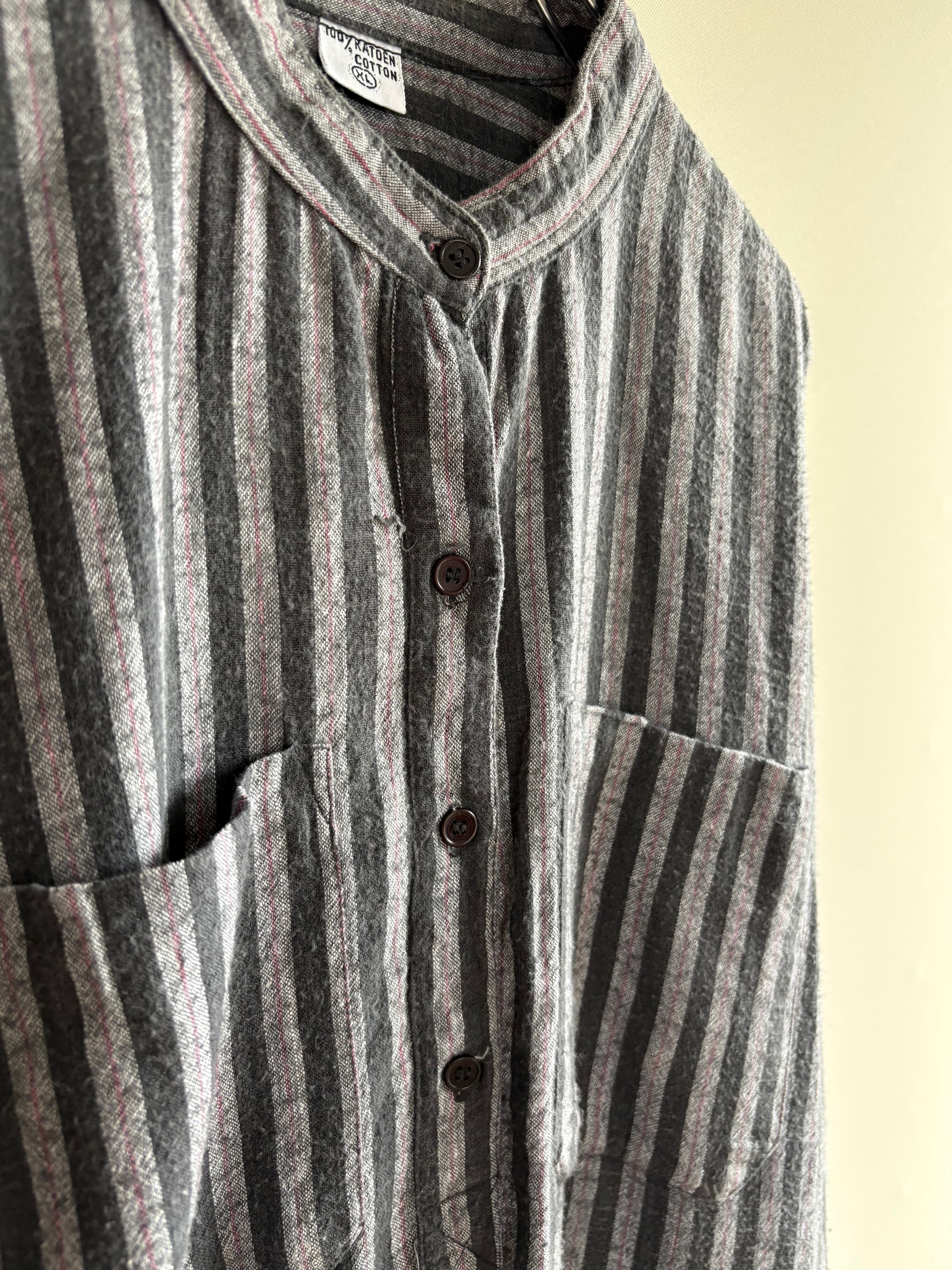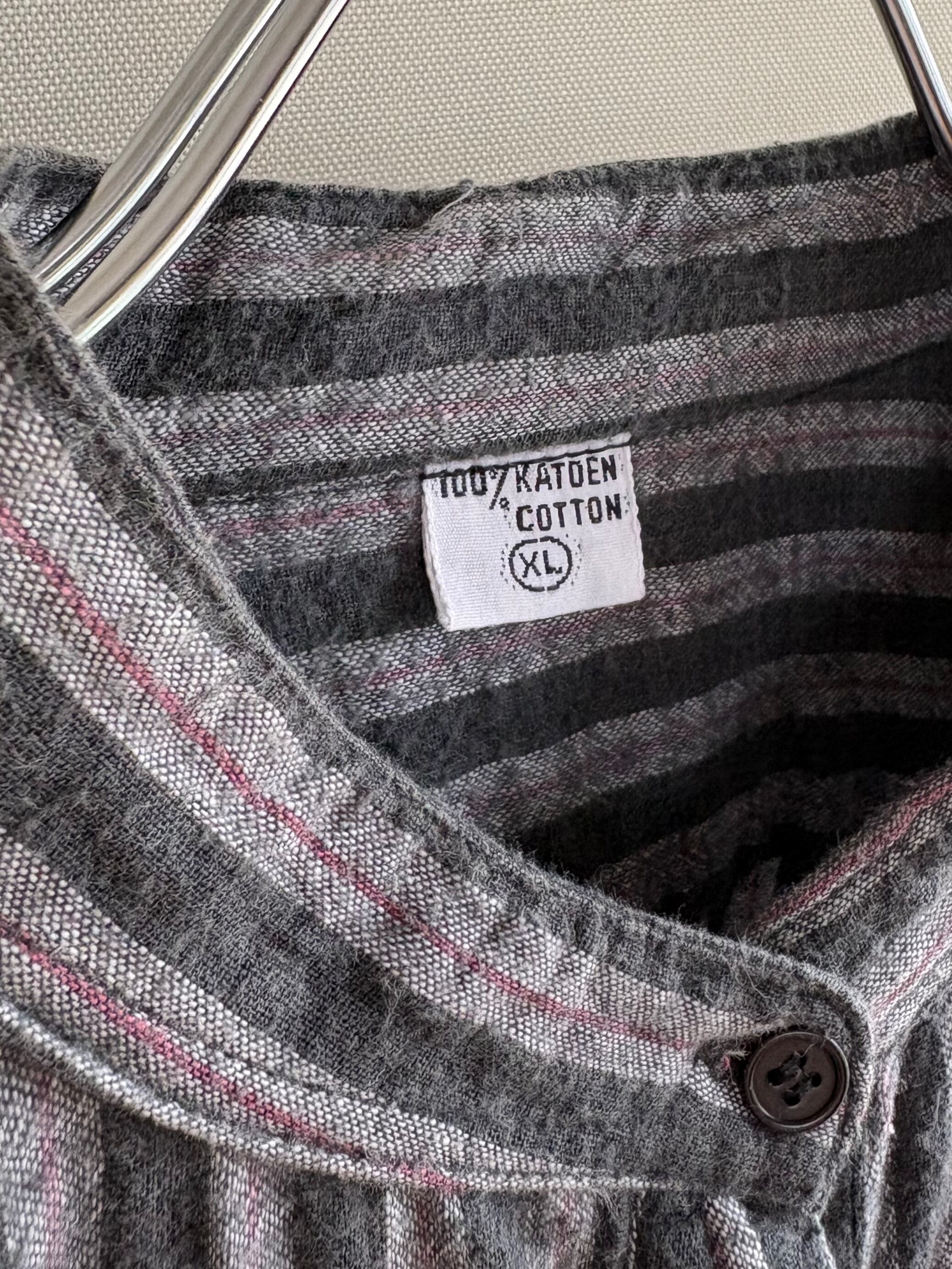 ストライプ柄スタンドカラーのプルオーバーシャツです。
