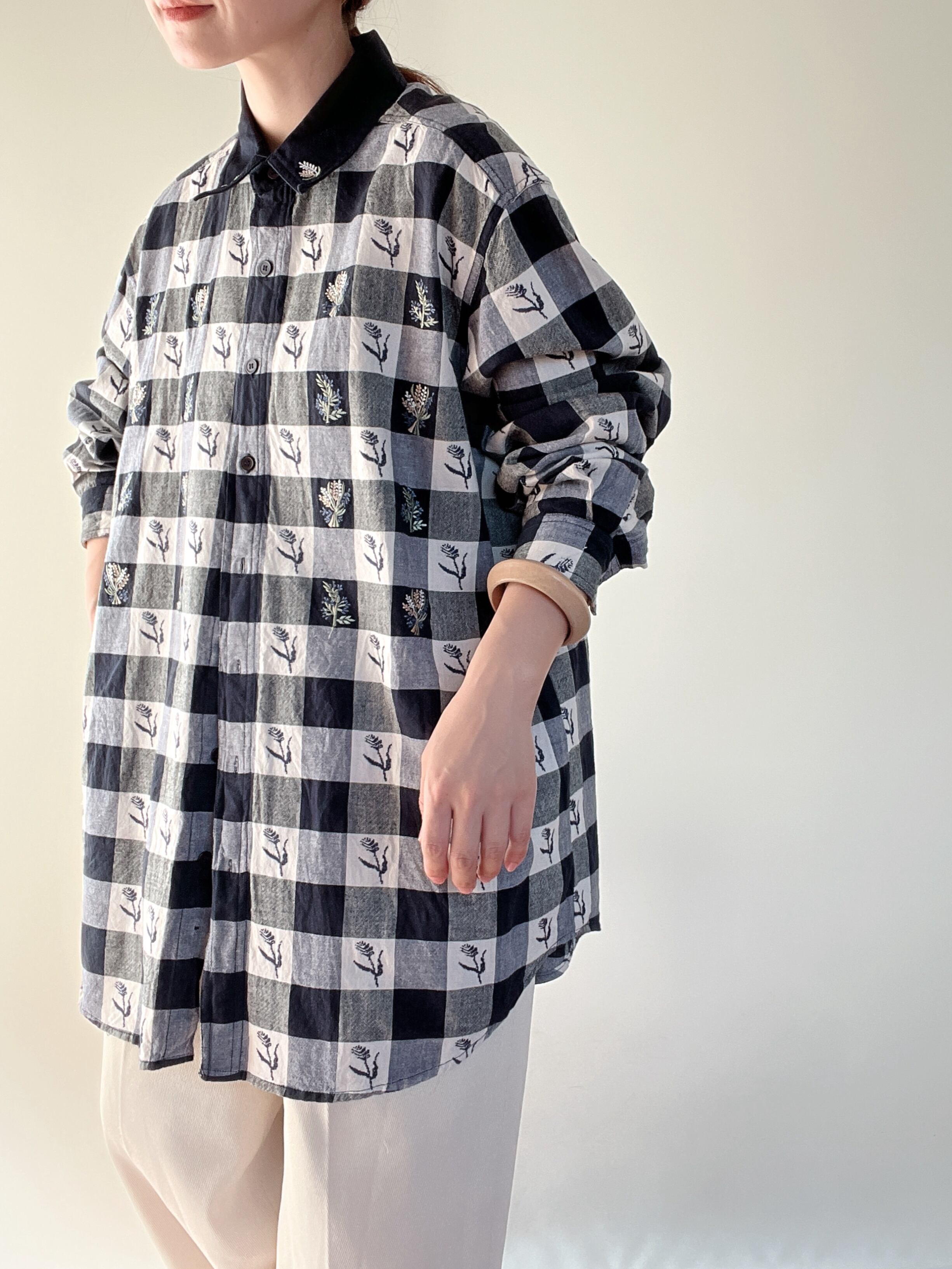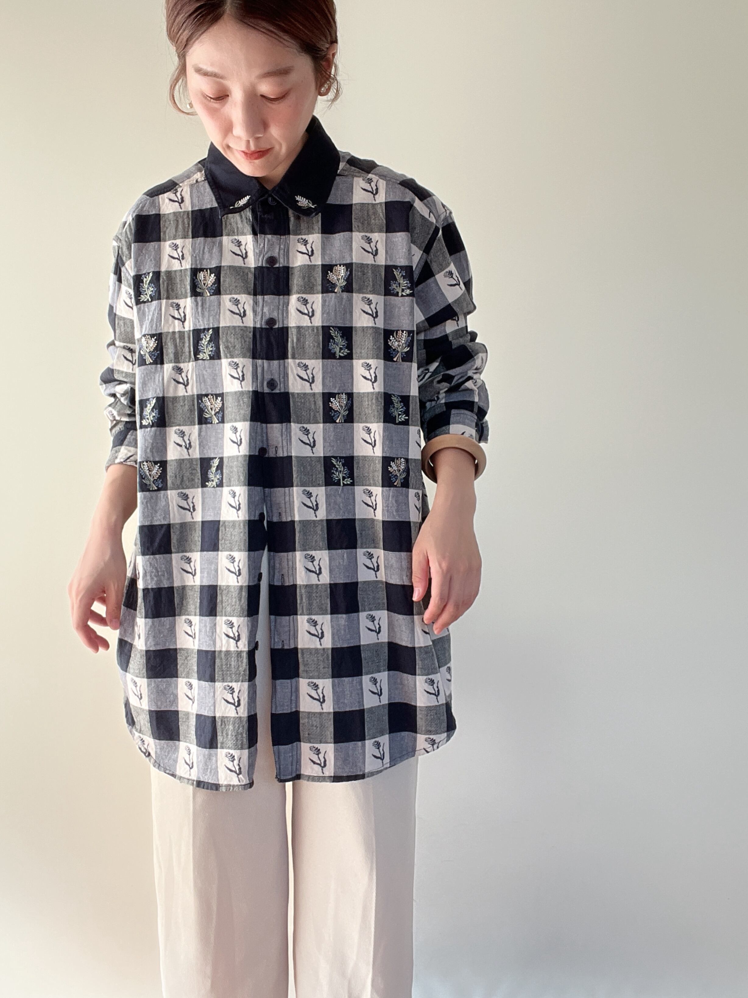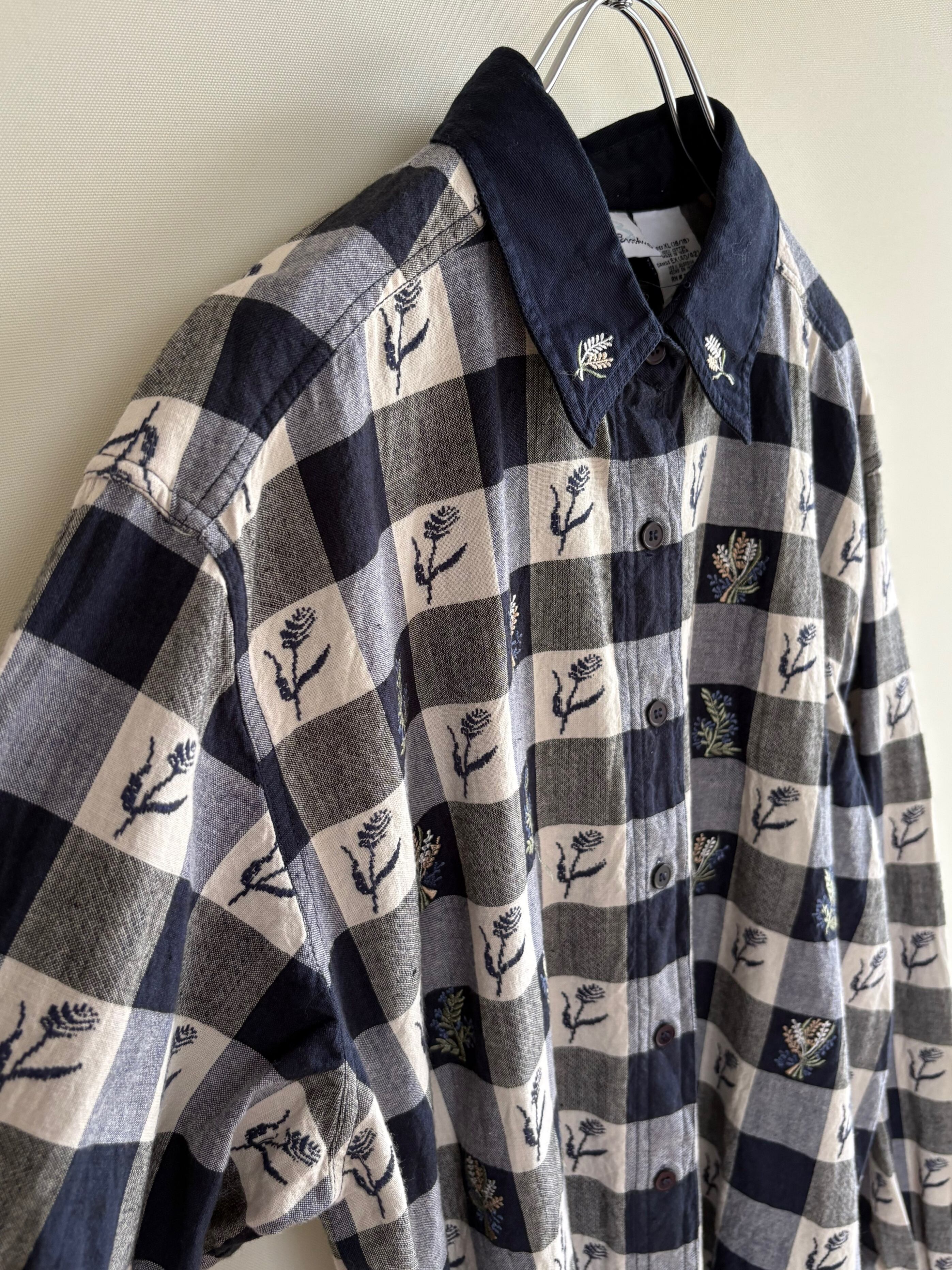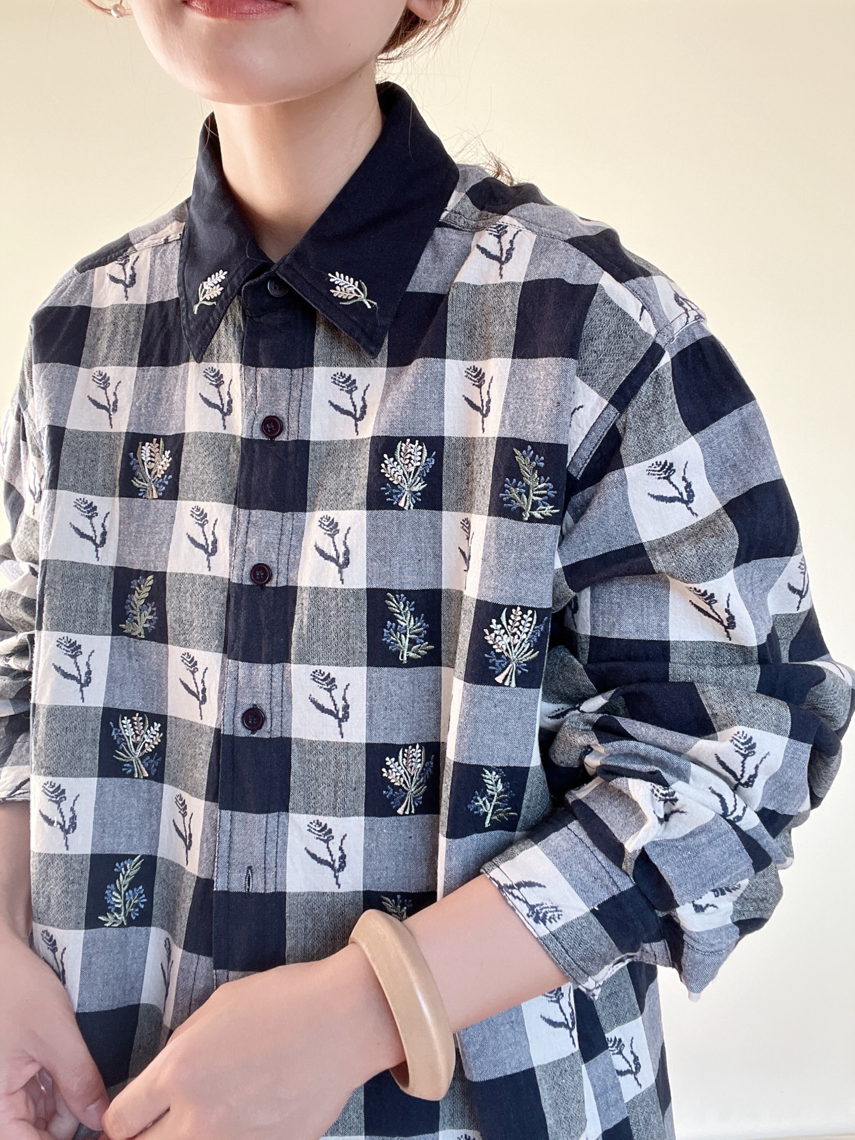 gingham check embroidery cotton shirt