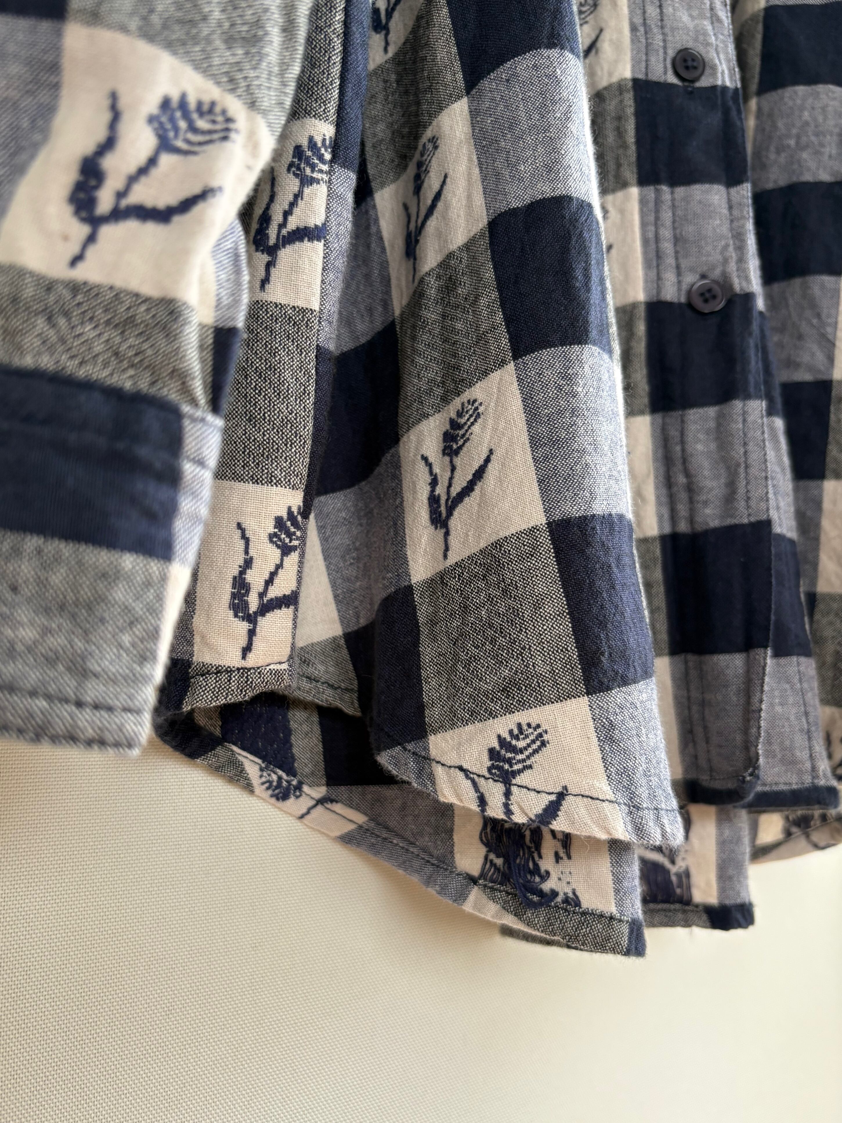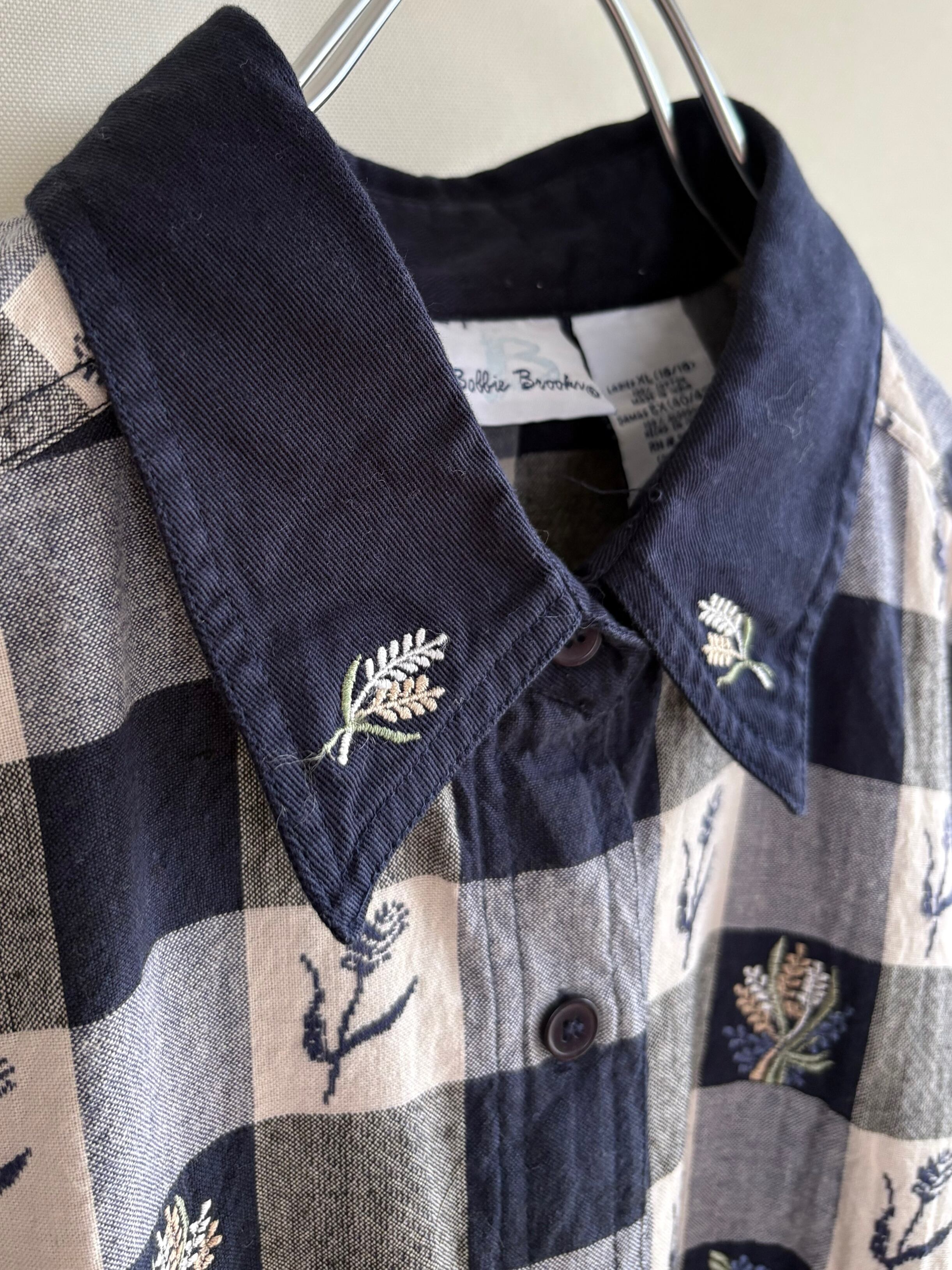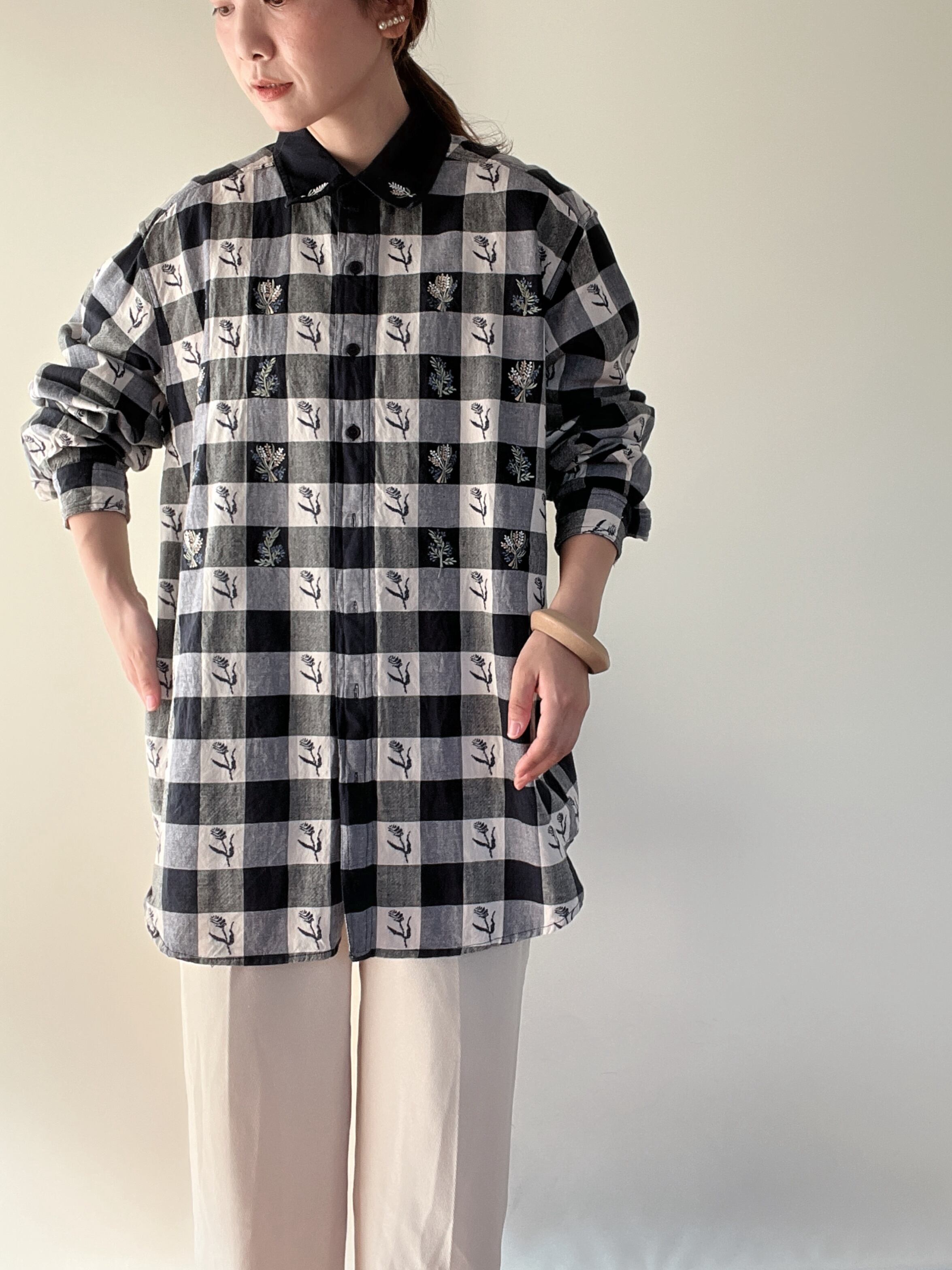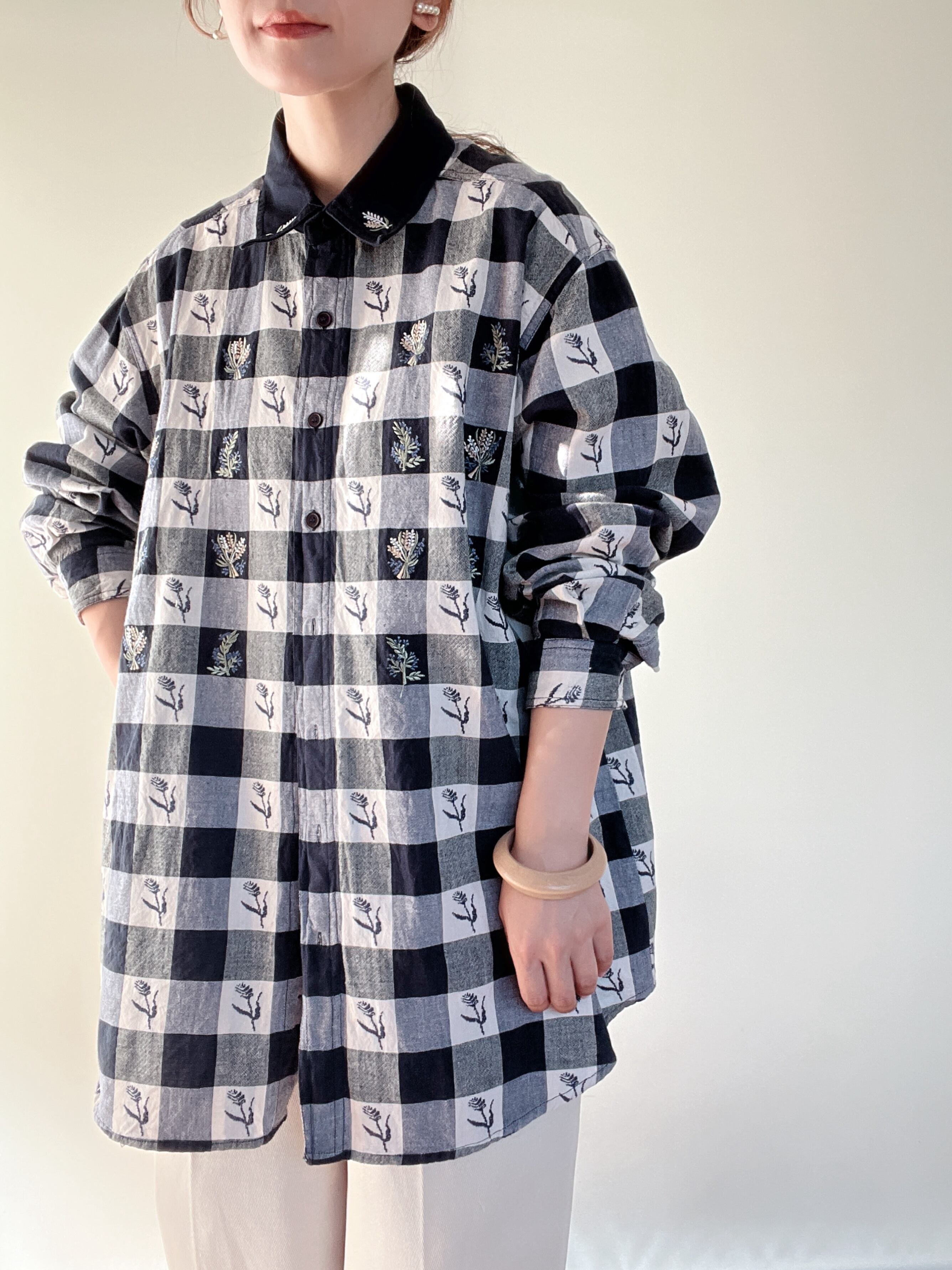 gingham check embroidery cotton shirt
