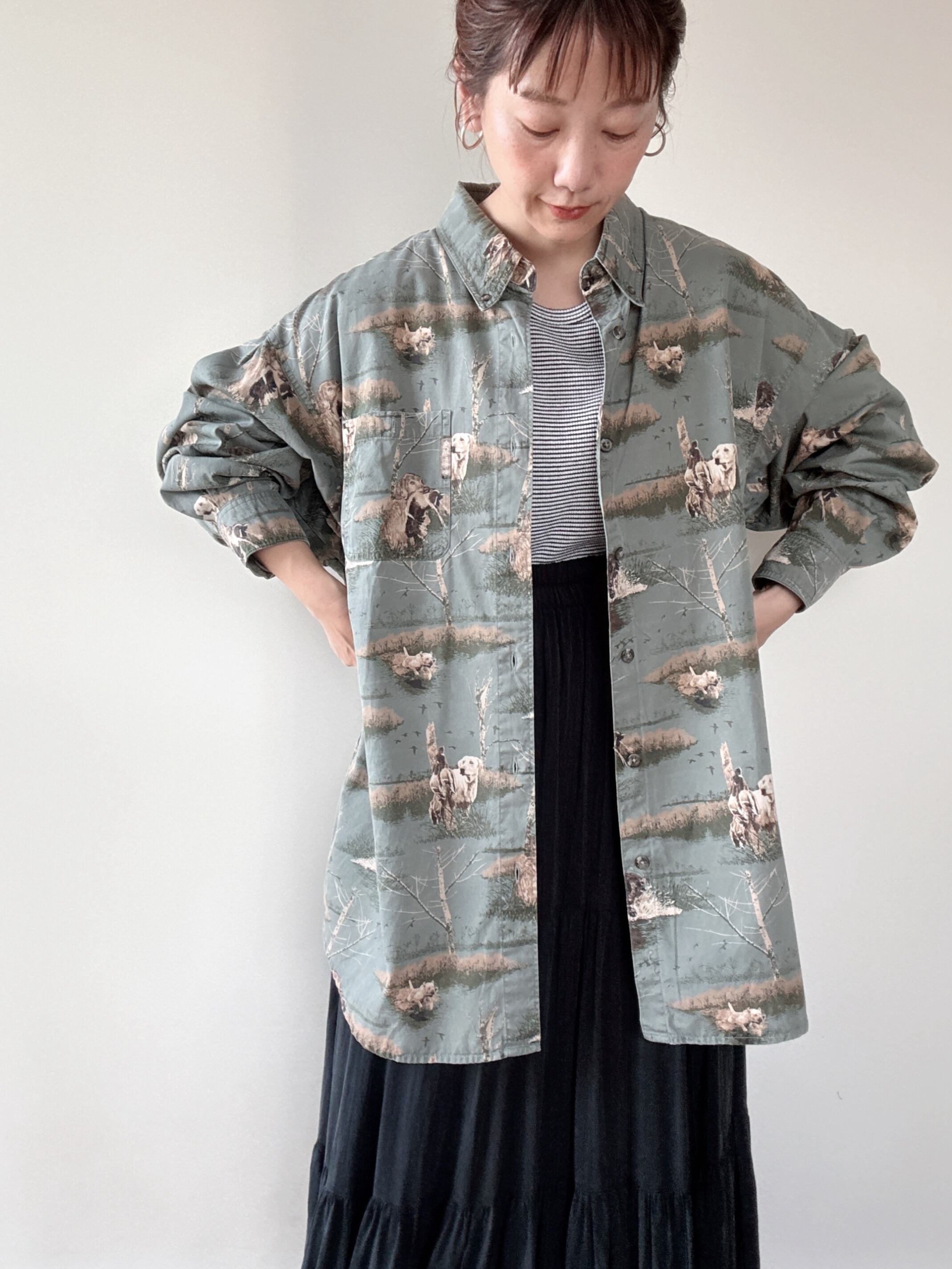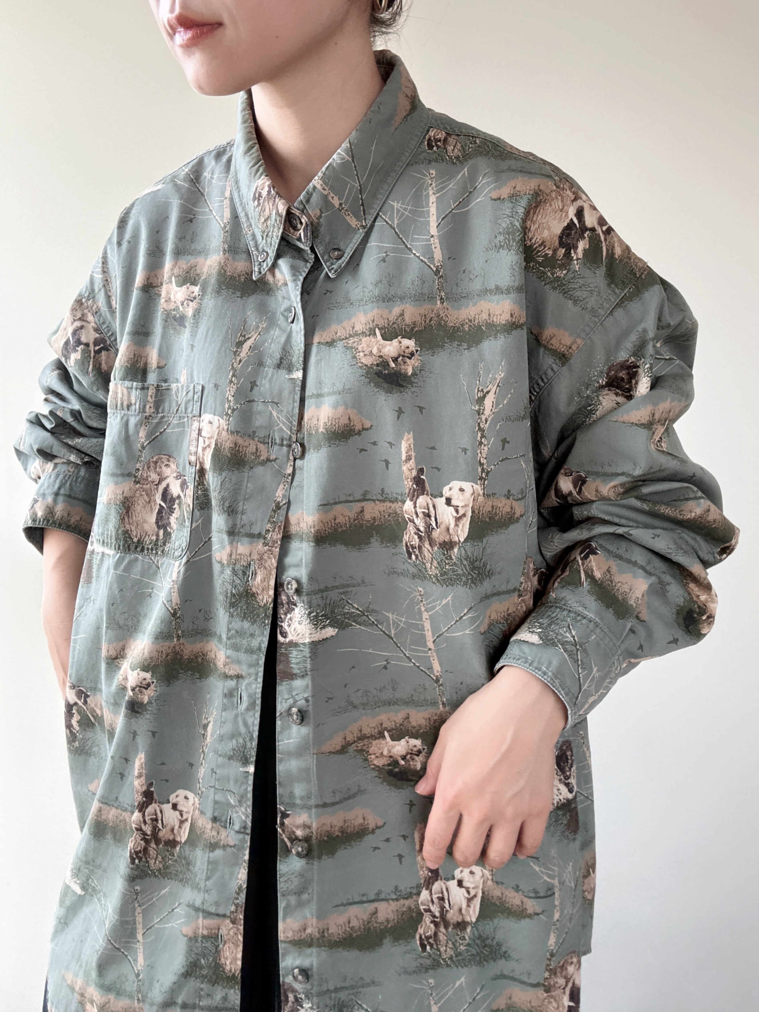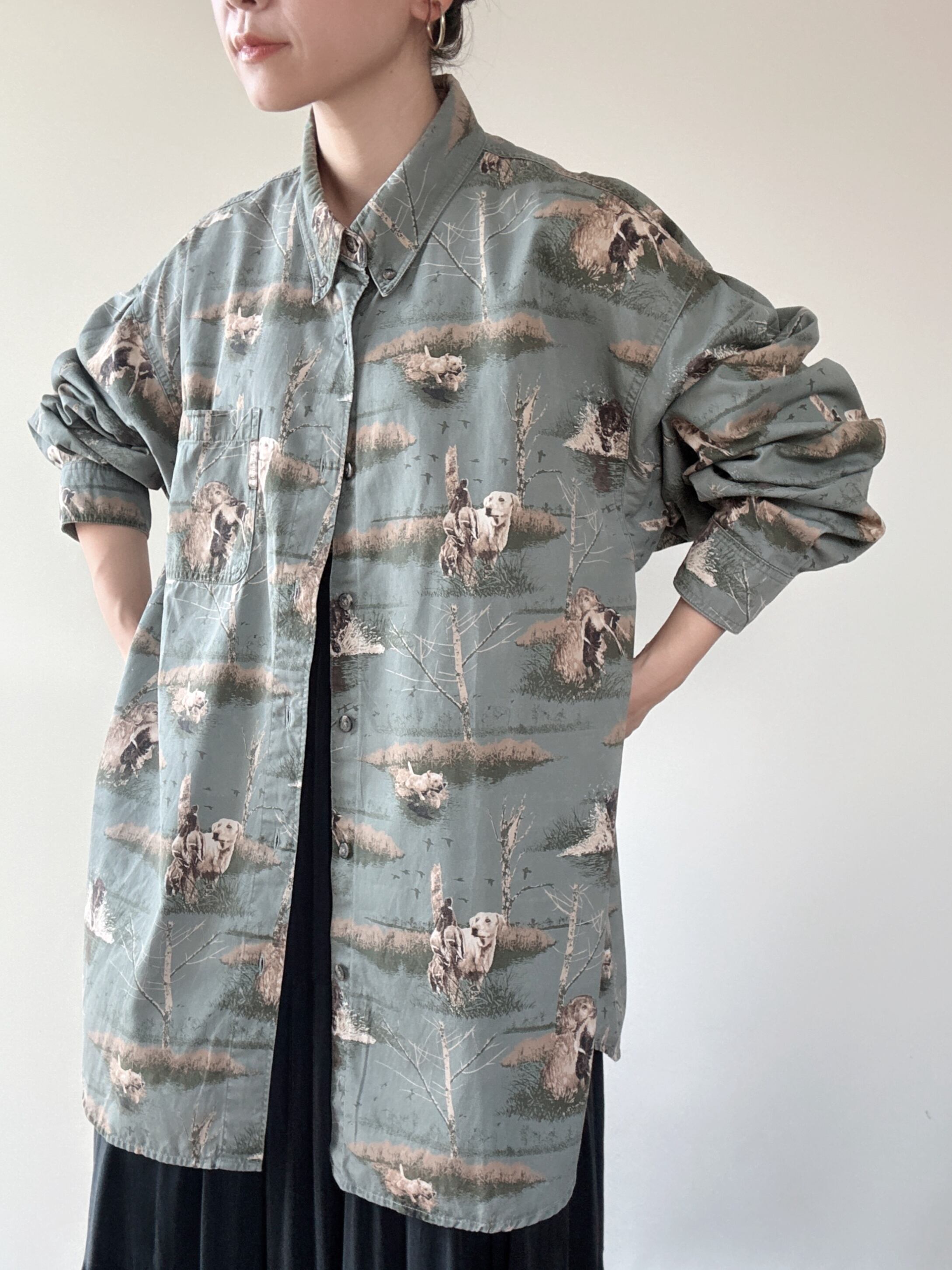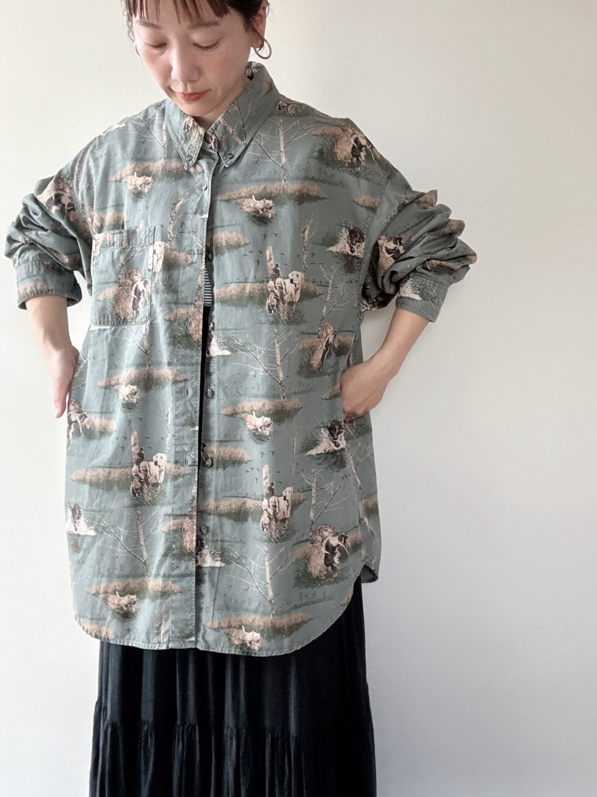 木や犬などの総柄プリントが古着らしい