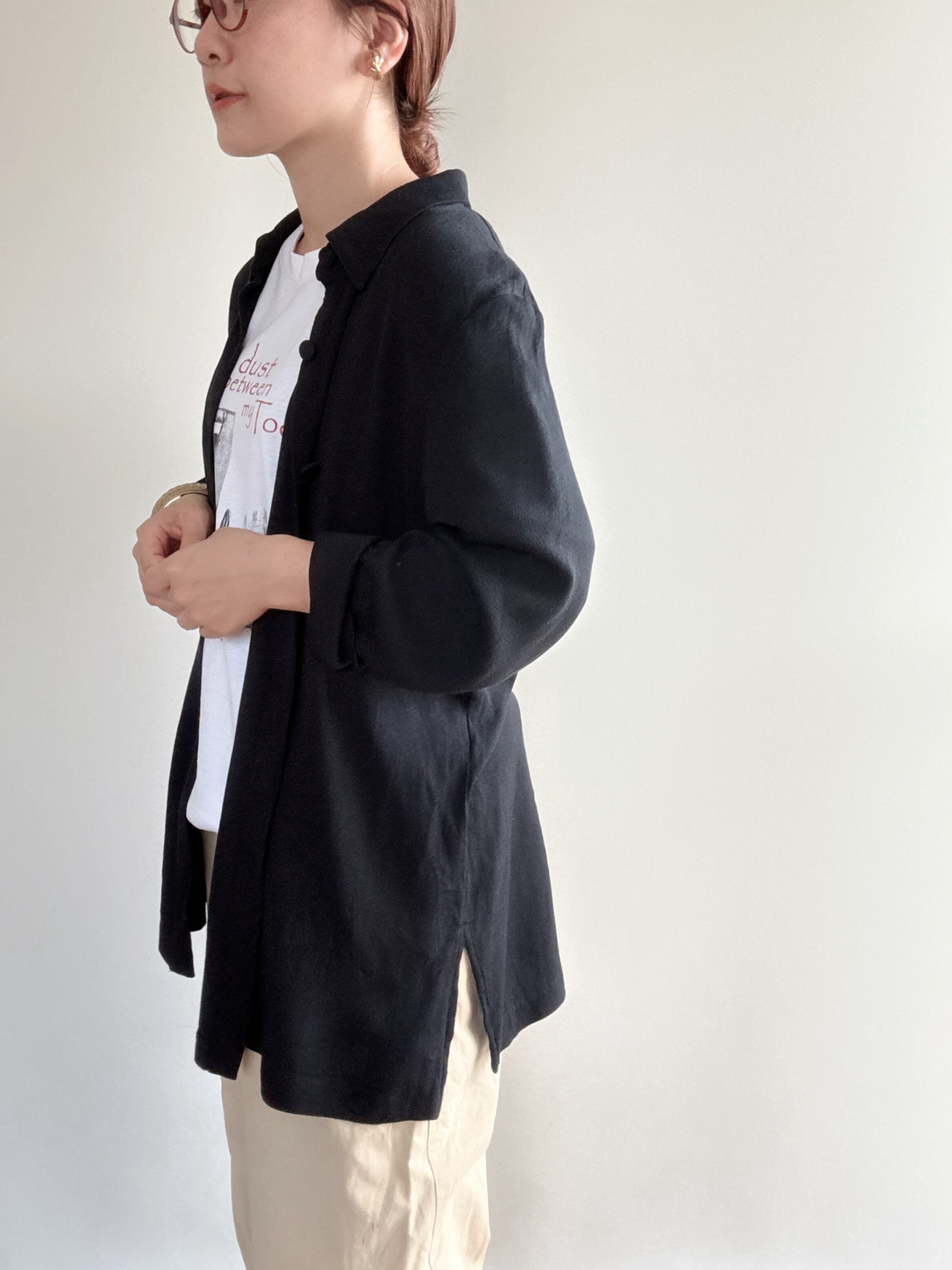 くたっとした生地なので上からニットやスエットなどの重ね着にもオススメです。