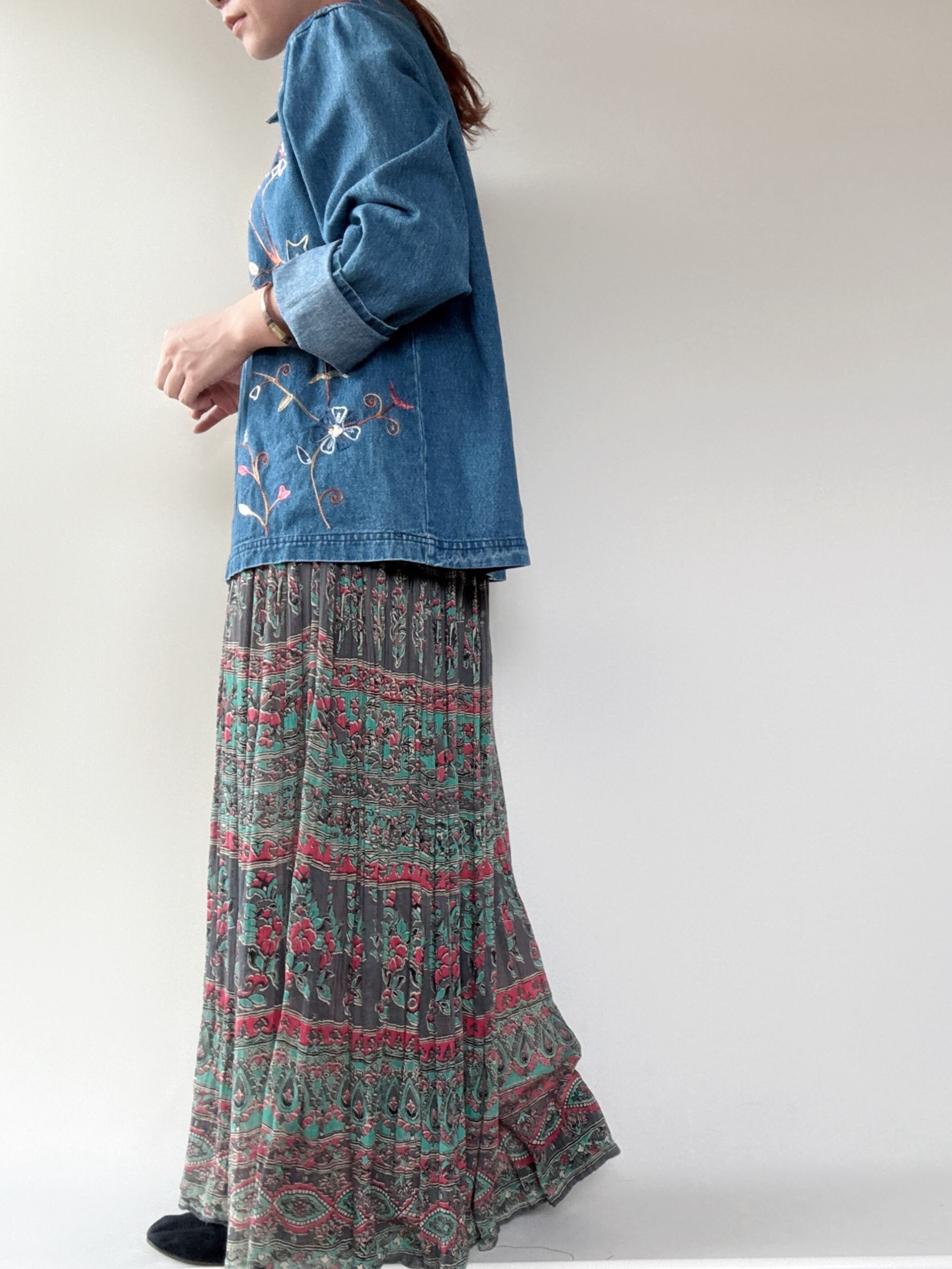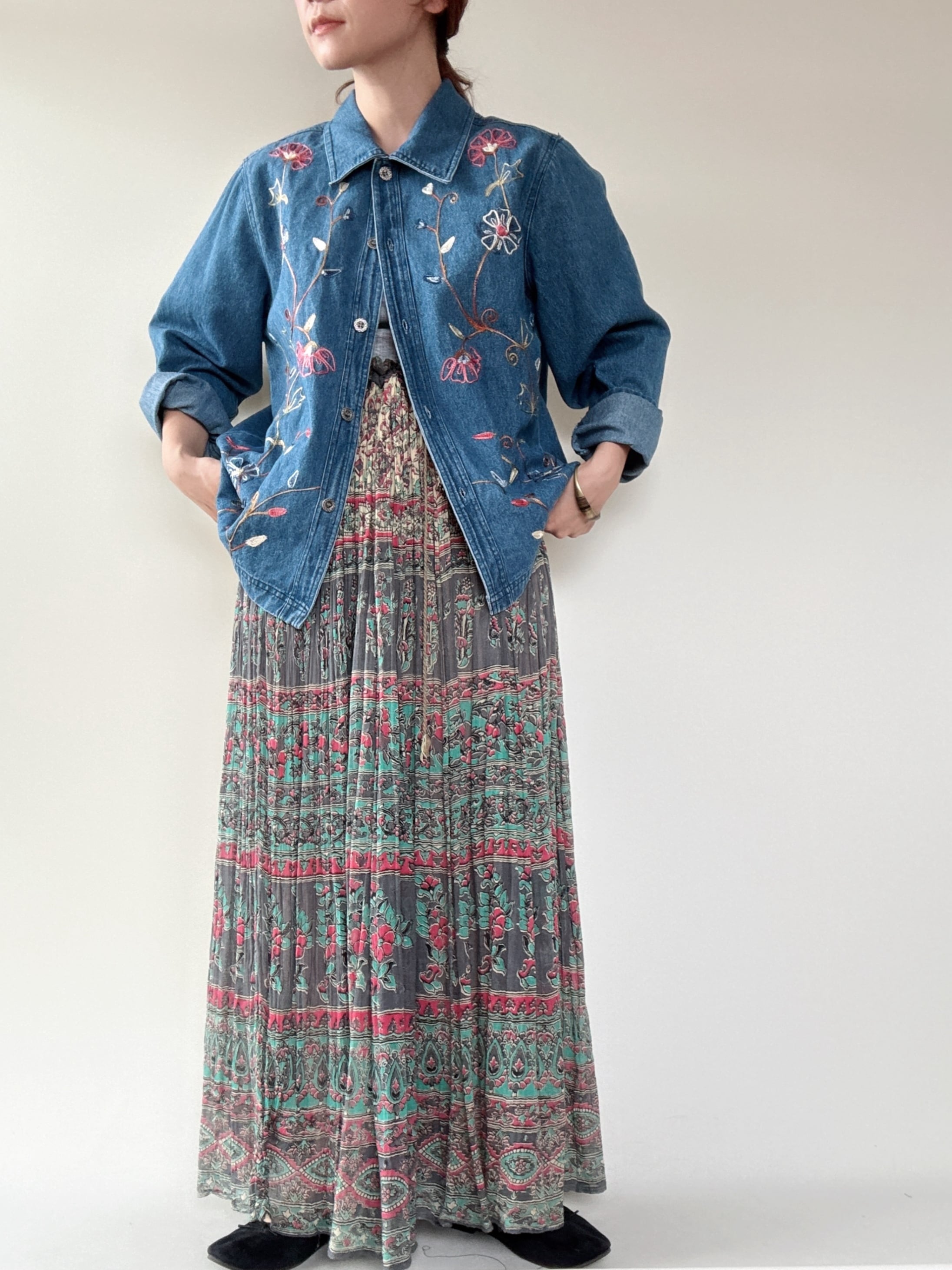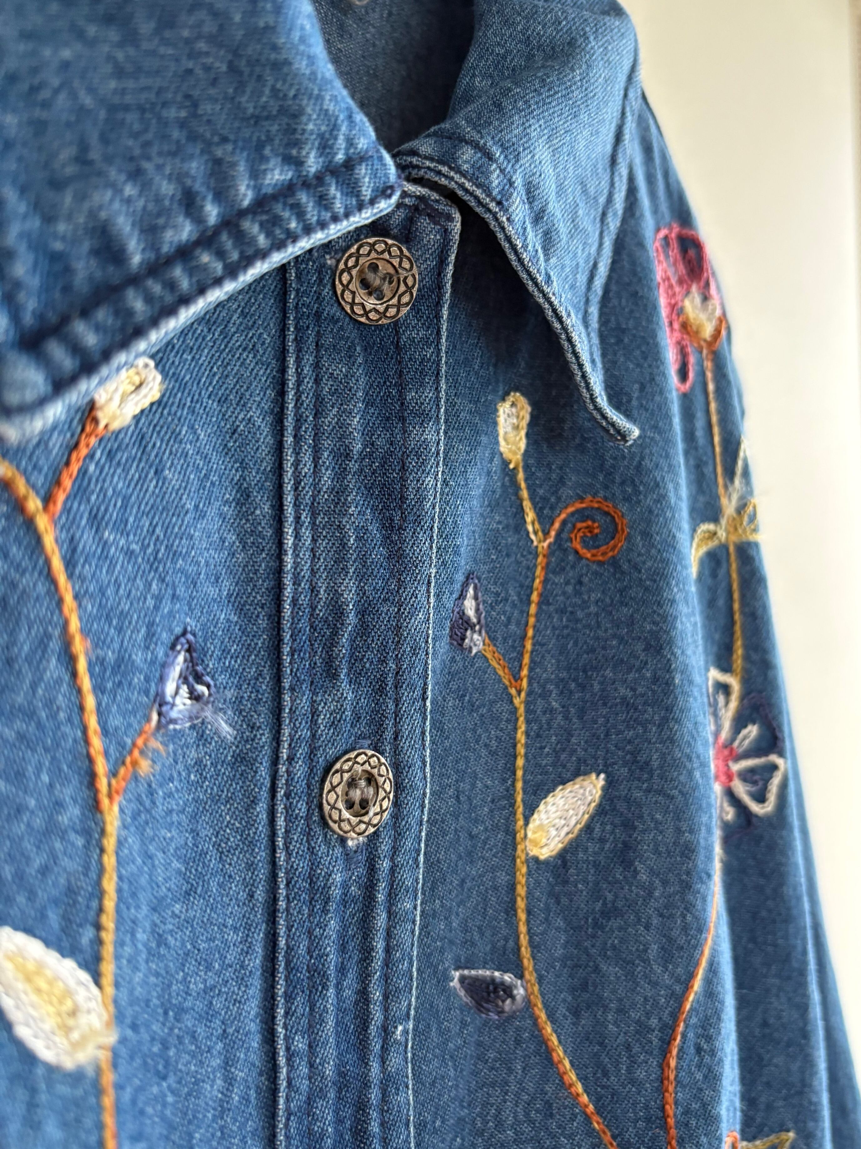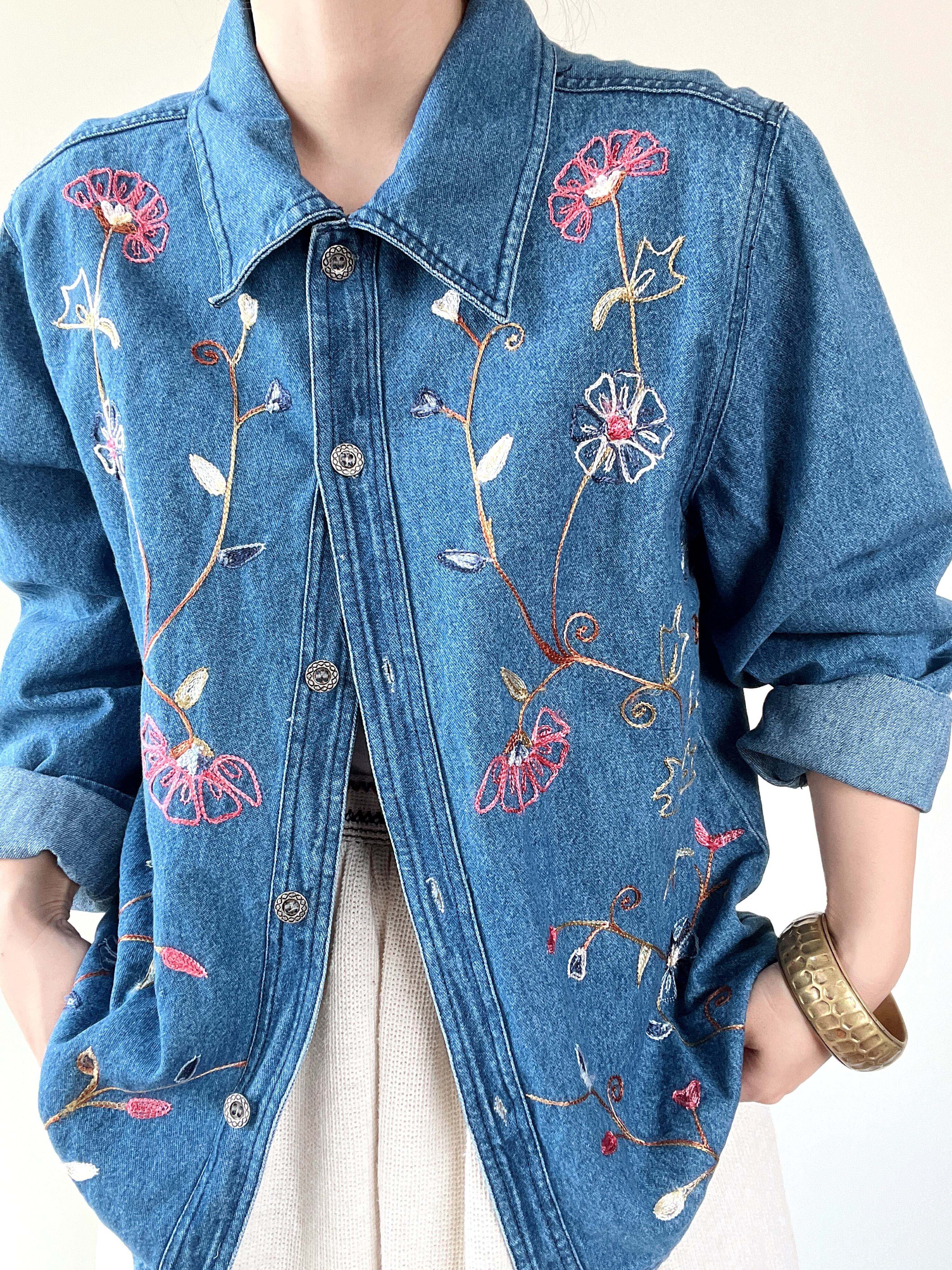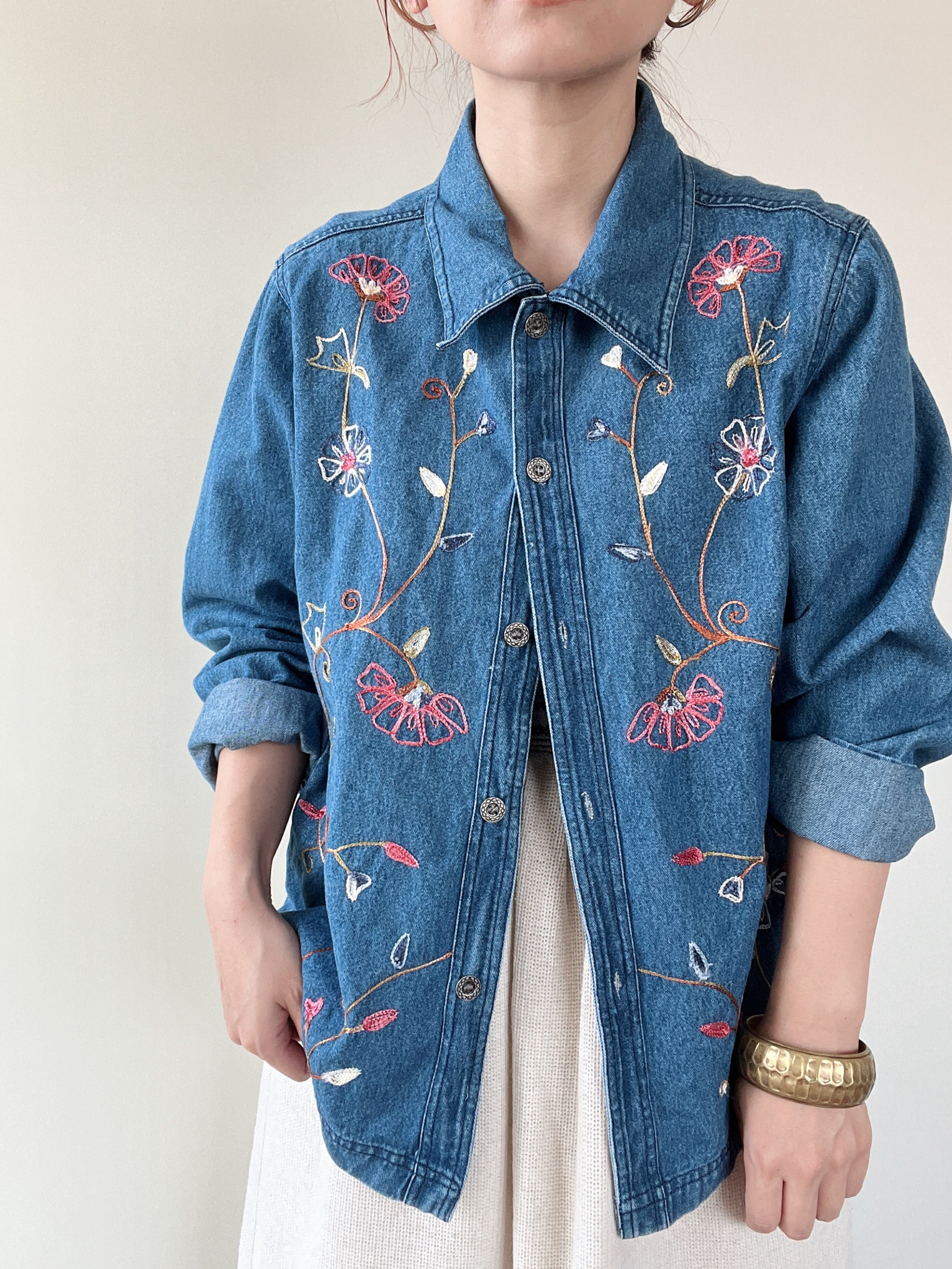 花のチェーンステッチが魅力的なジャケットです。