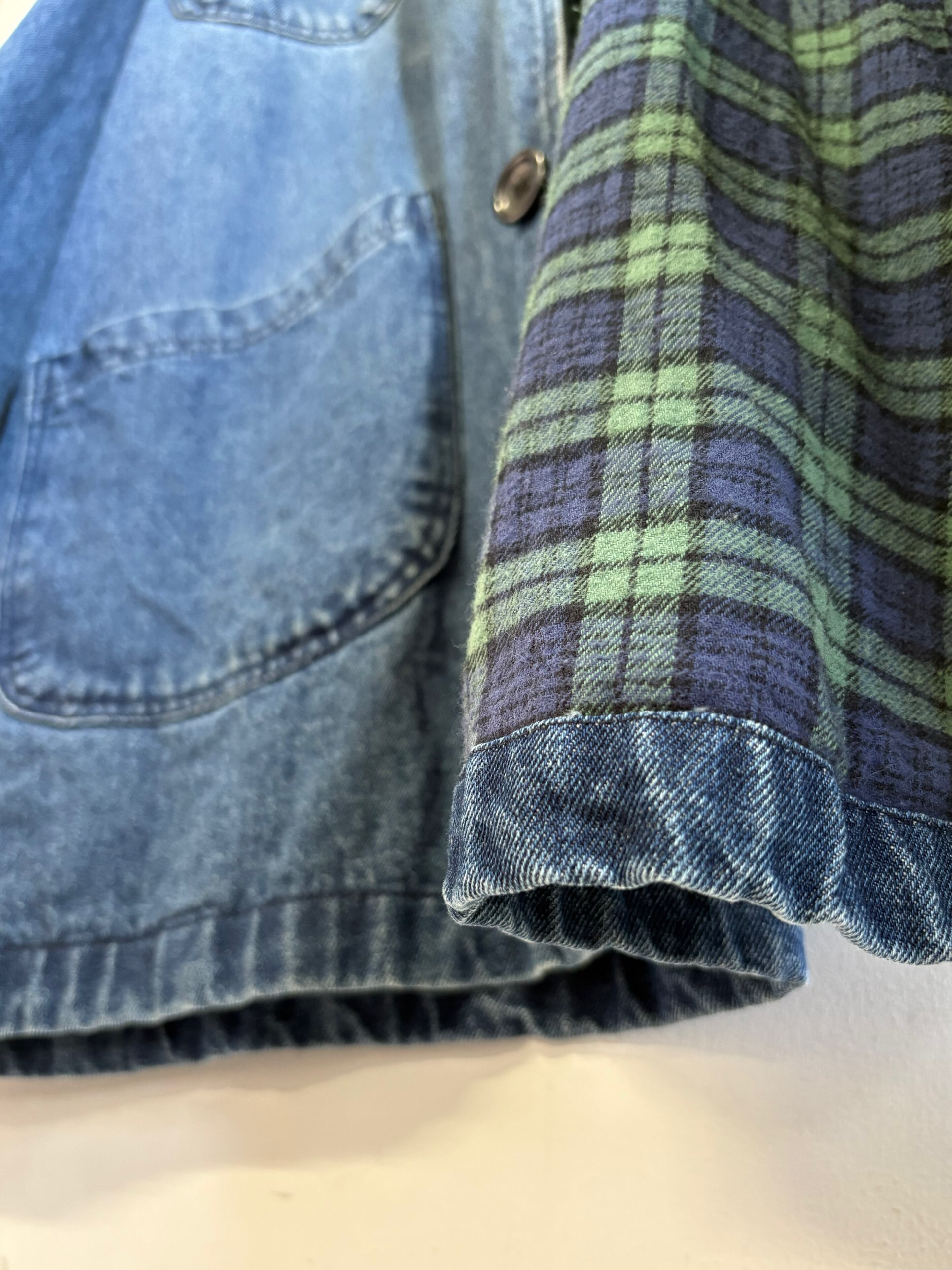 裏地にはネイビーグリーンの温かみあるチェック柄の