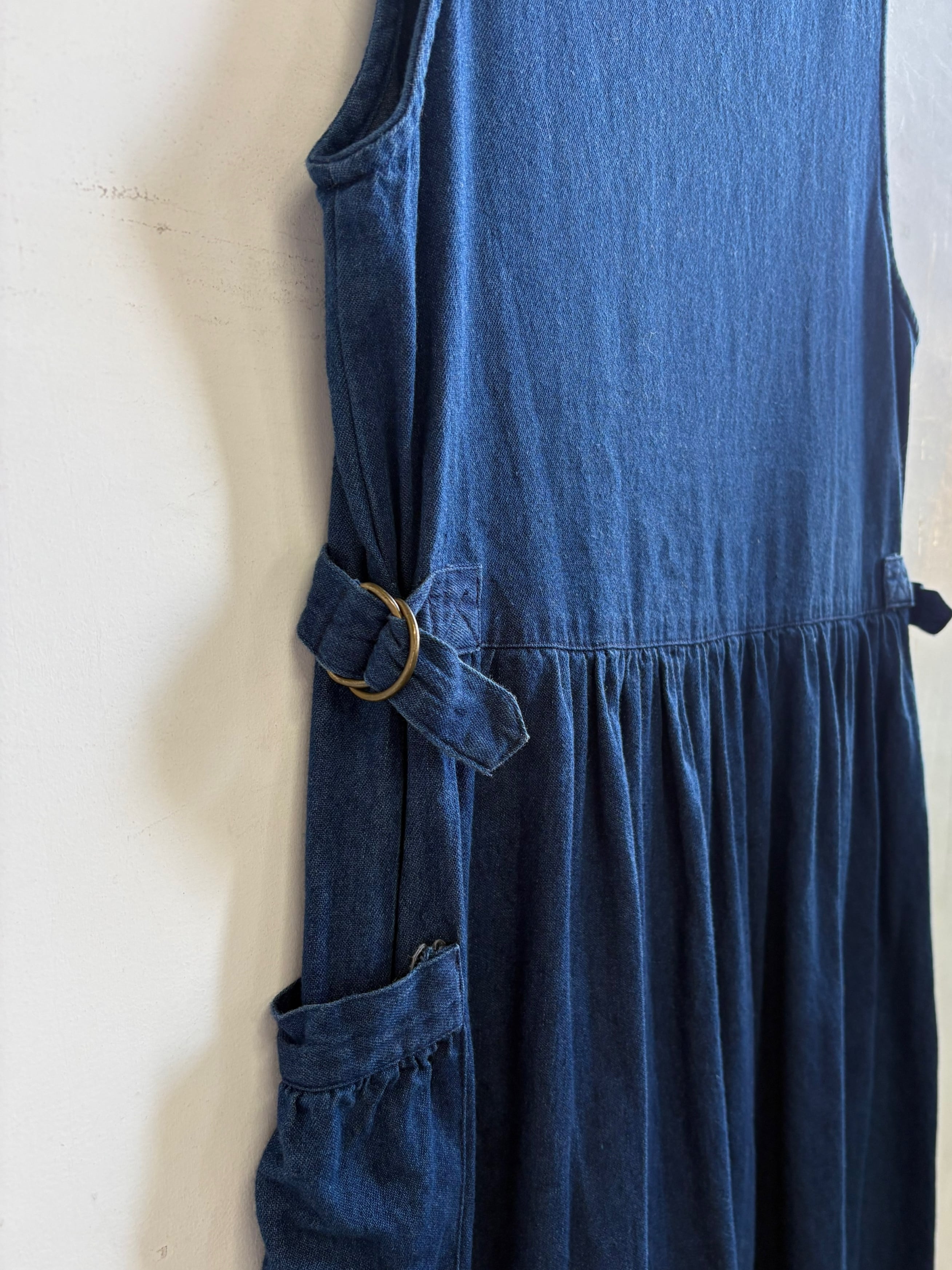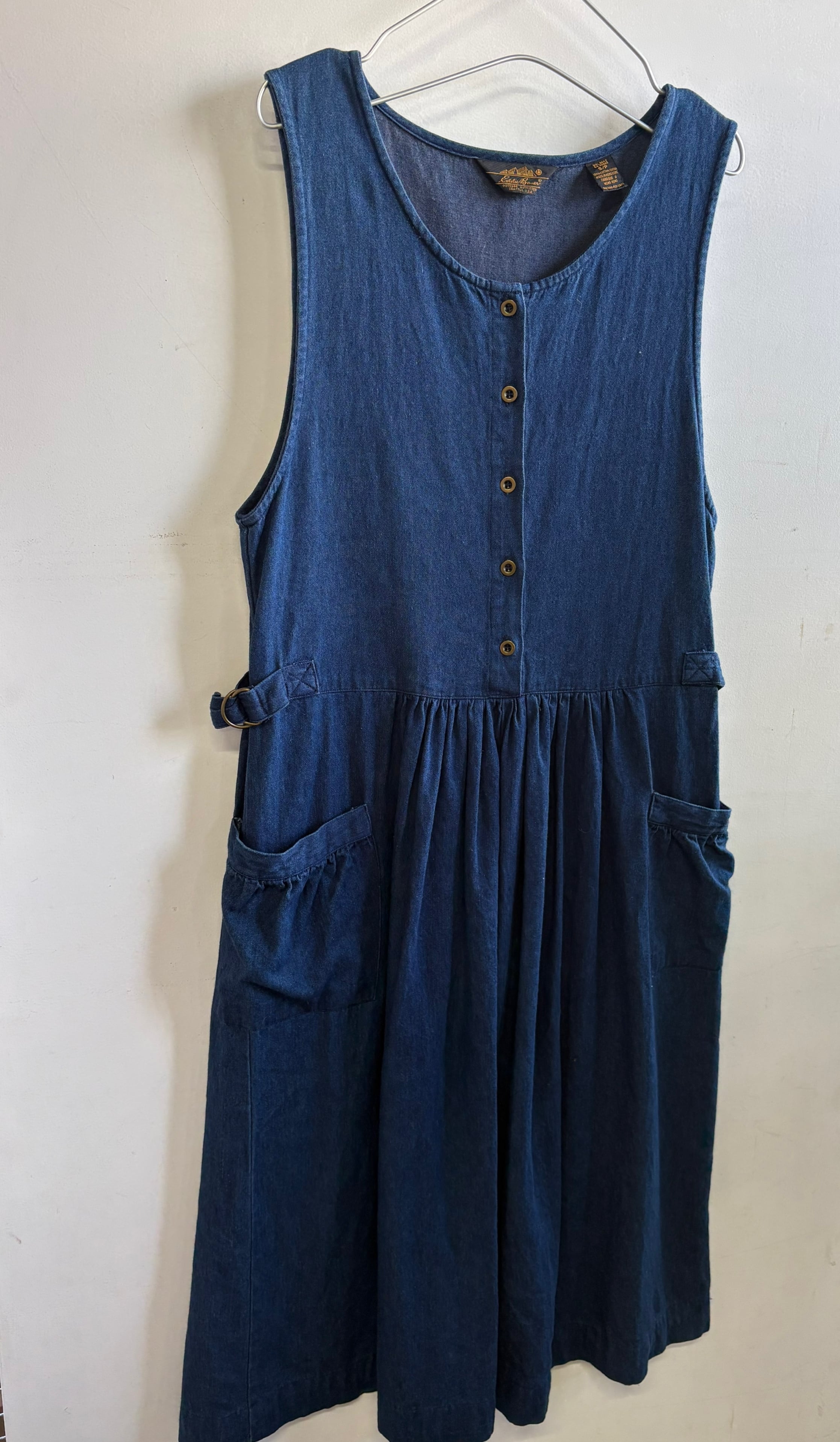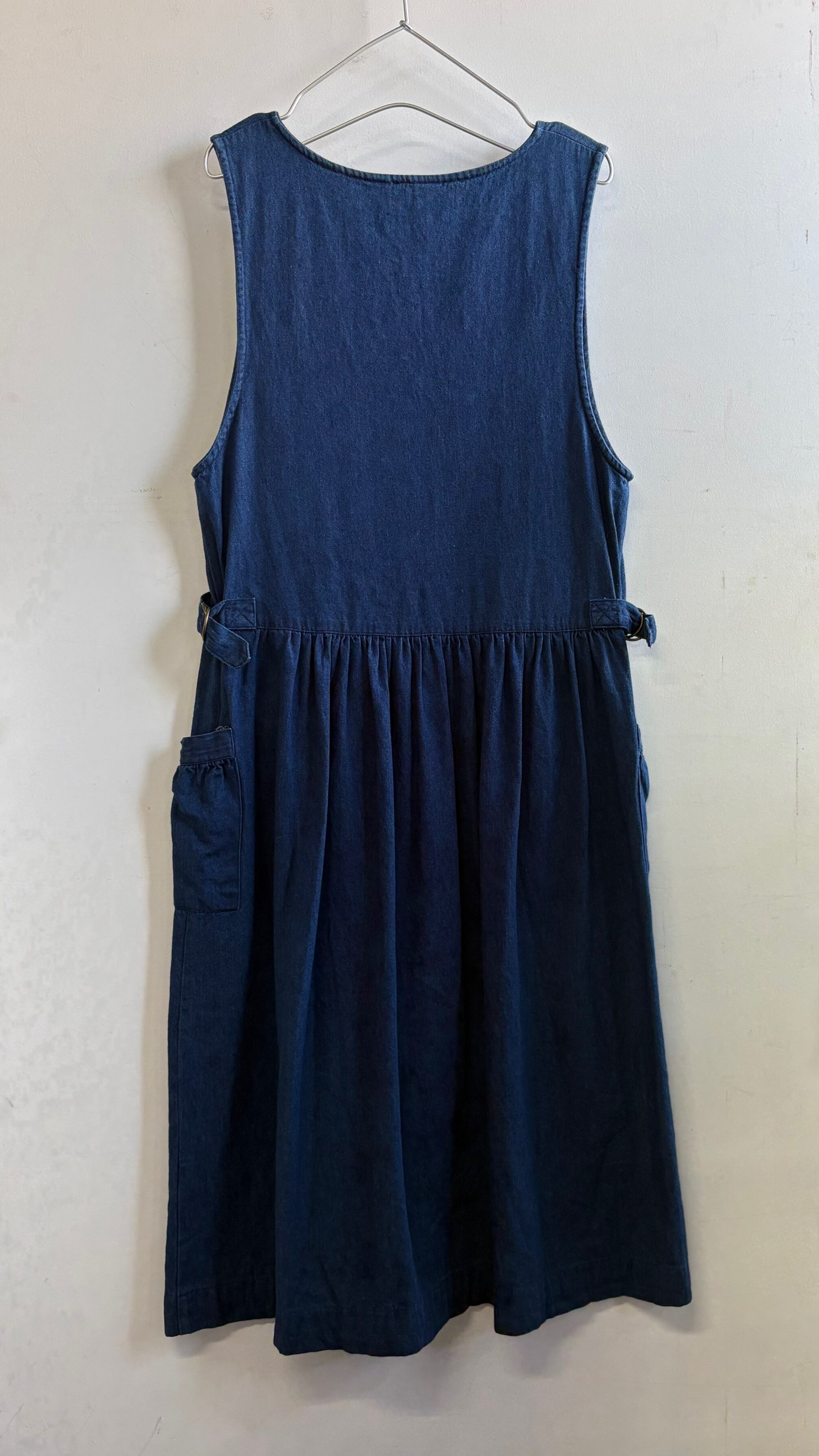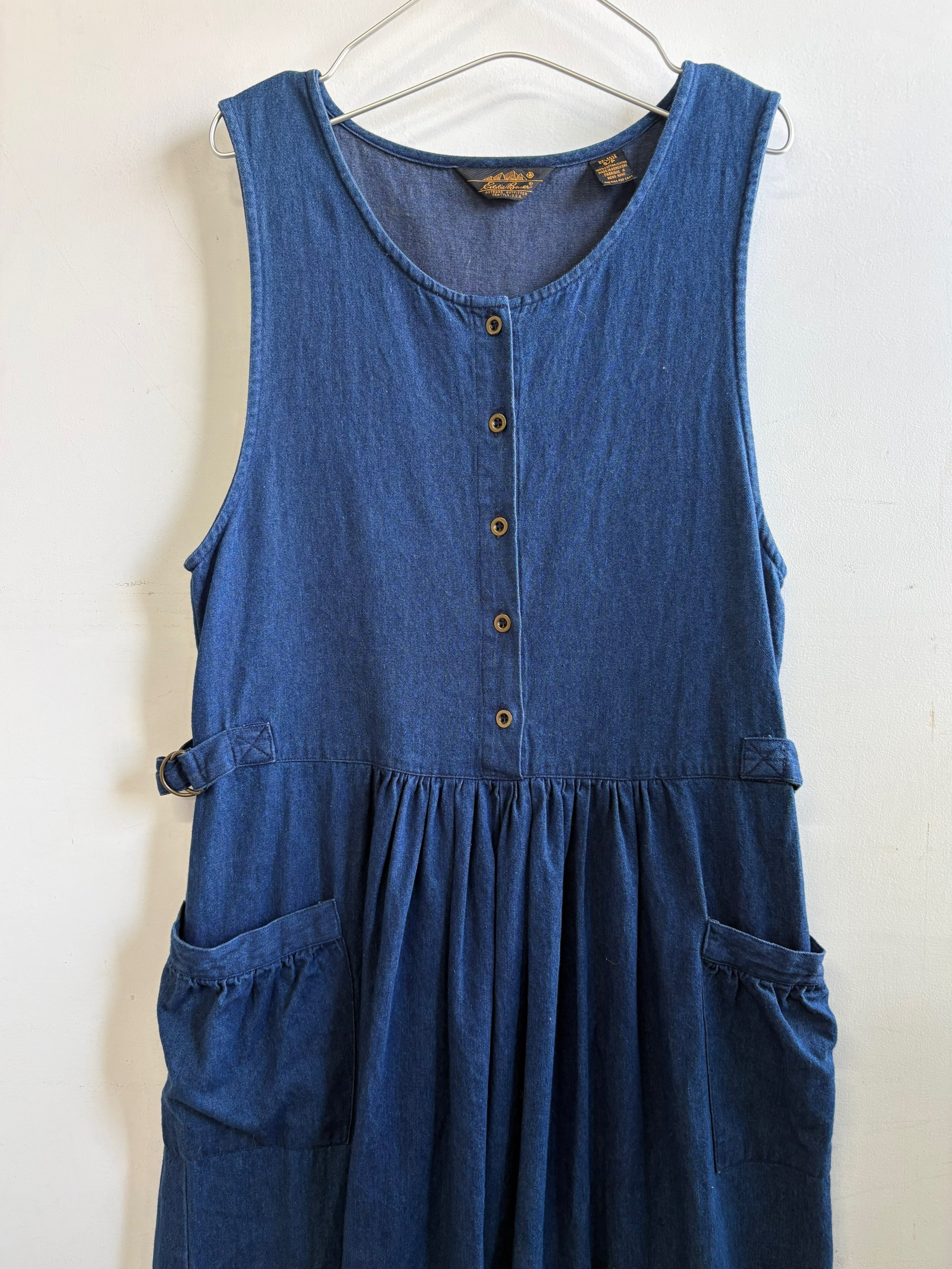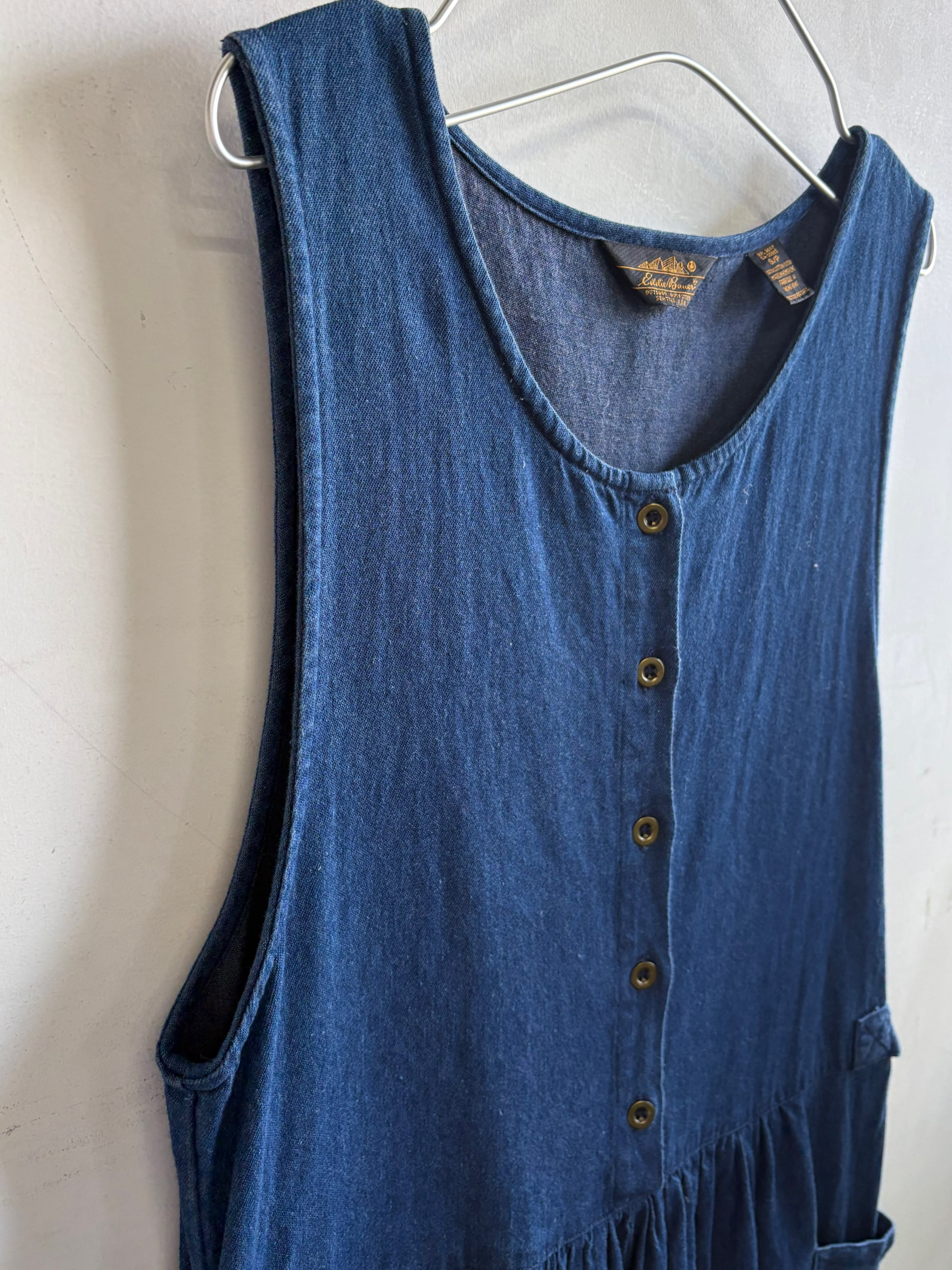 "Eddie Bauer"cotton blue denim nosleeve onepiece