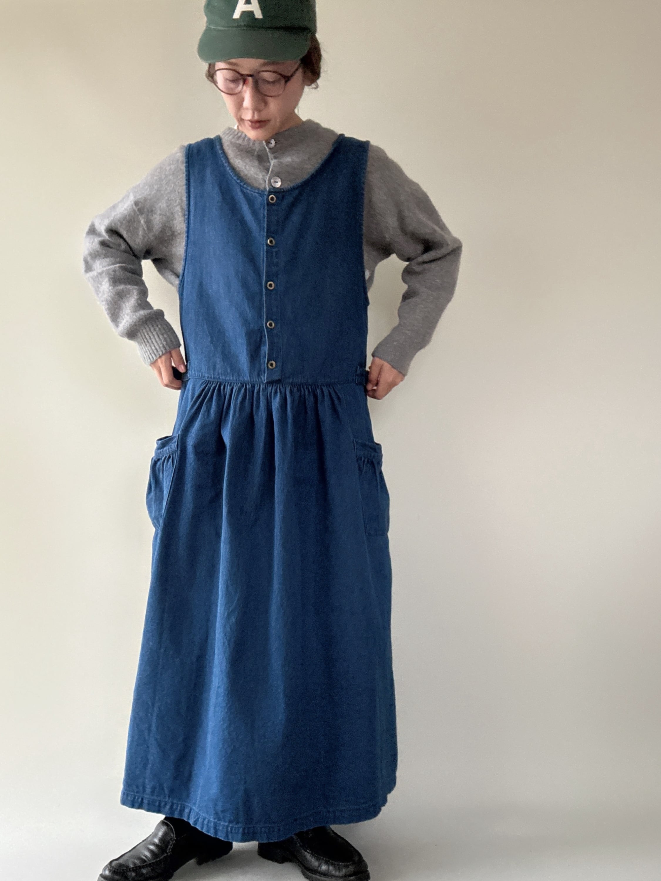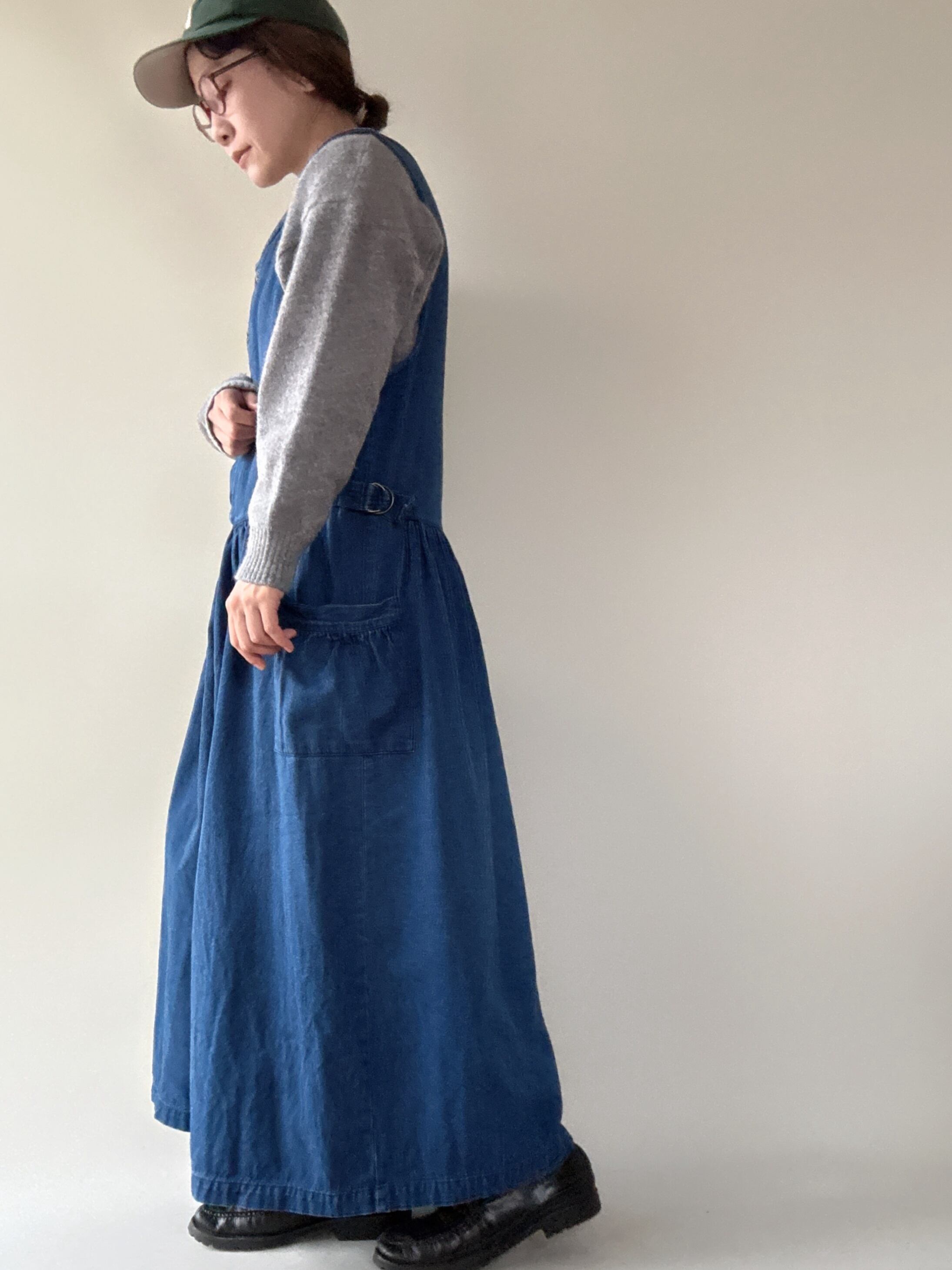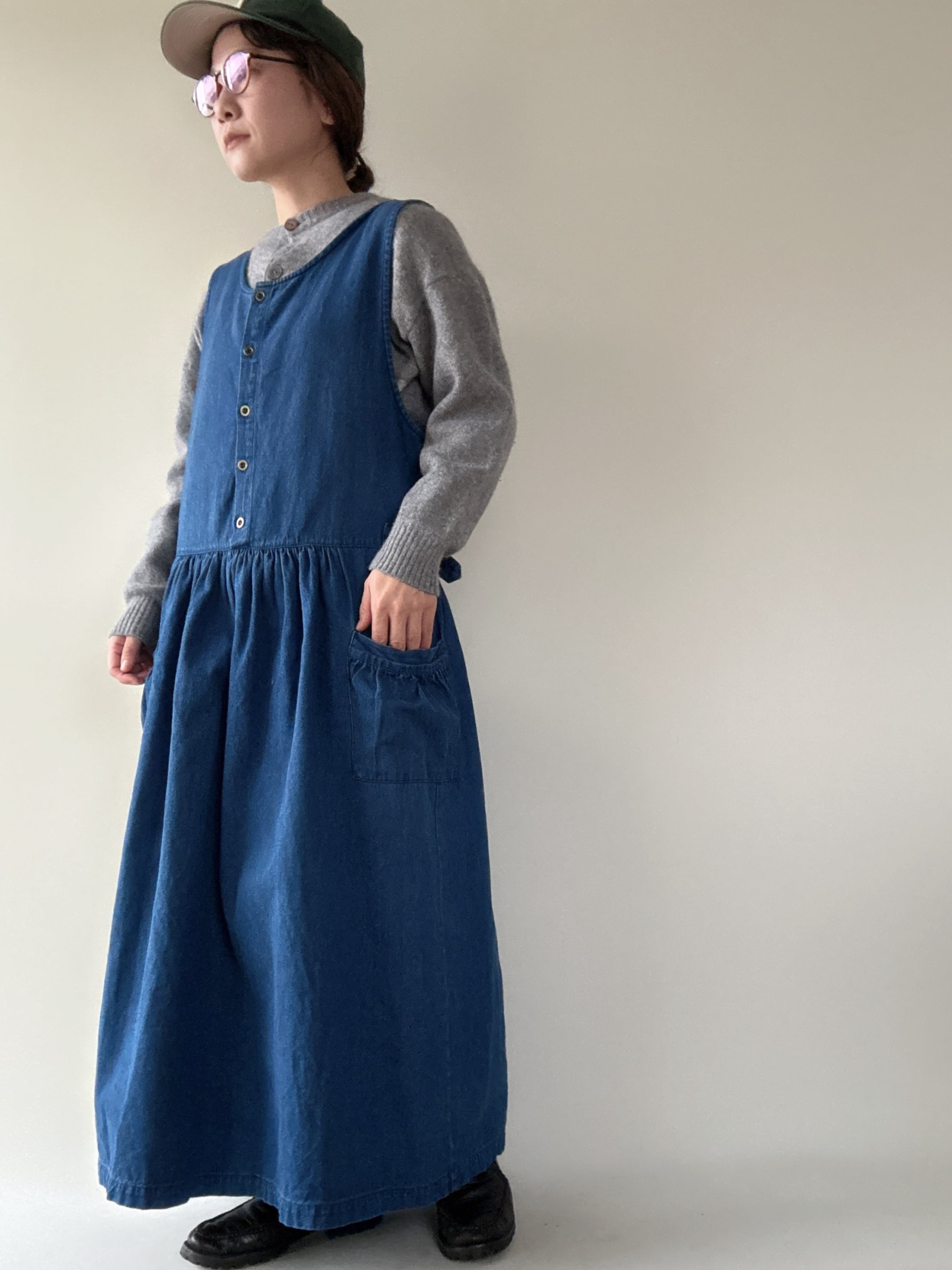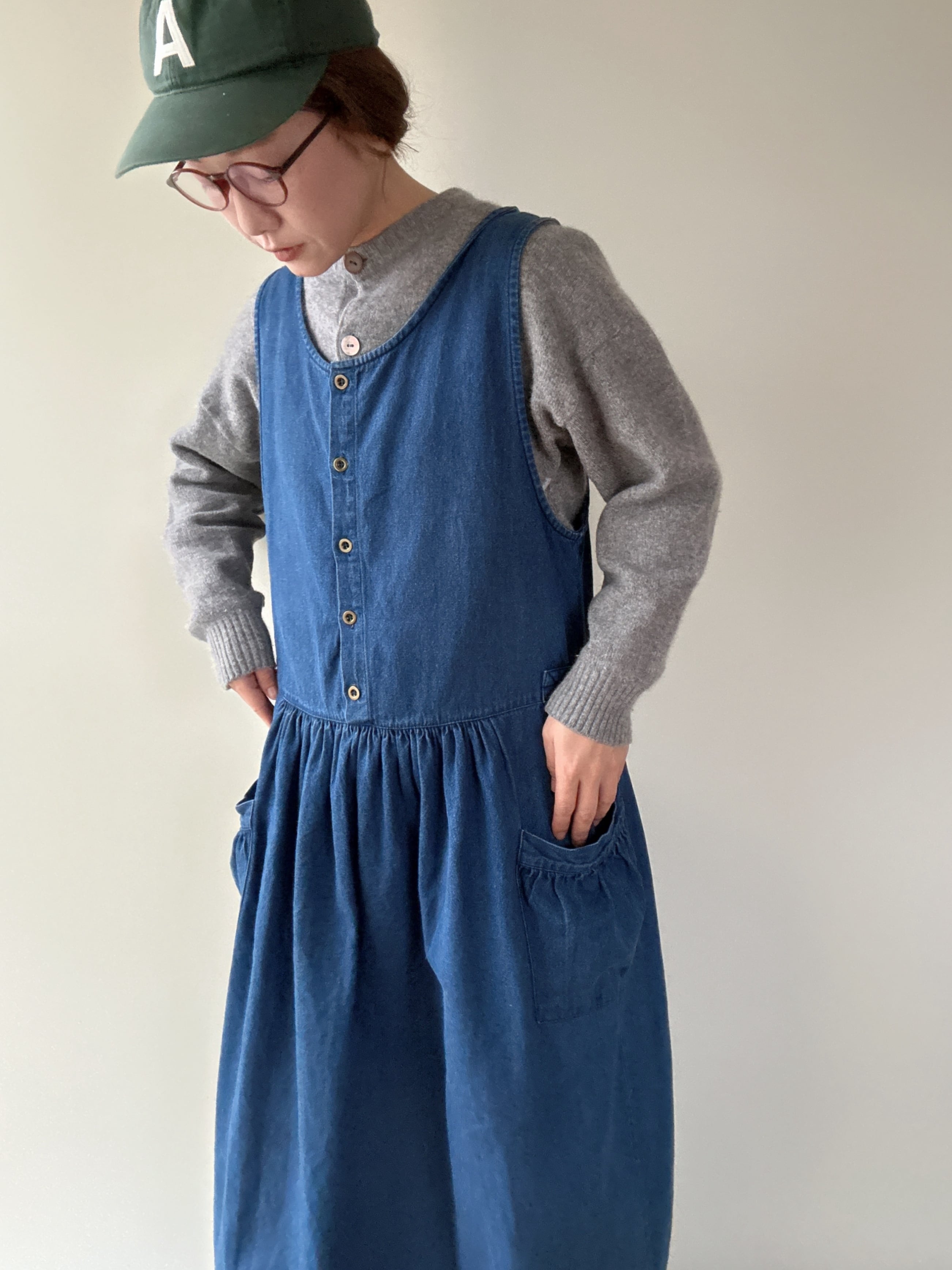 "Eddie Bauer"cotton blue denim nosleeve onepiece