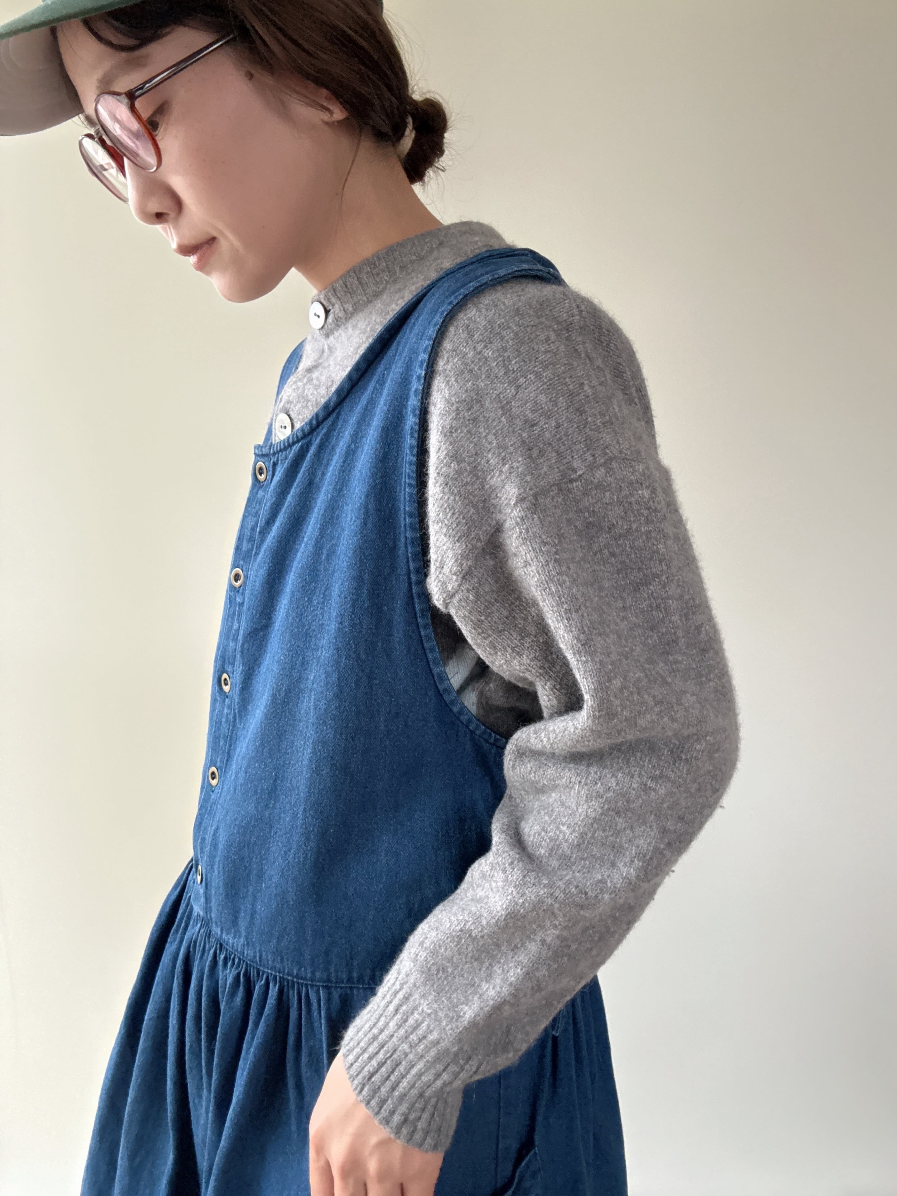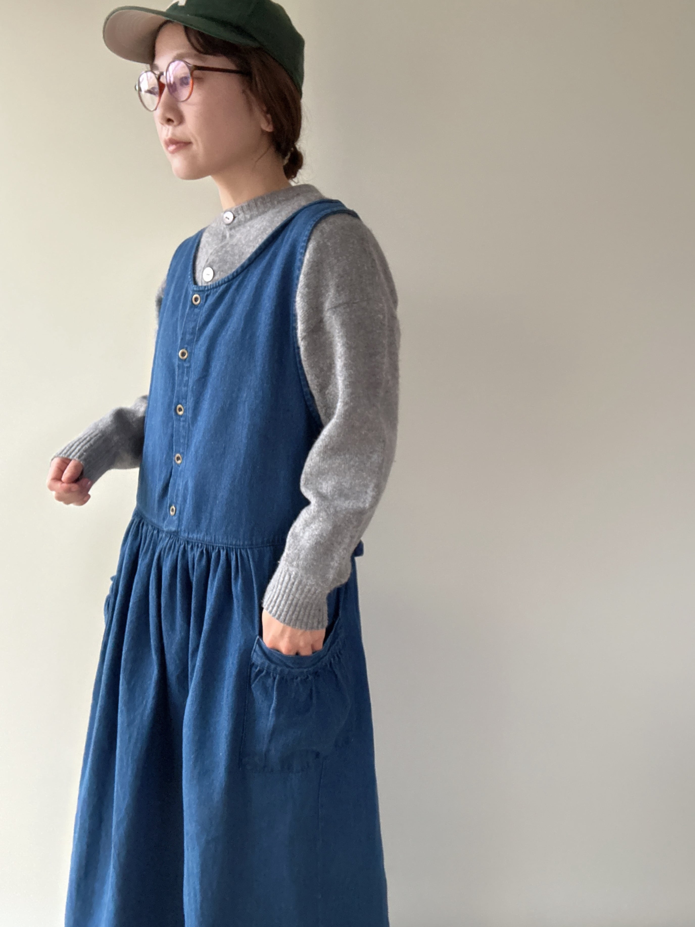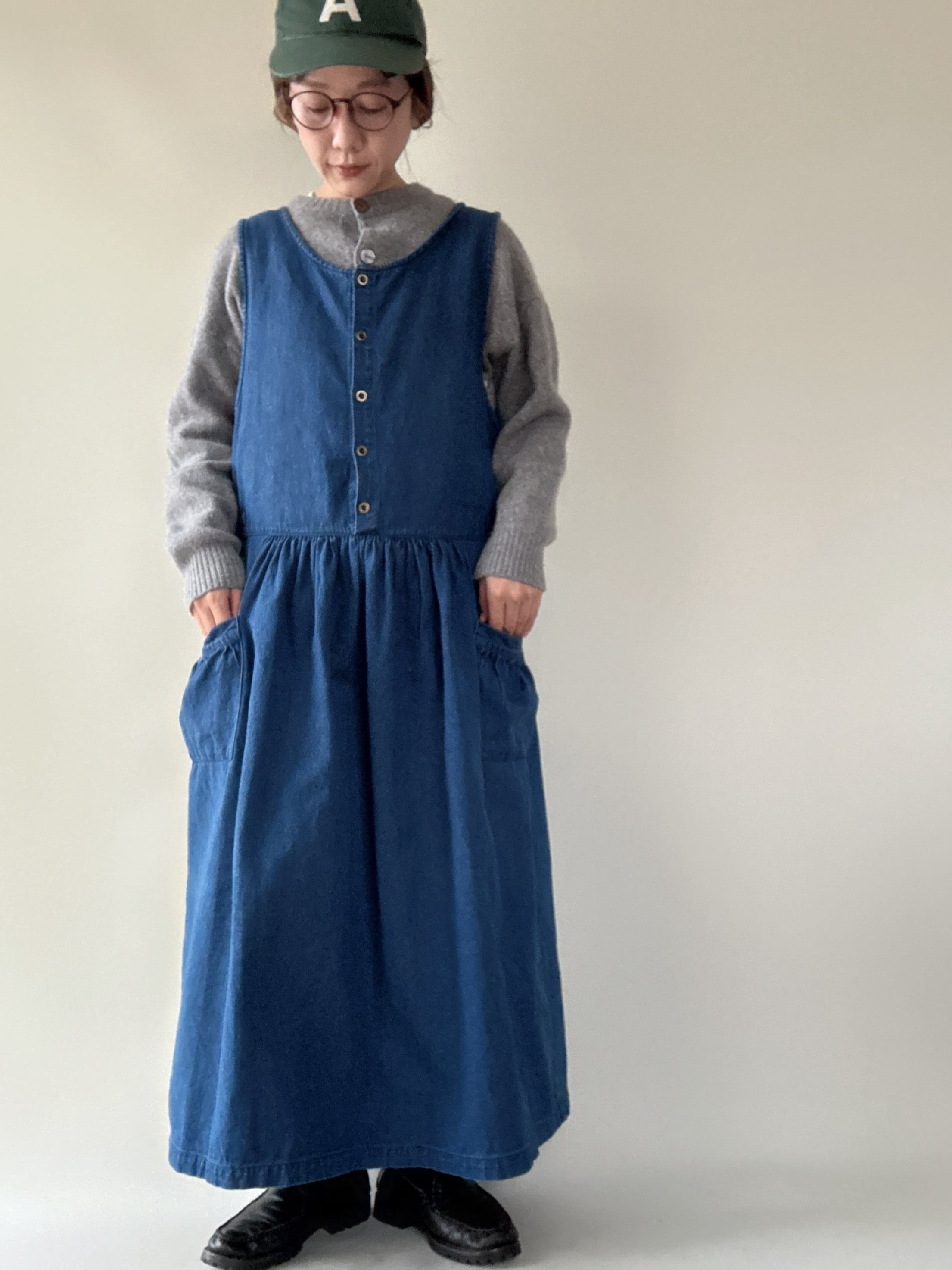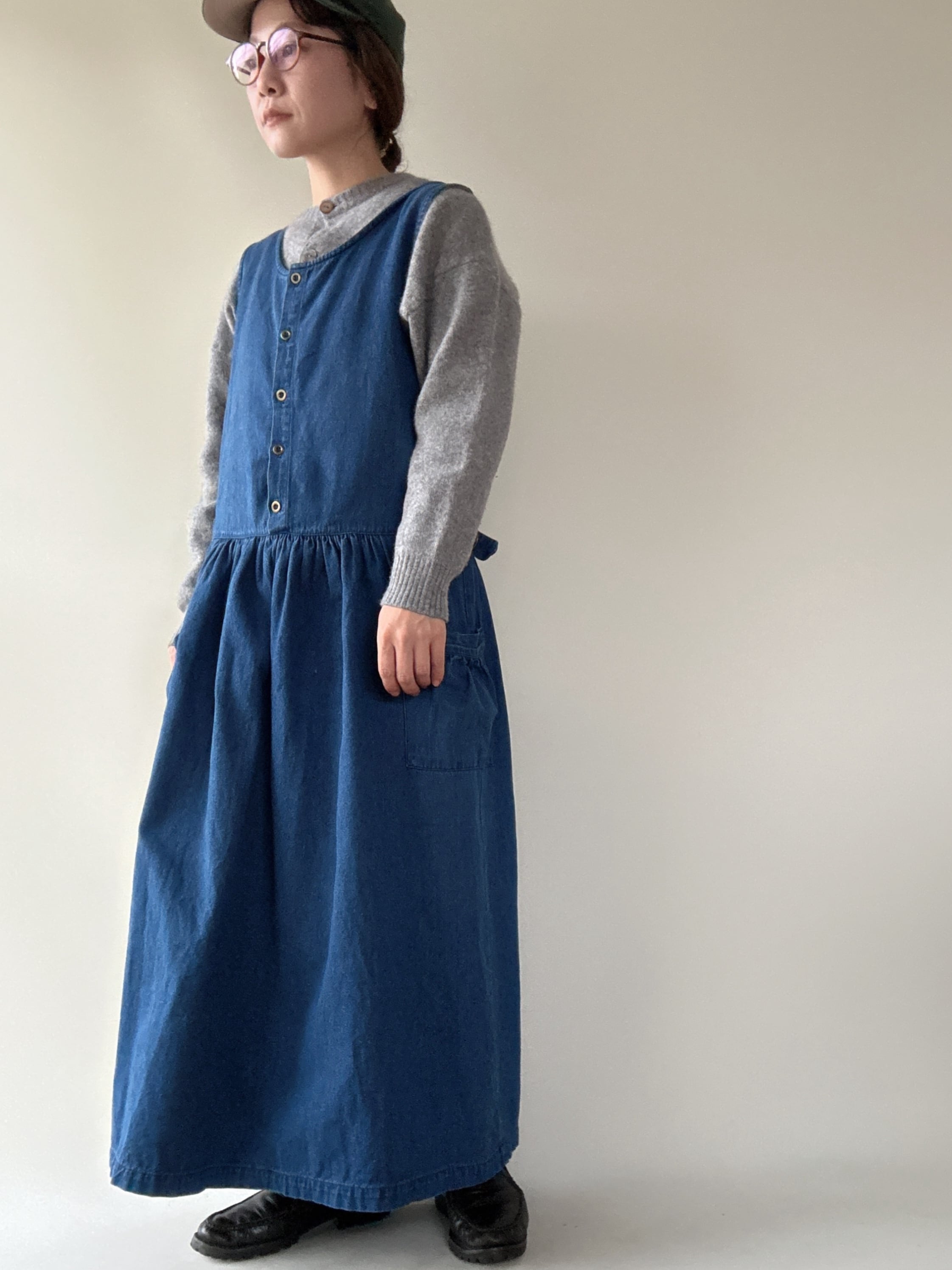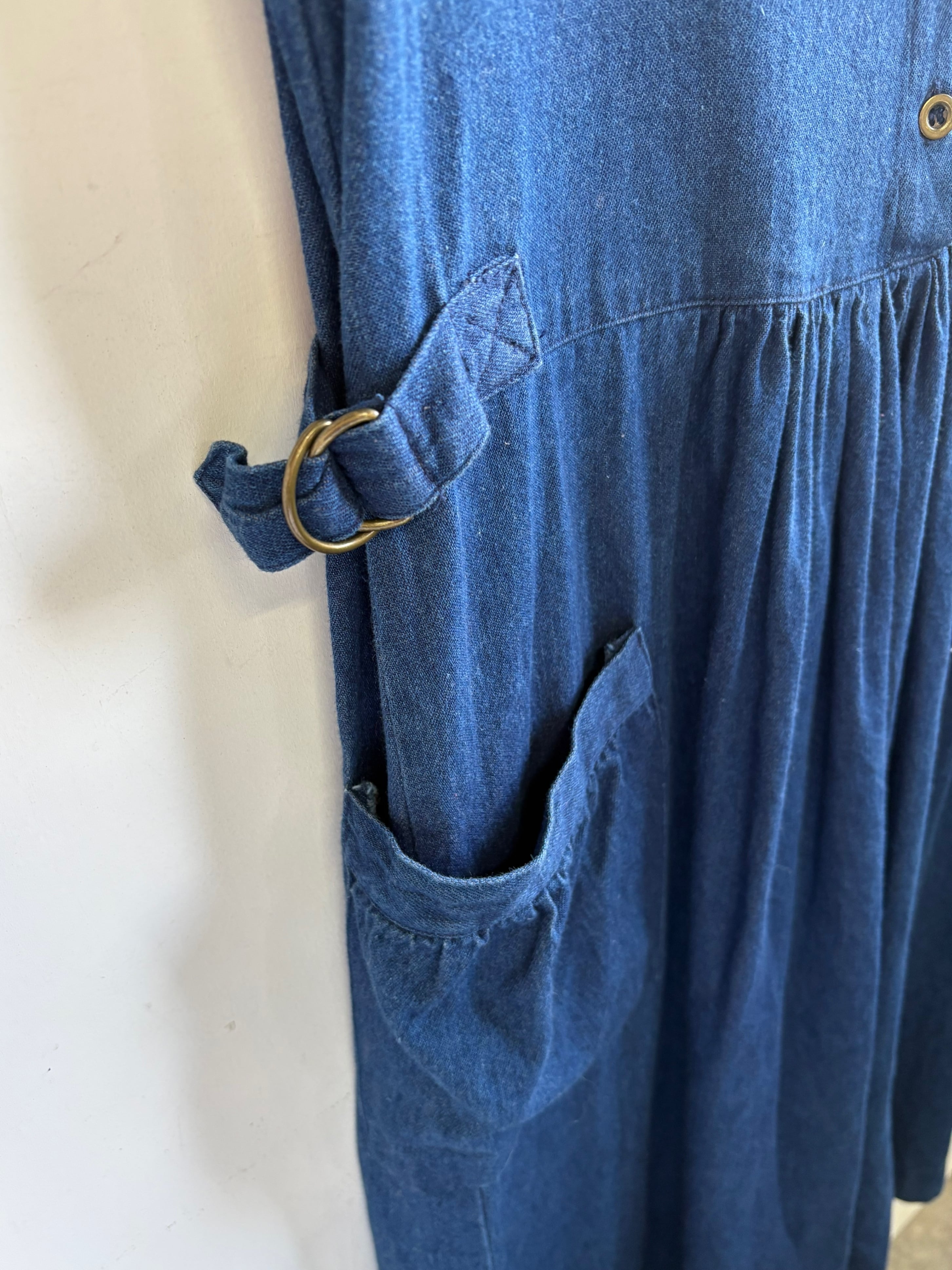 "Eddie Bauer"cotton blue denim nosleeve onepiece