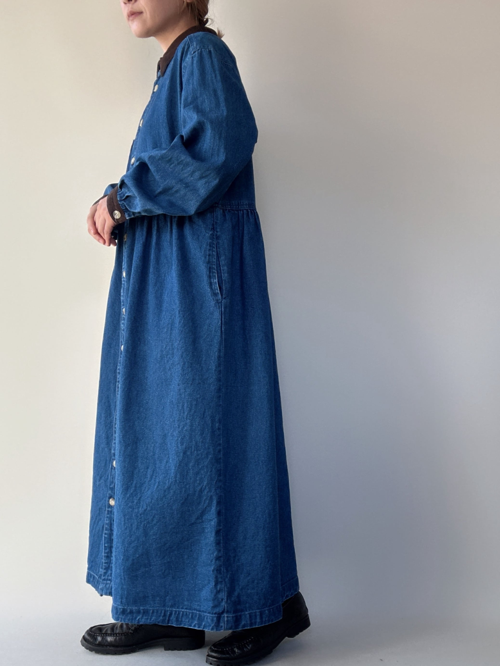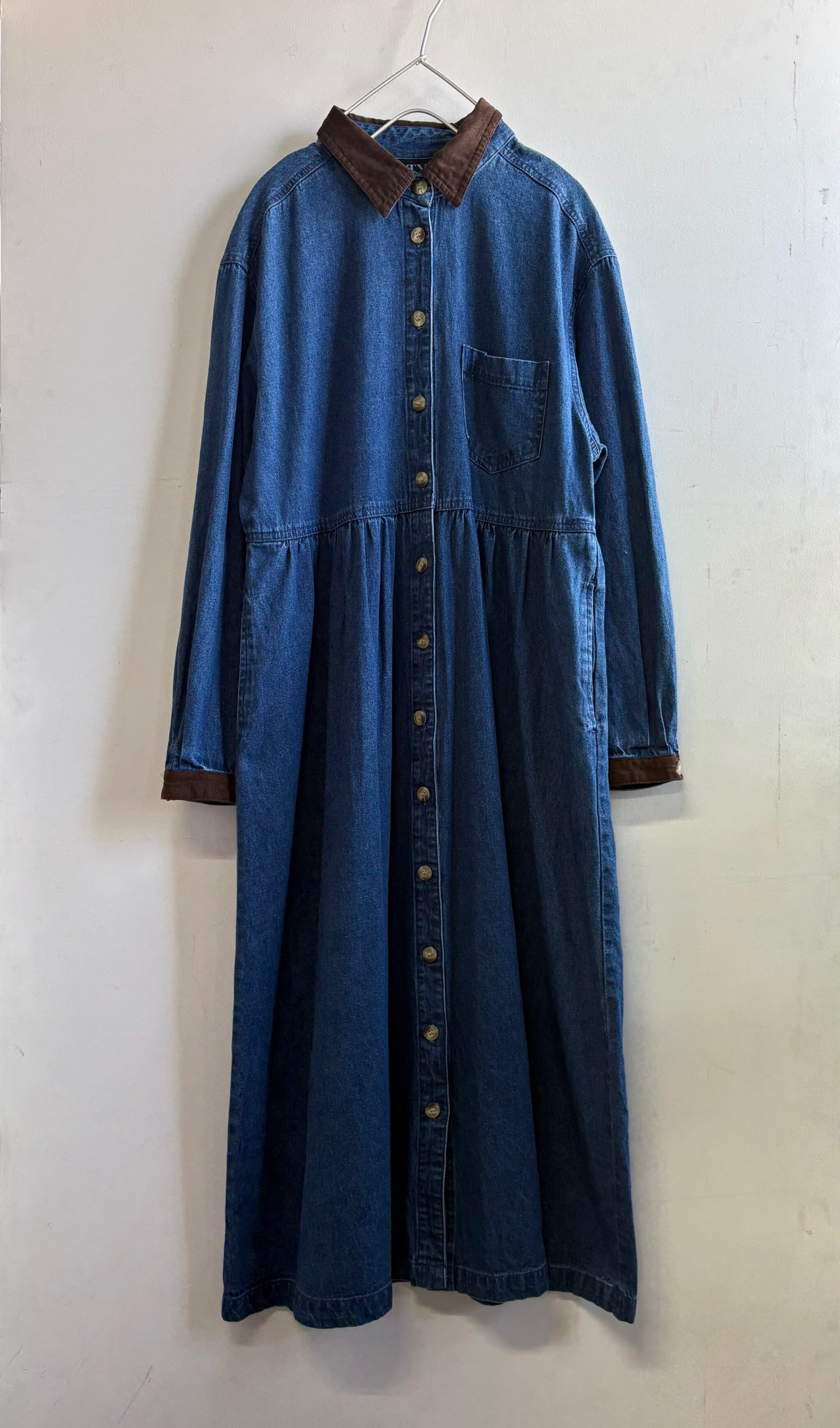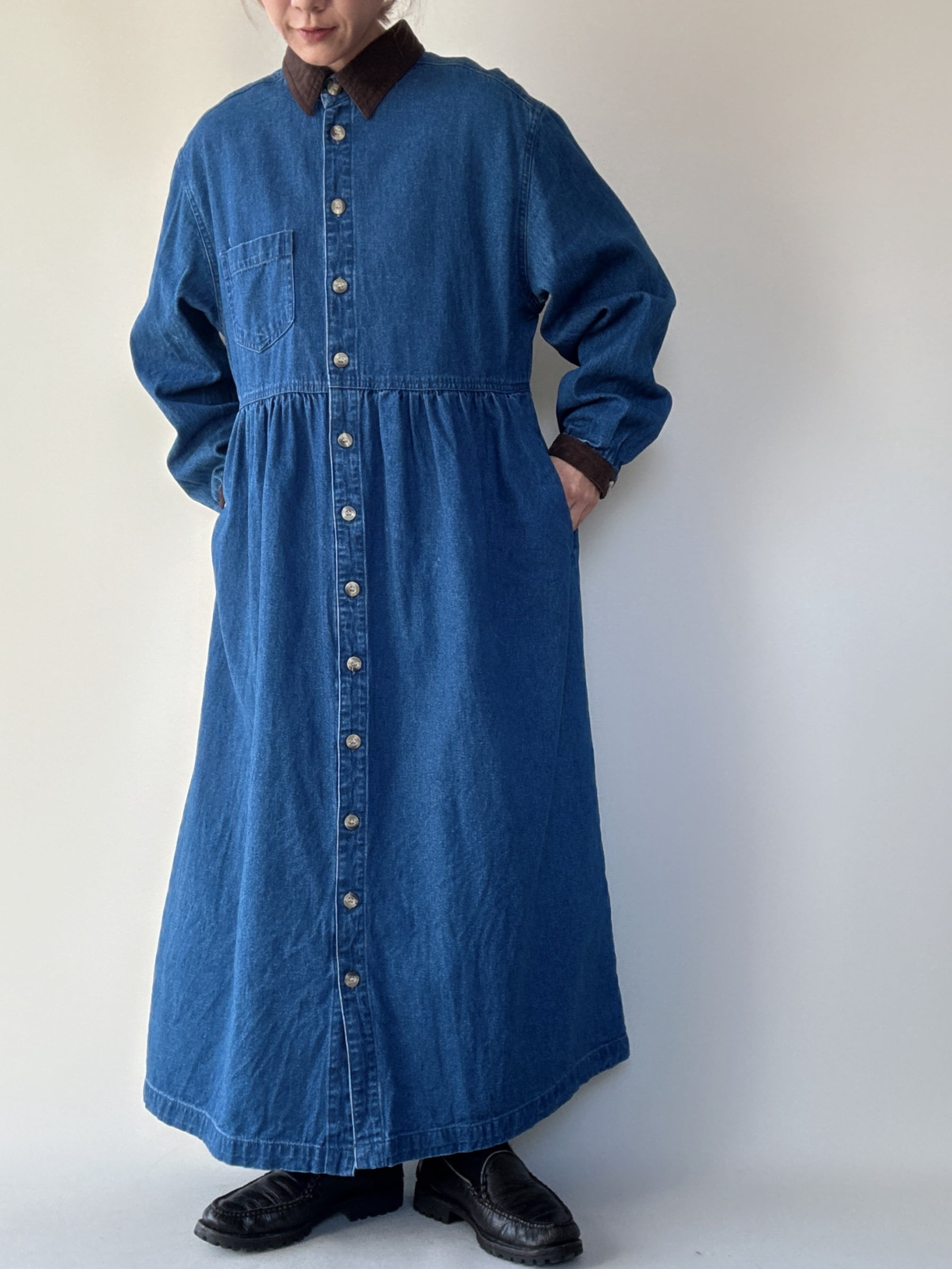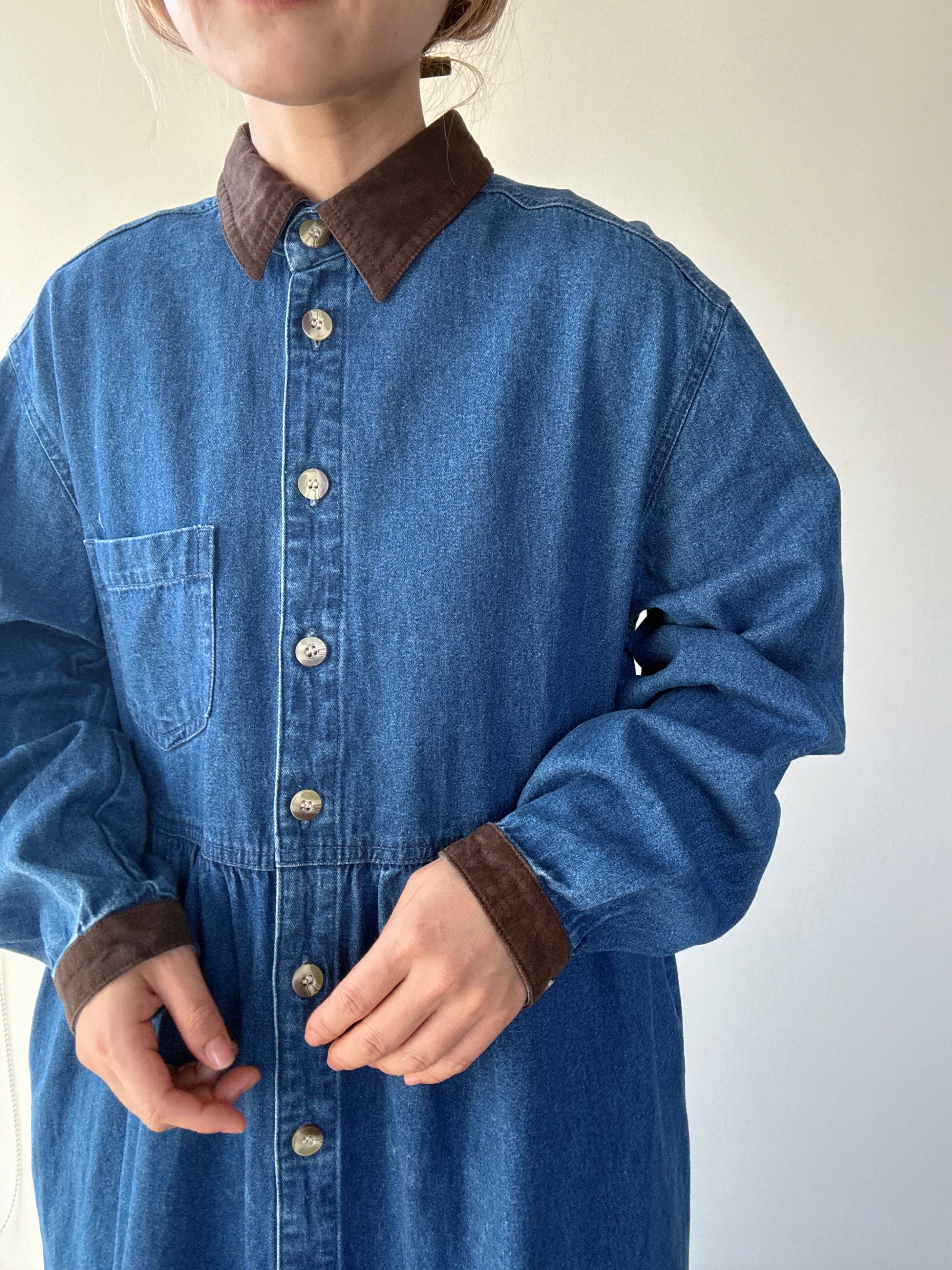 cotton blue denim long sleeve onepiece