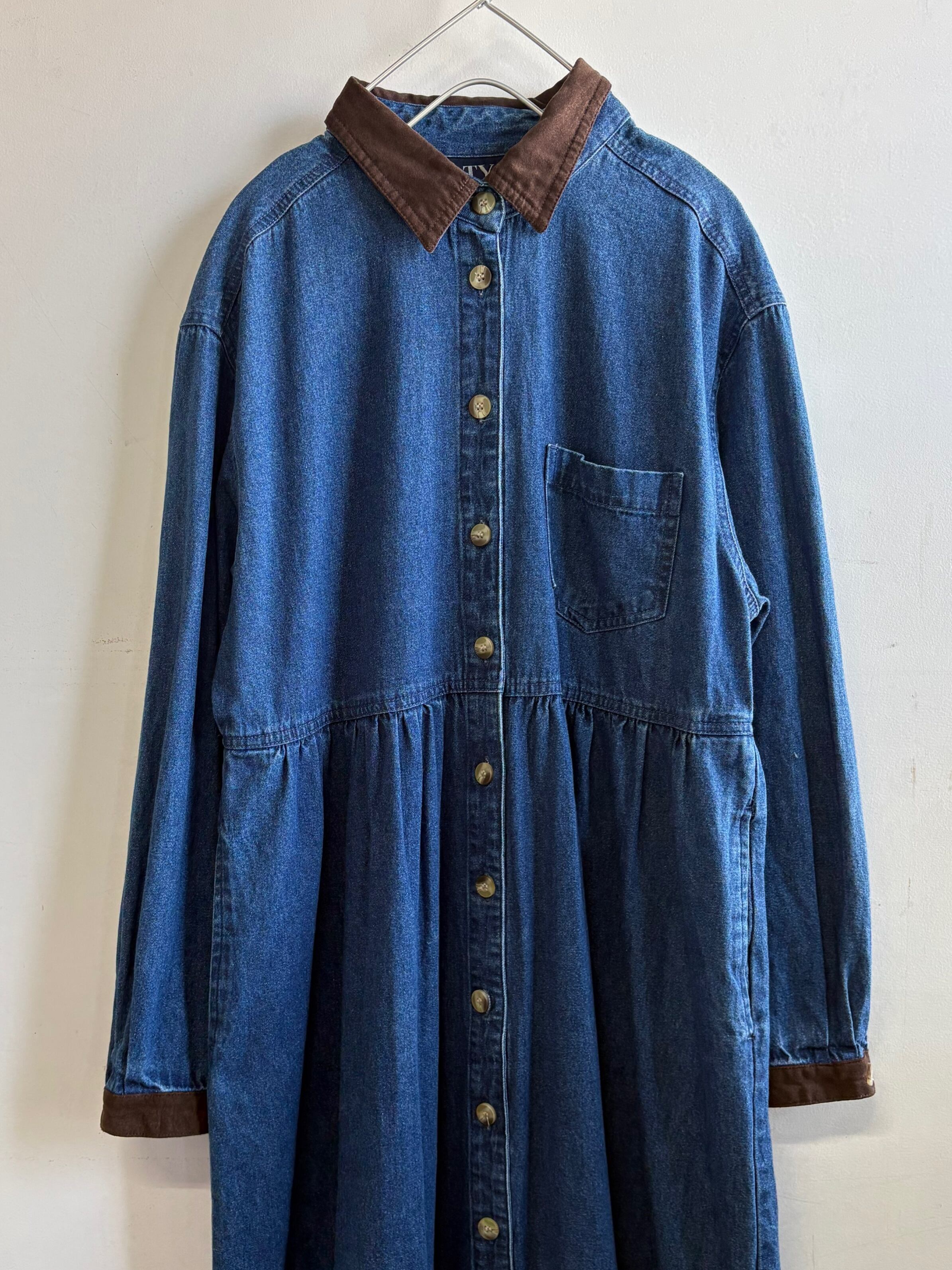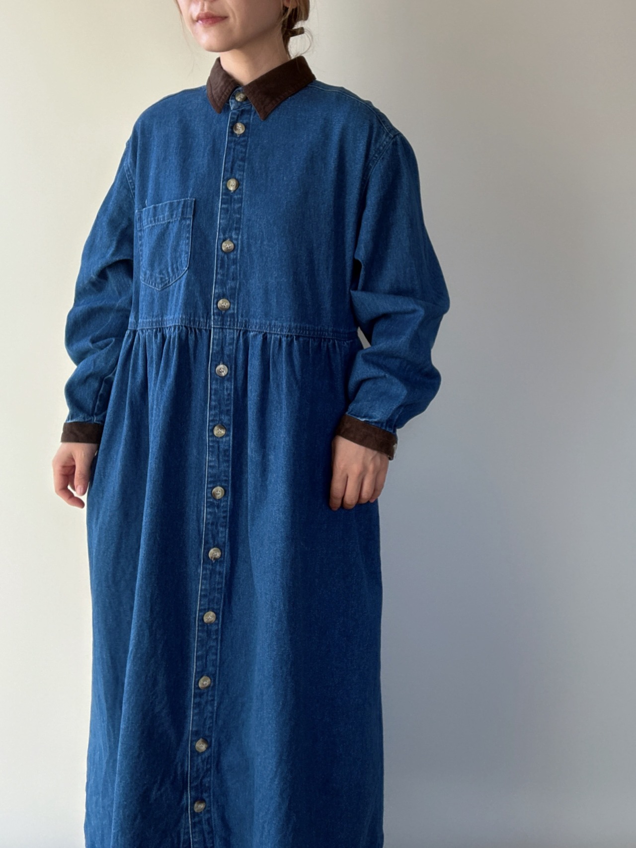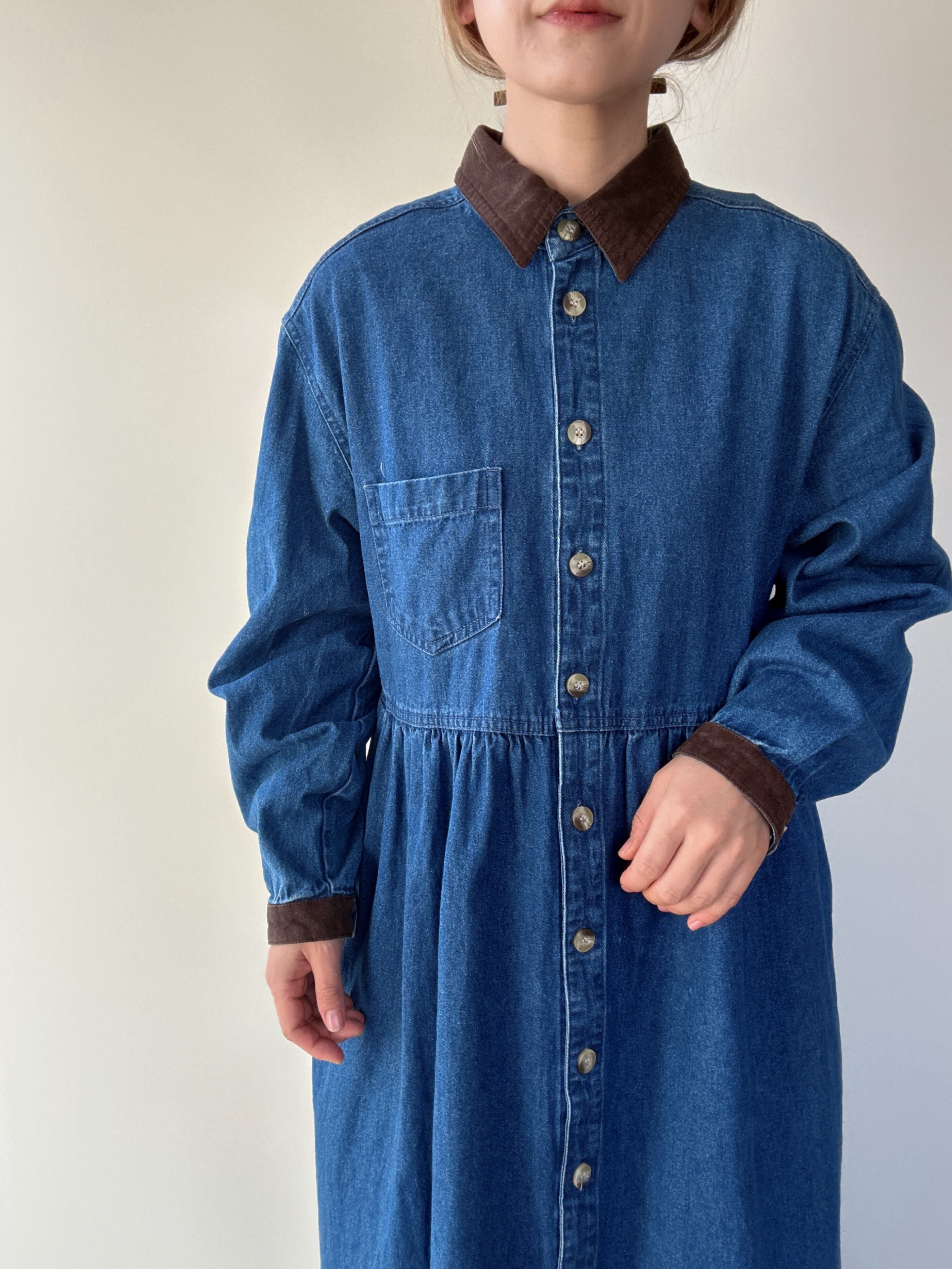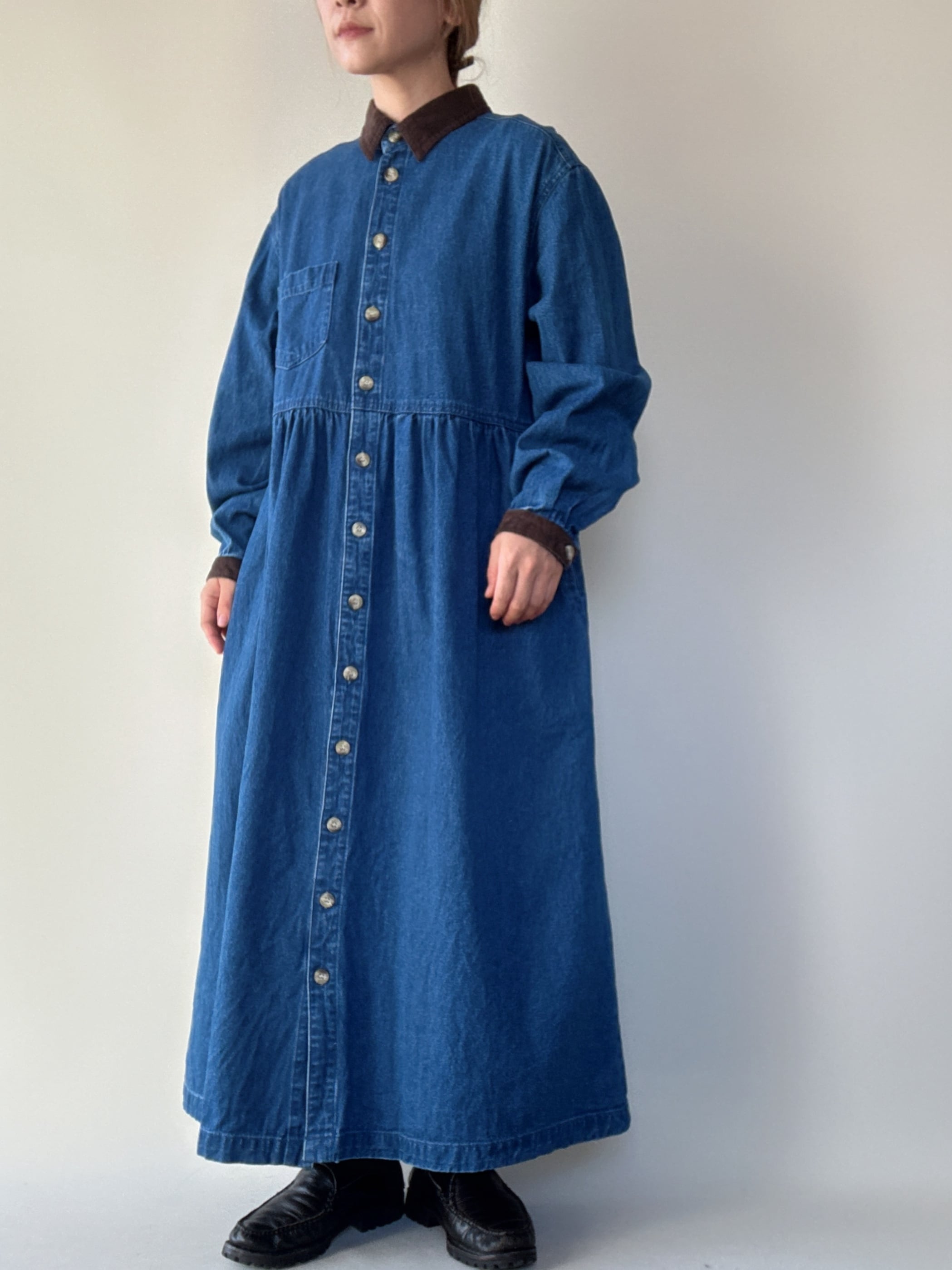 cotton blue denim long sleeve onepiece