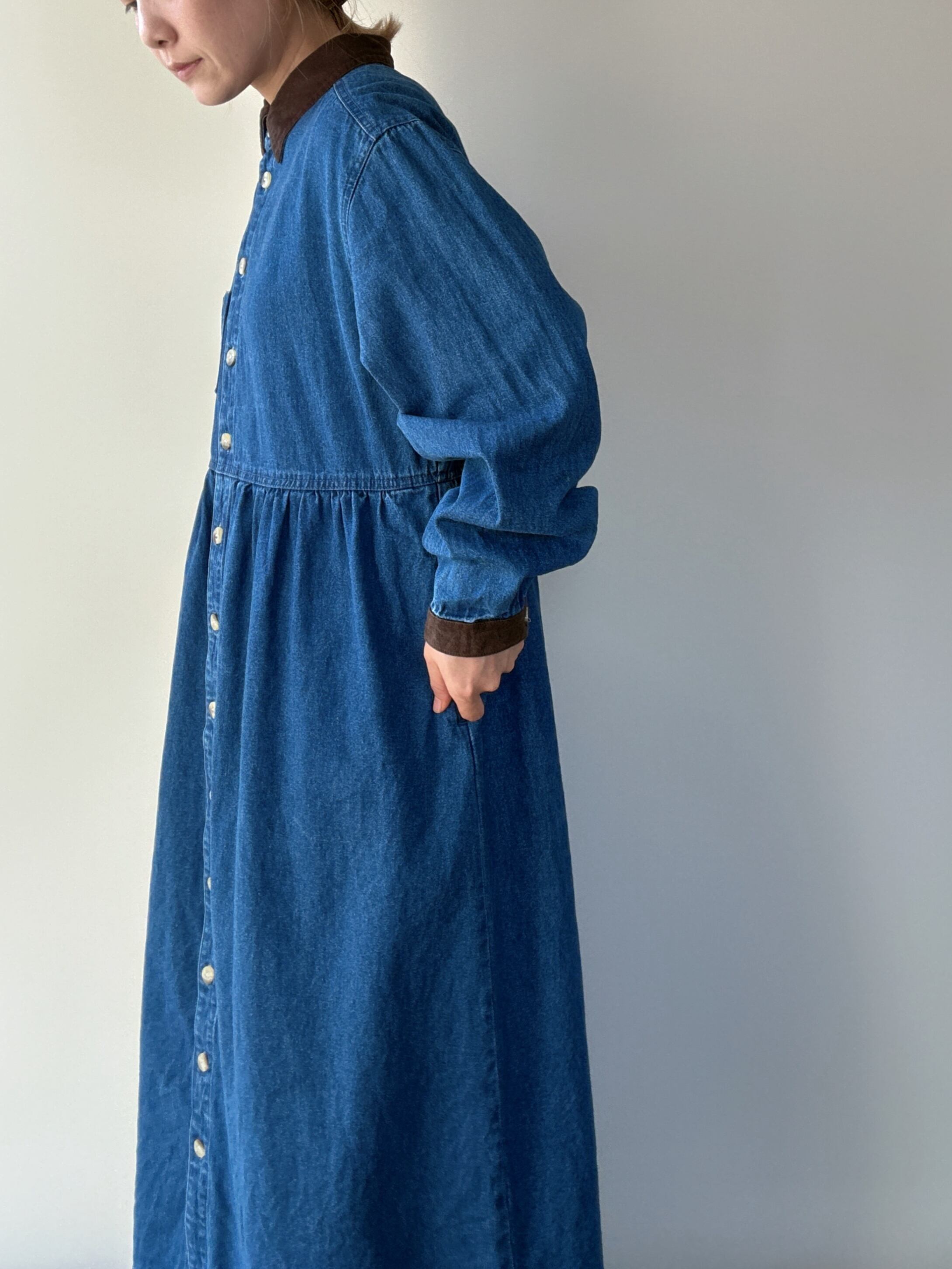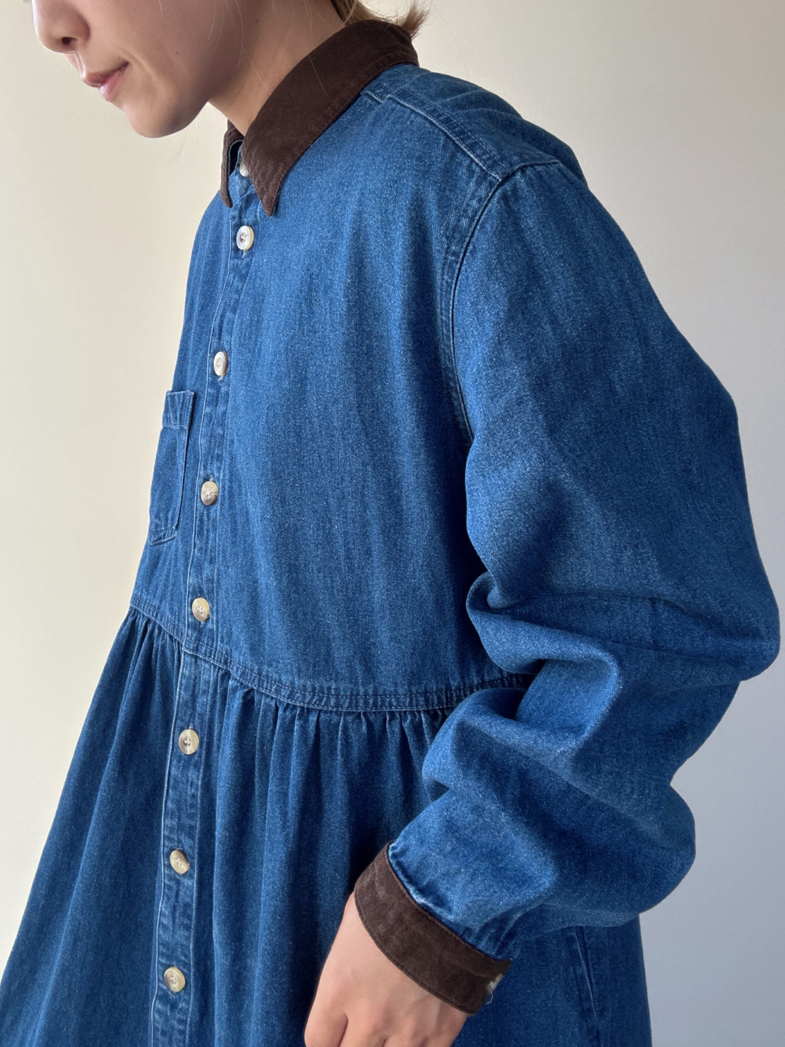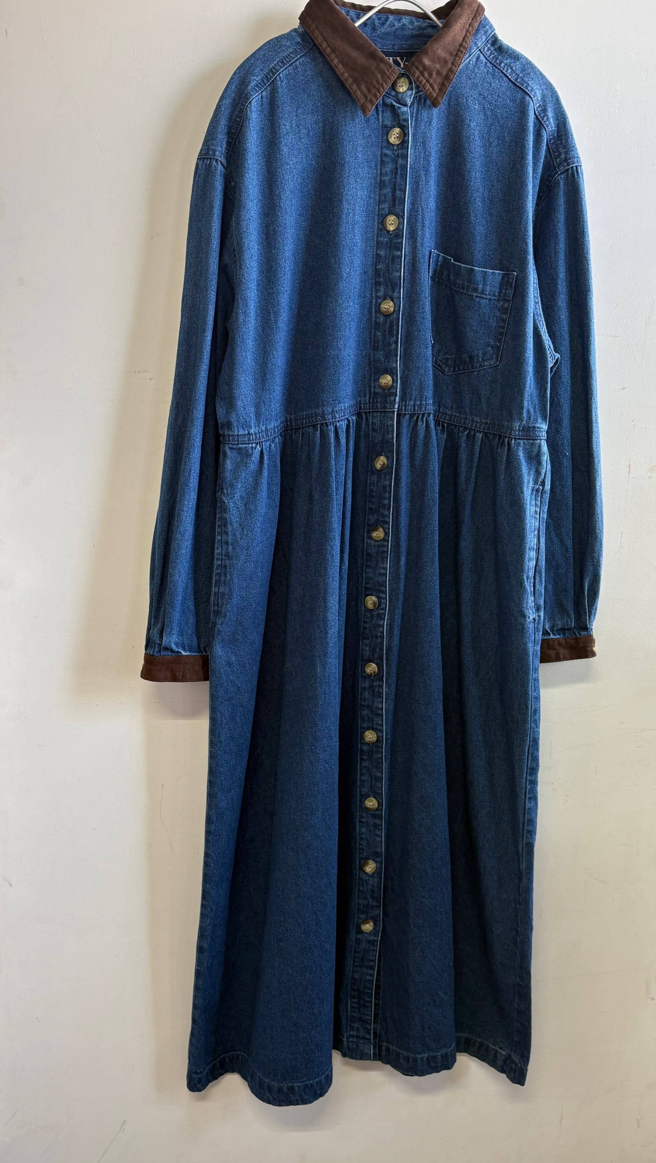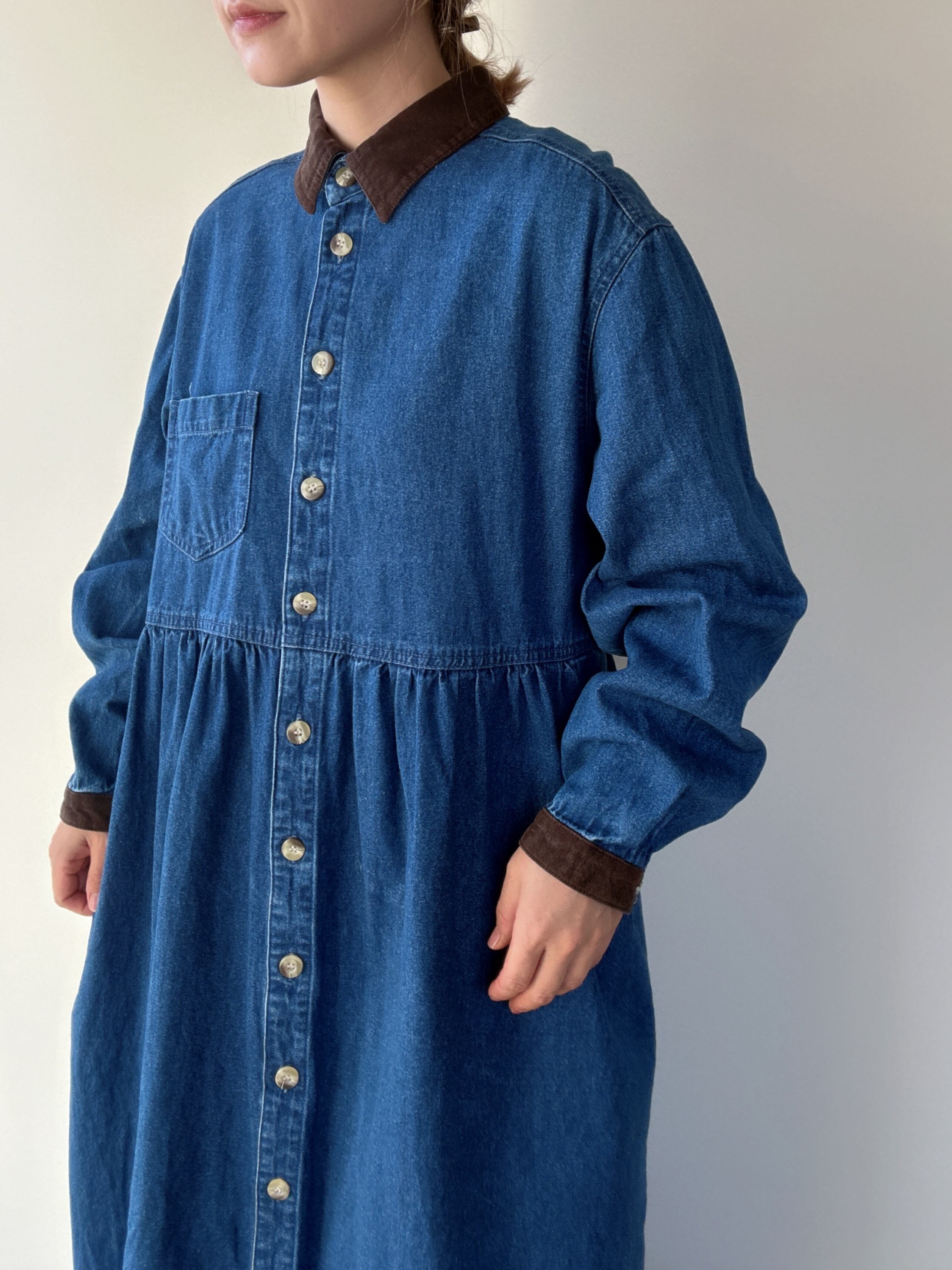 cotton blue denim long sleeve onepiece