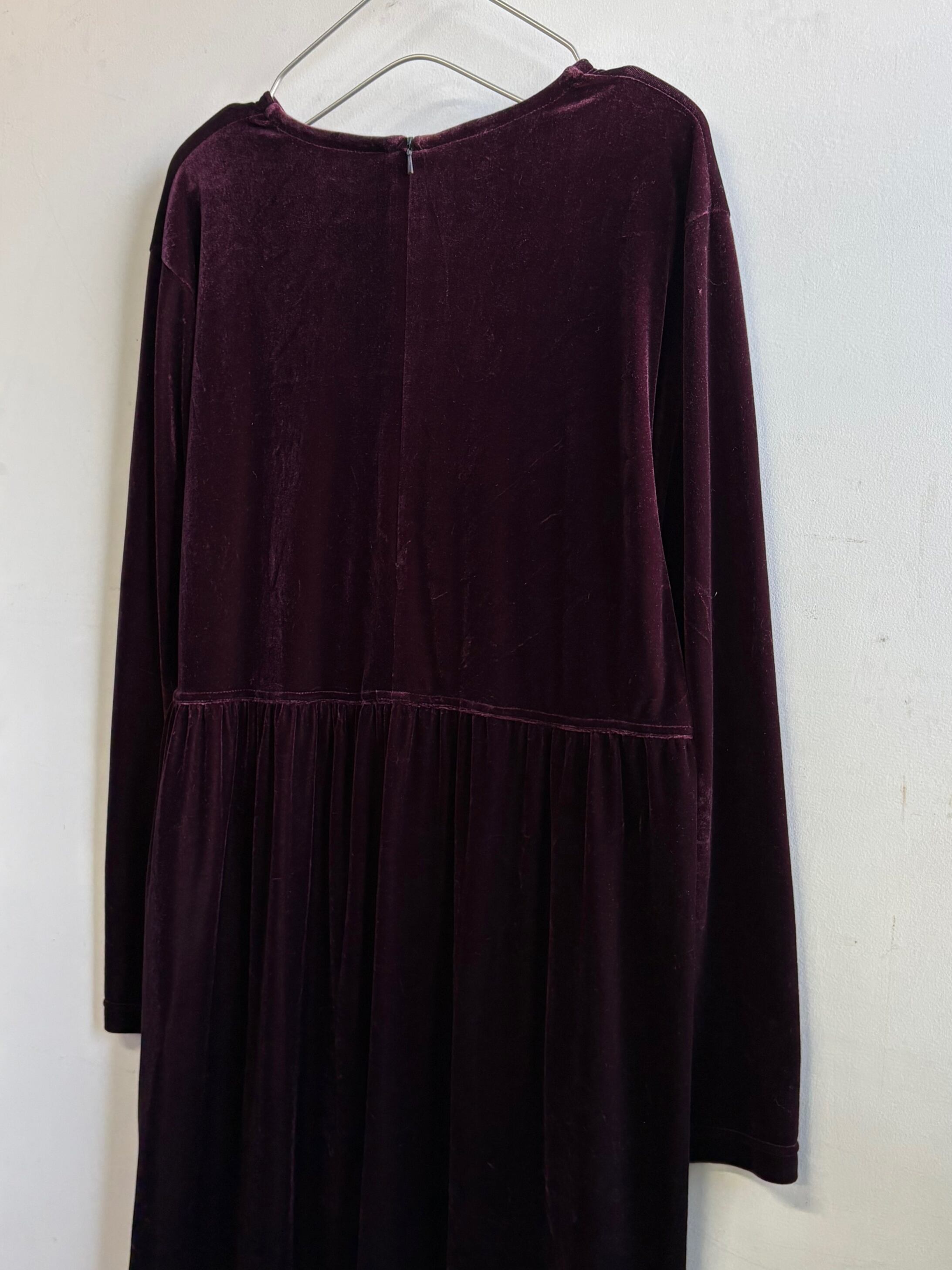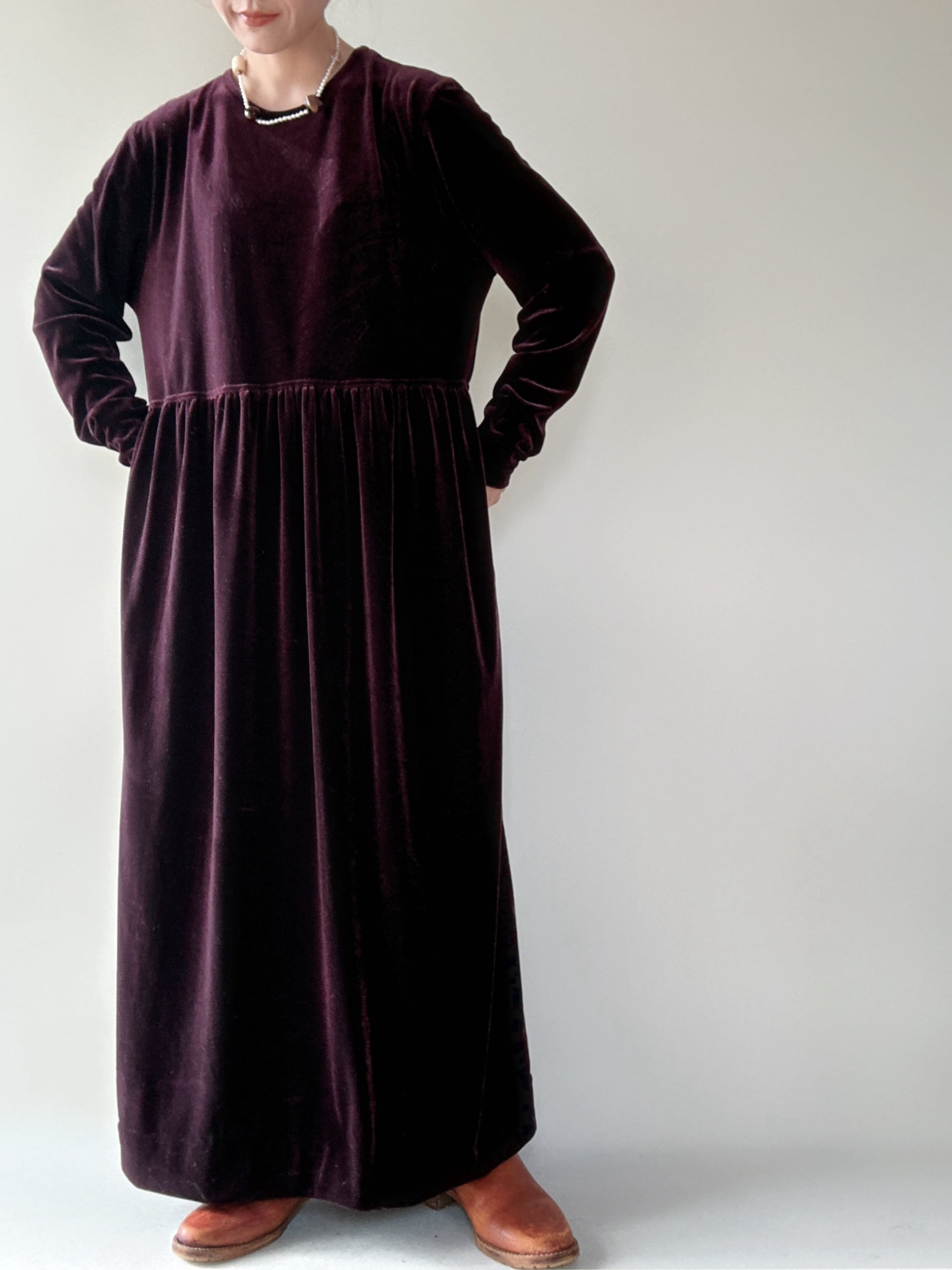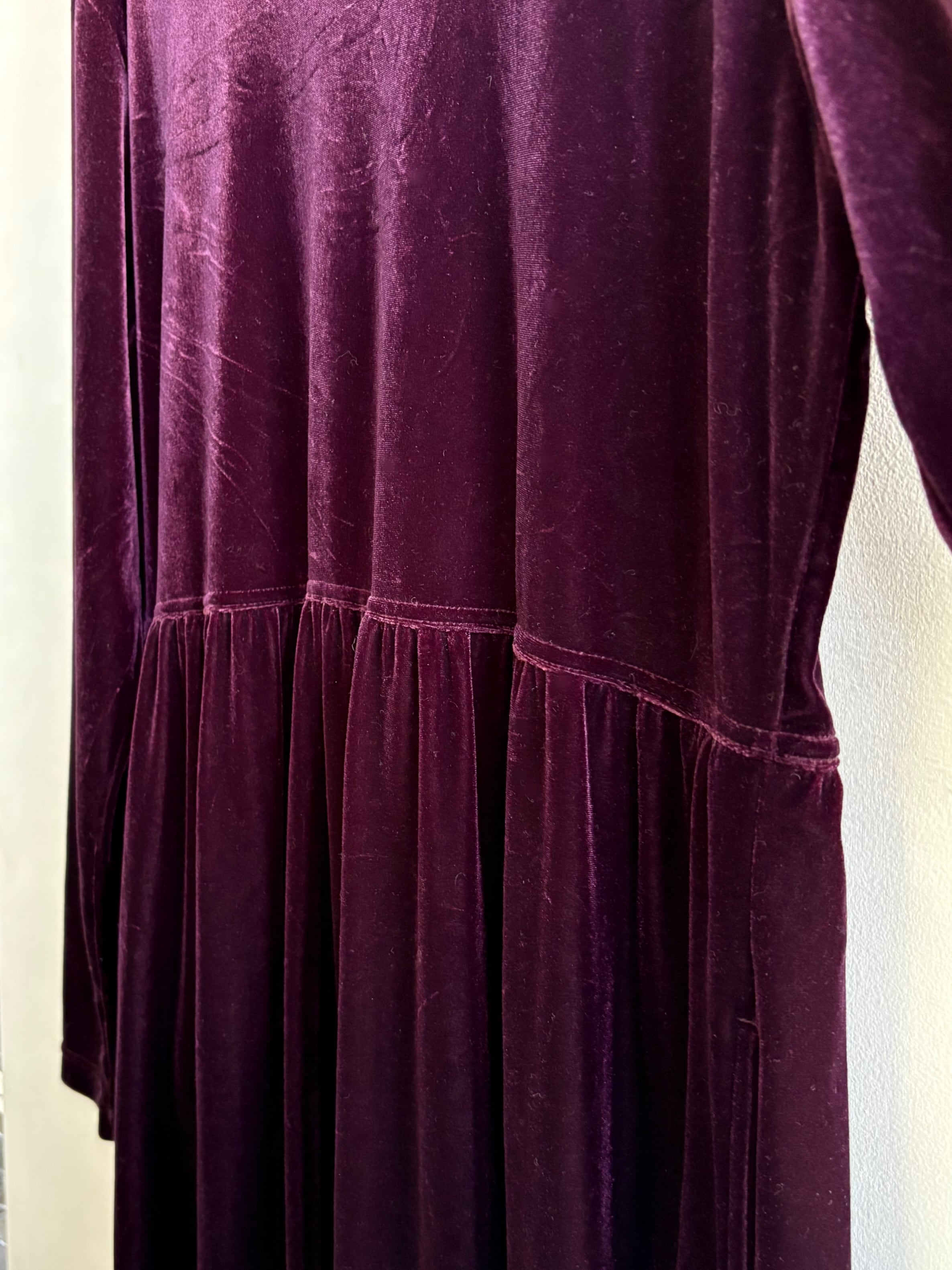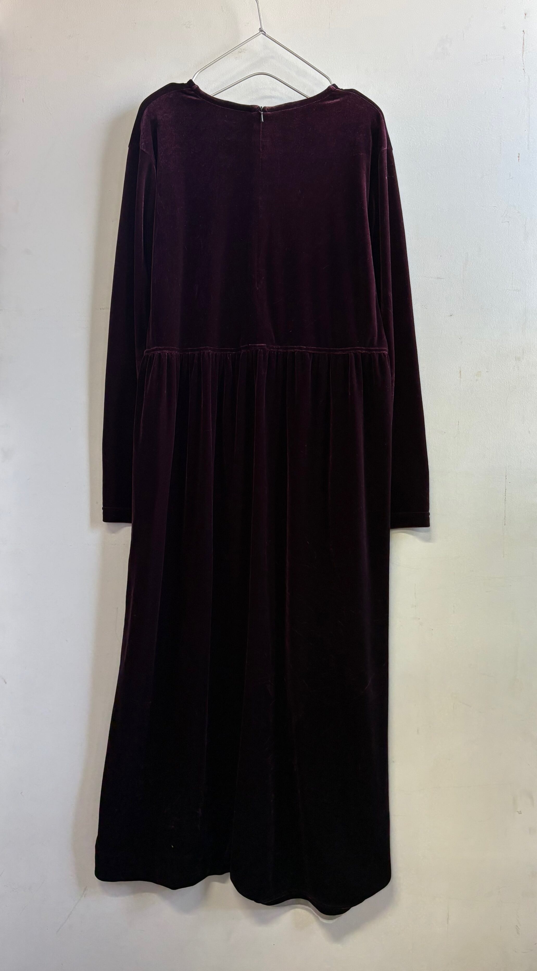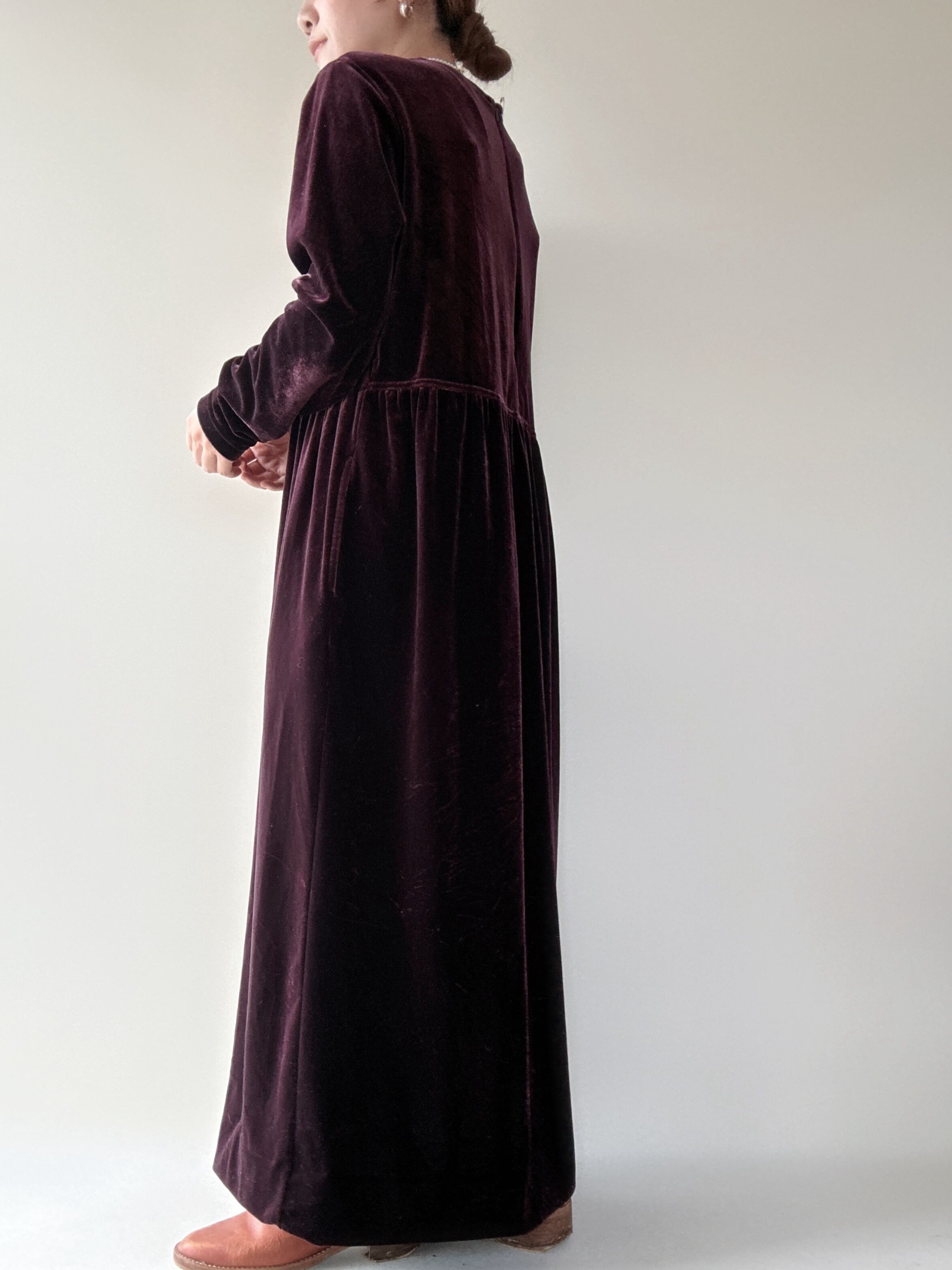 柔らかなベロア素材のシンプルな長袖ロングワンピースです。