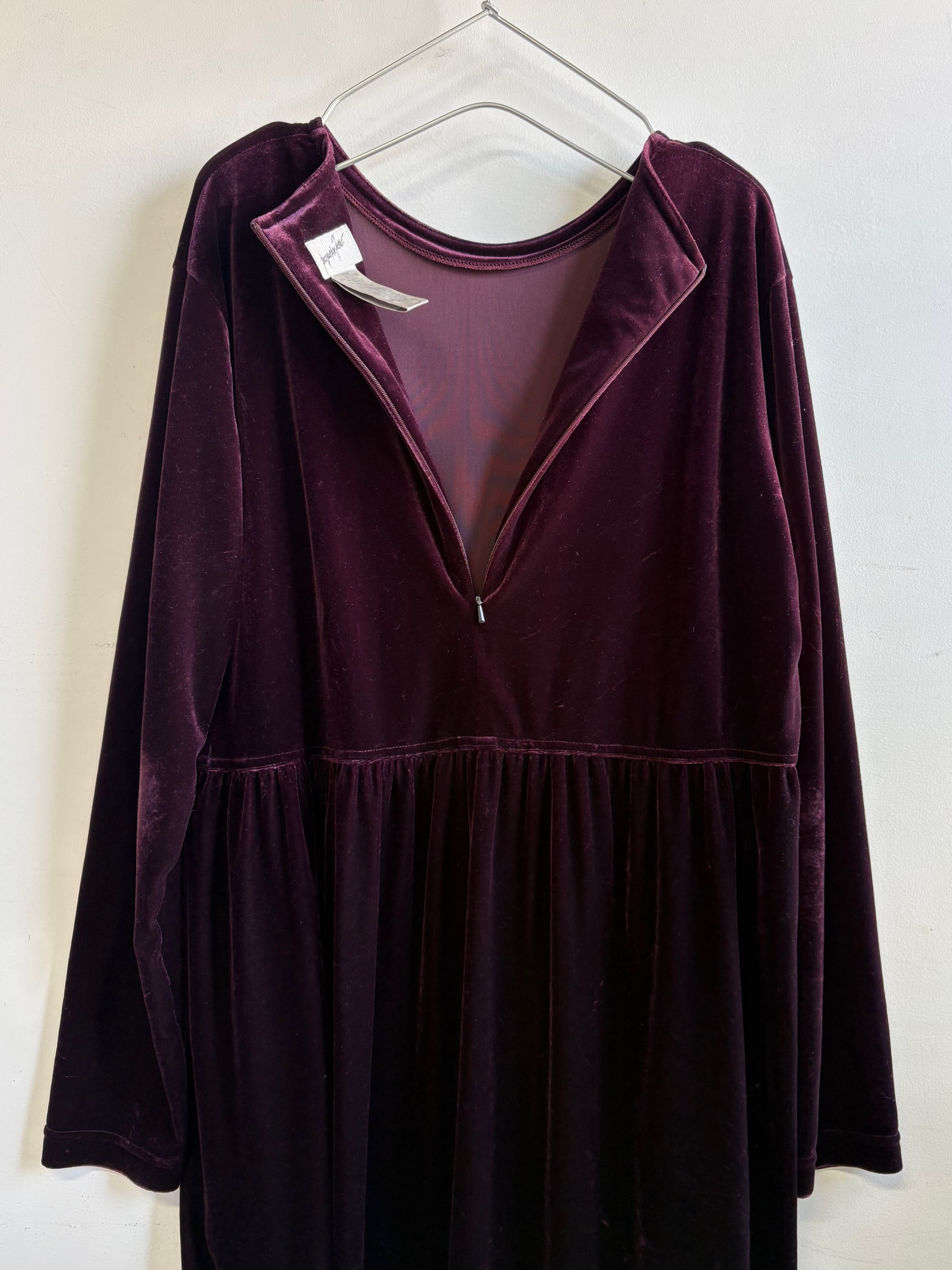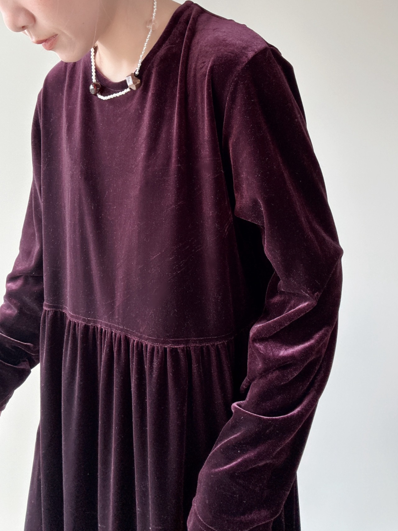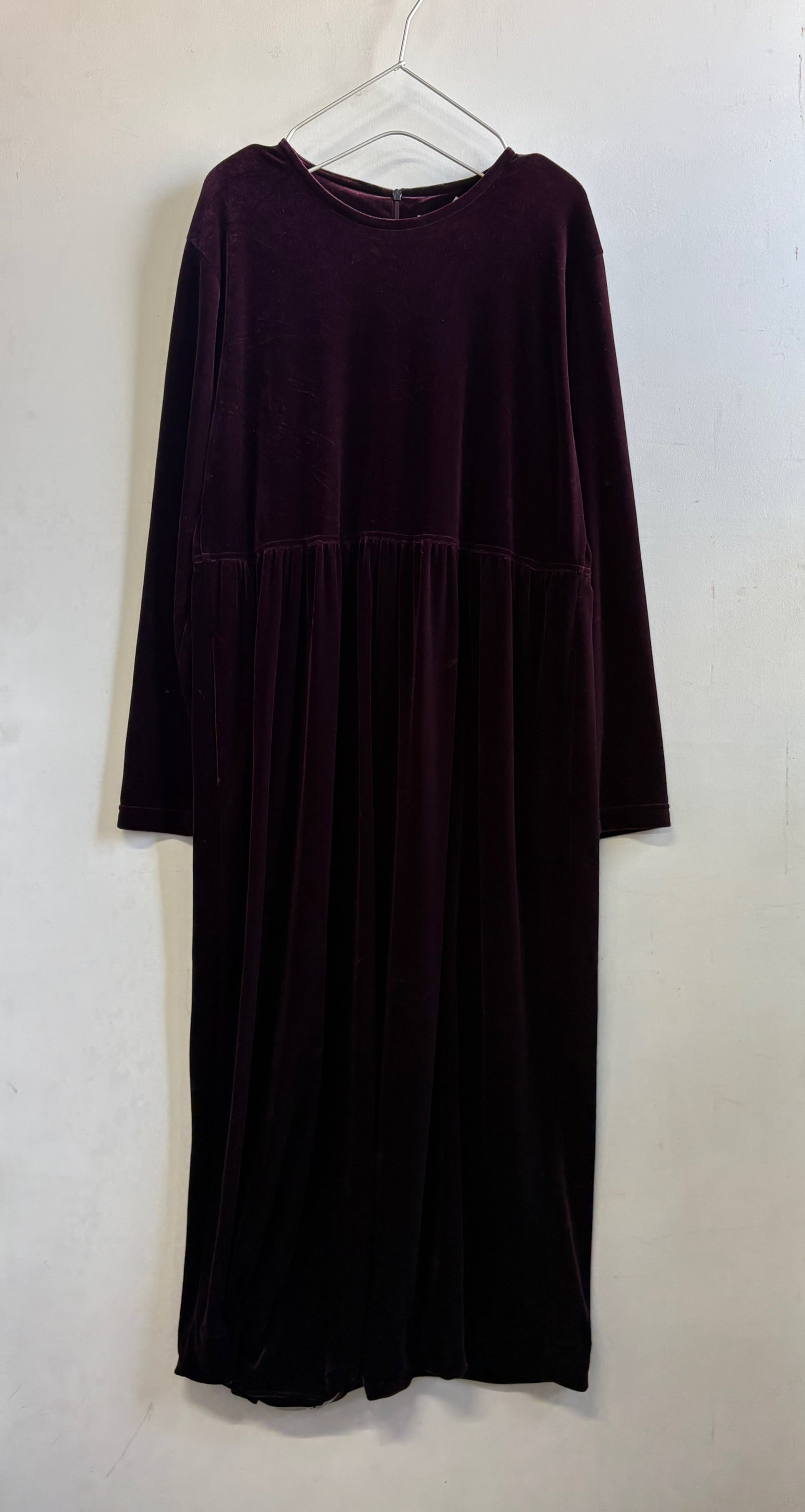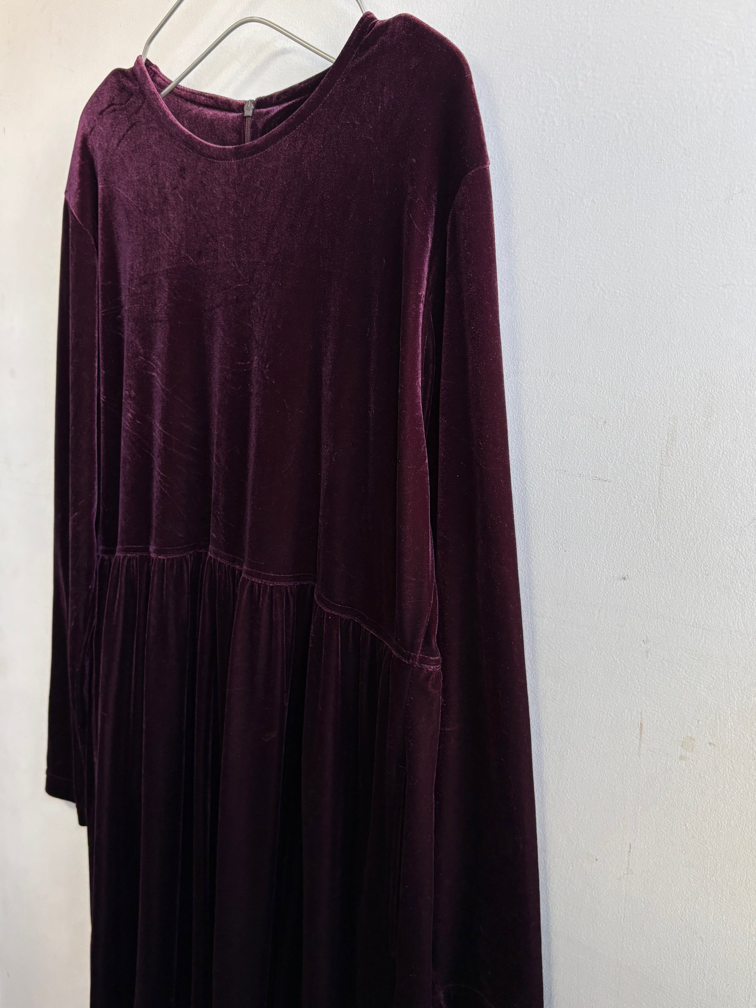 柔らかなベロア素材のシンプルな長袖ロングワンピースです。