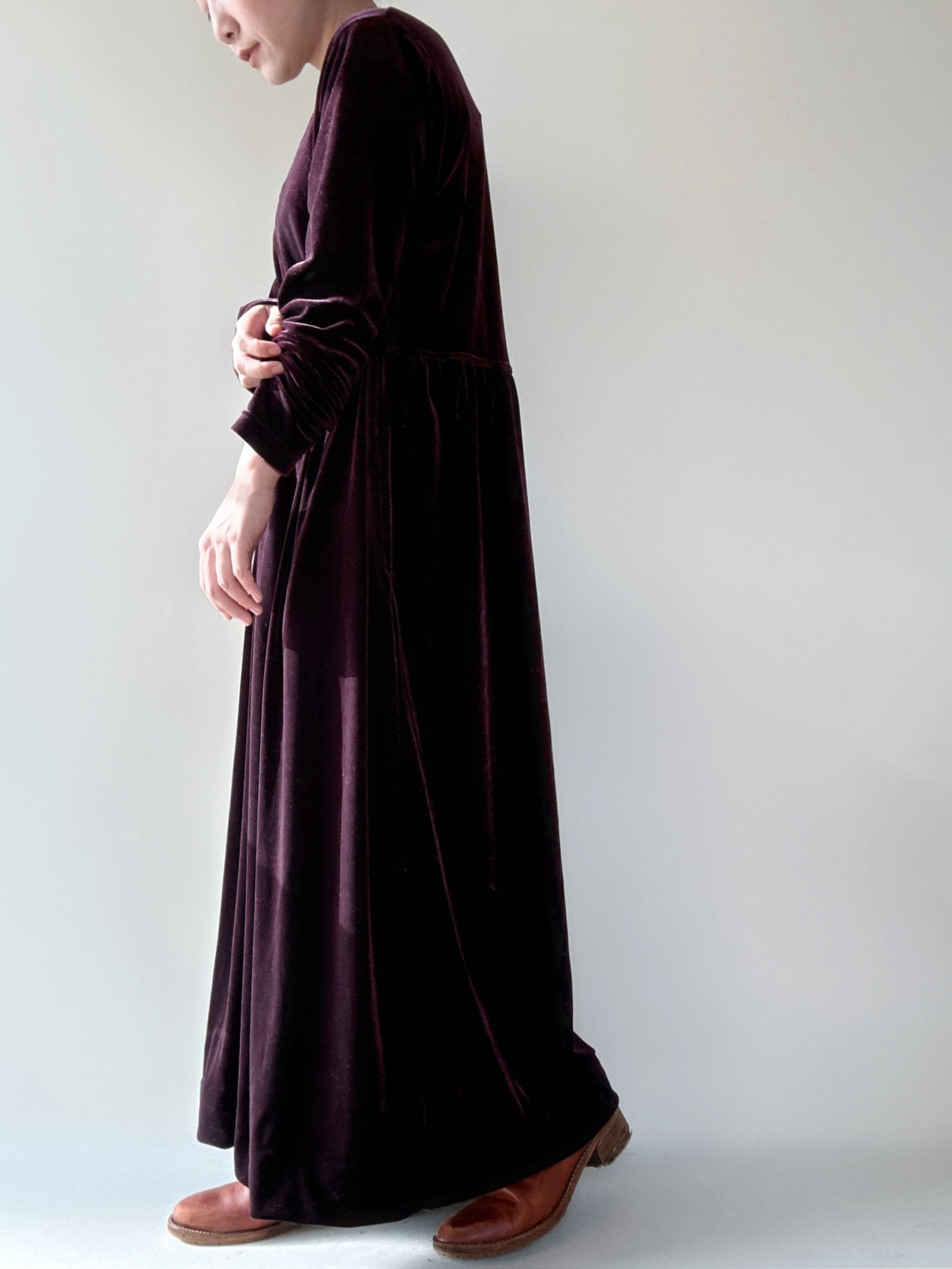 dark brown velours long onepiece
