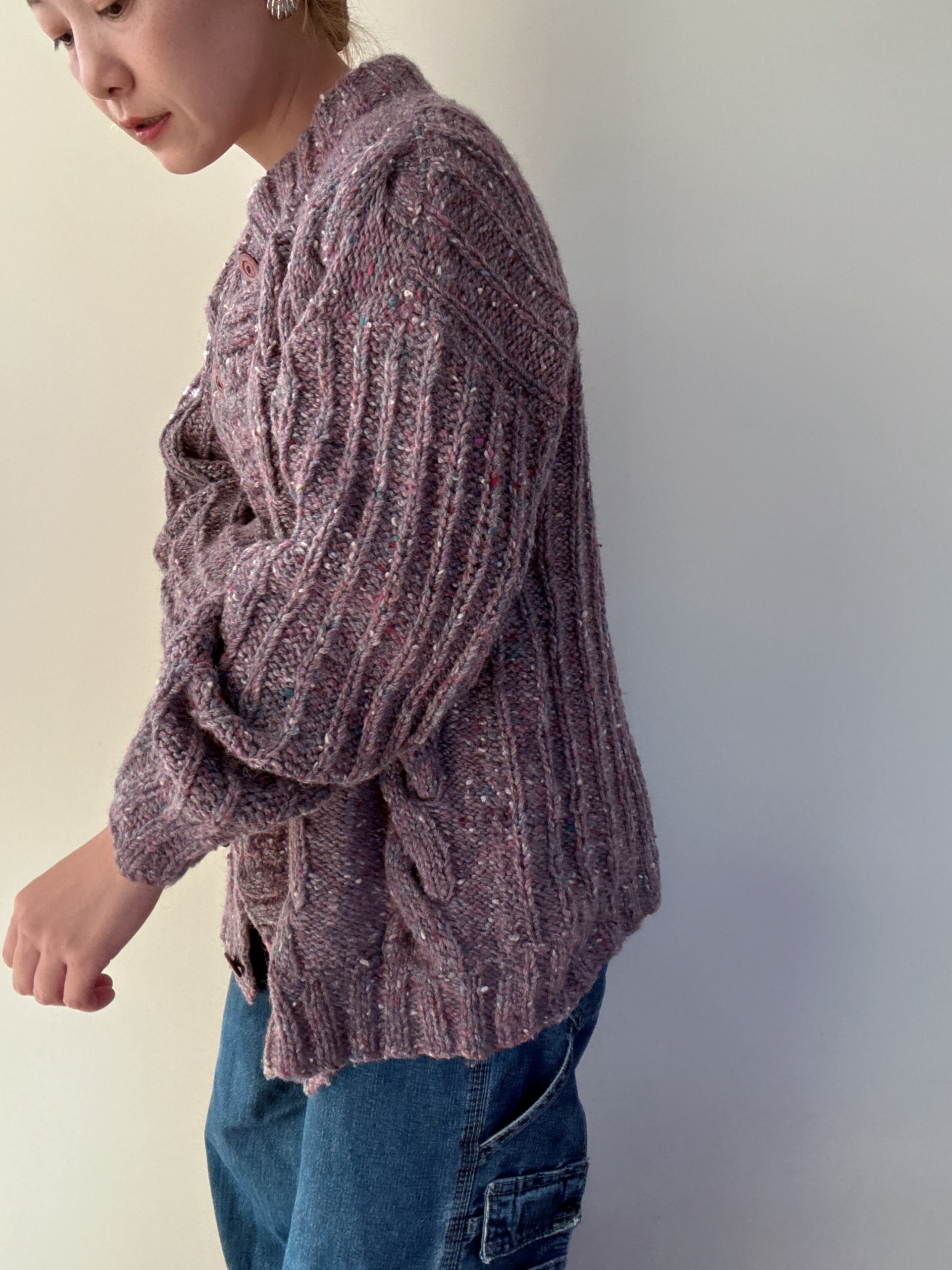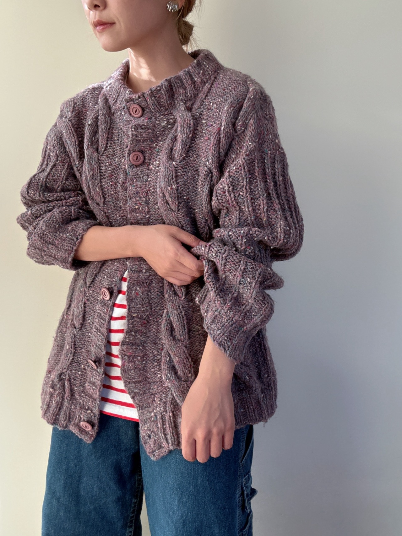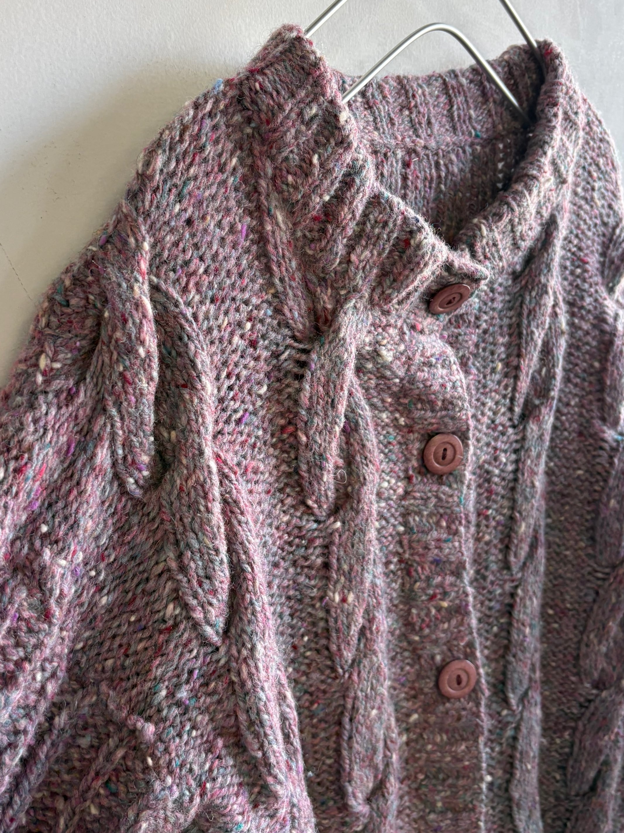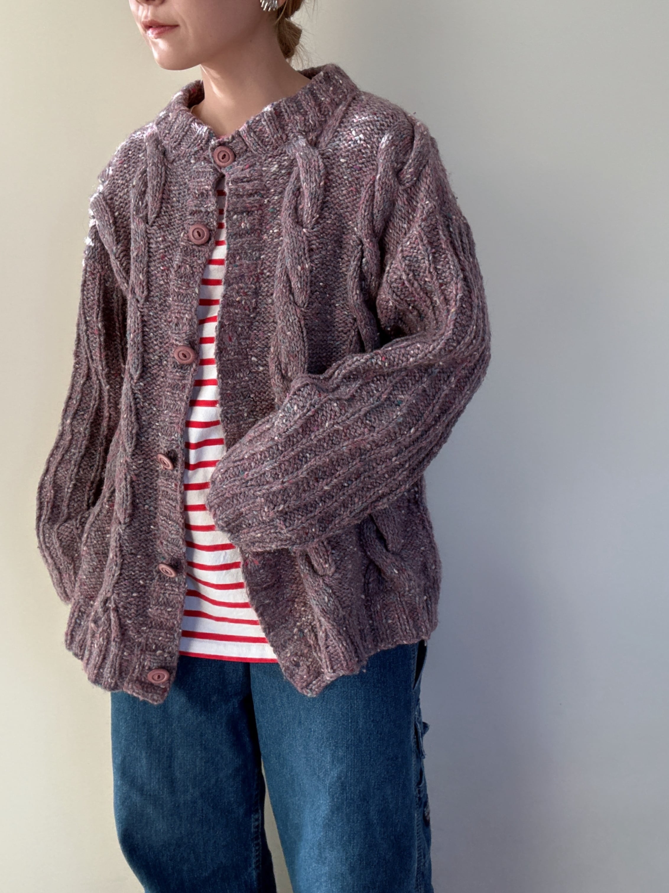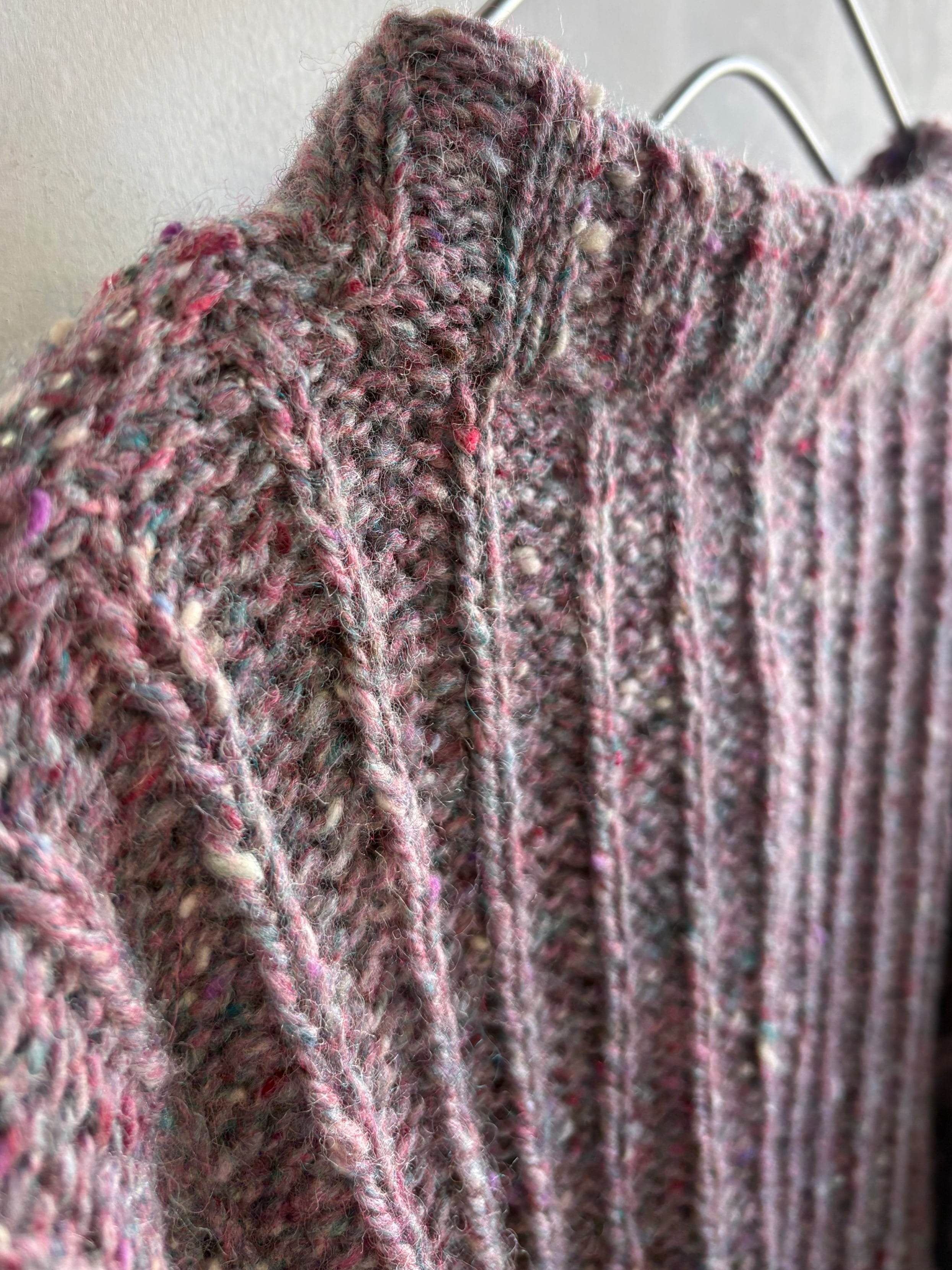 鮮やかなピンクやアイボリー色の色が混ざった糸を使用しており、
