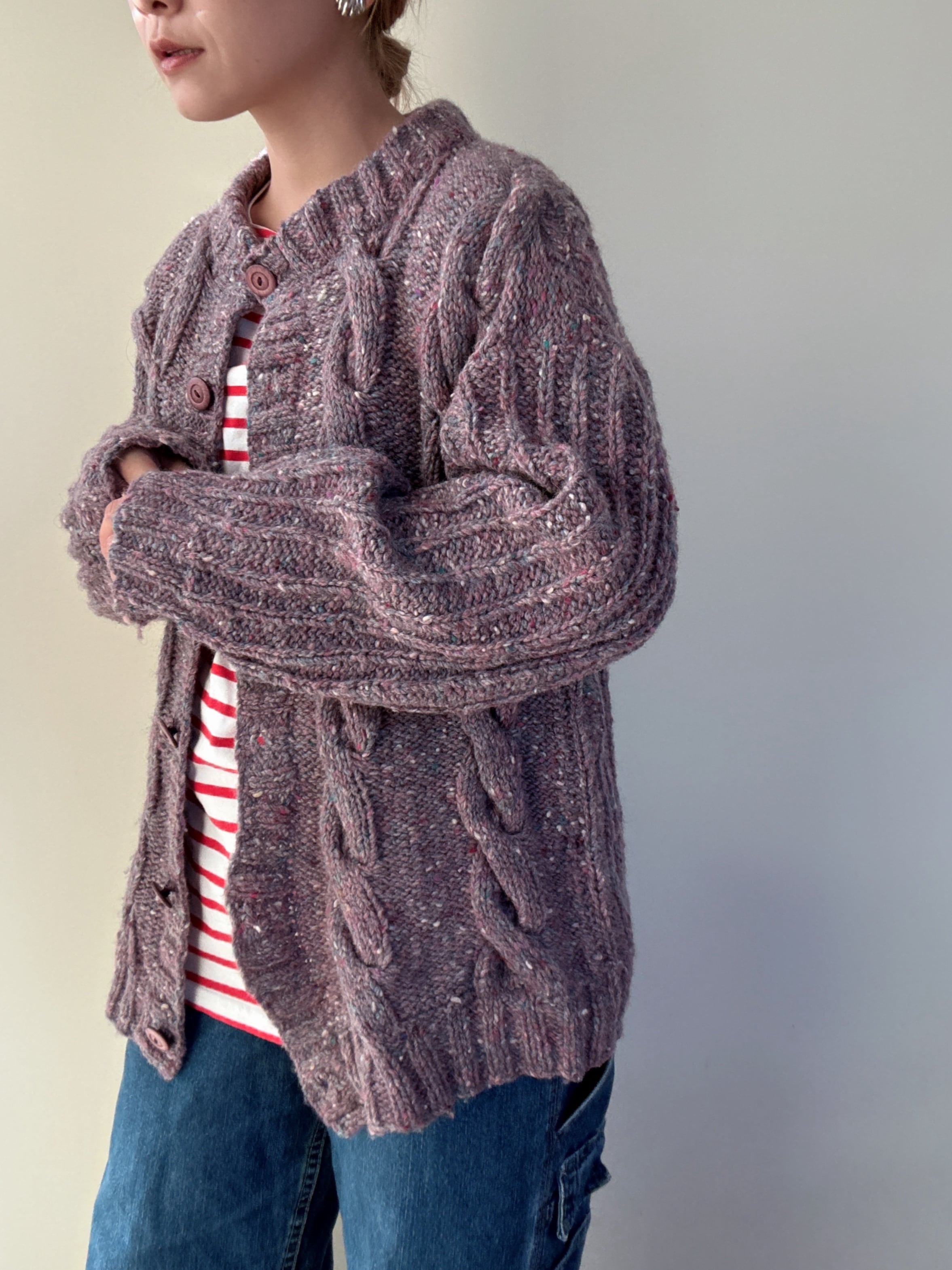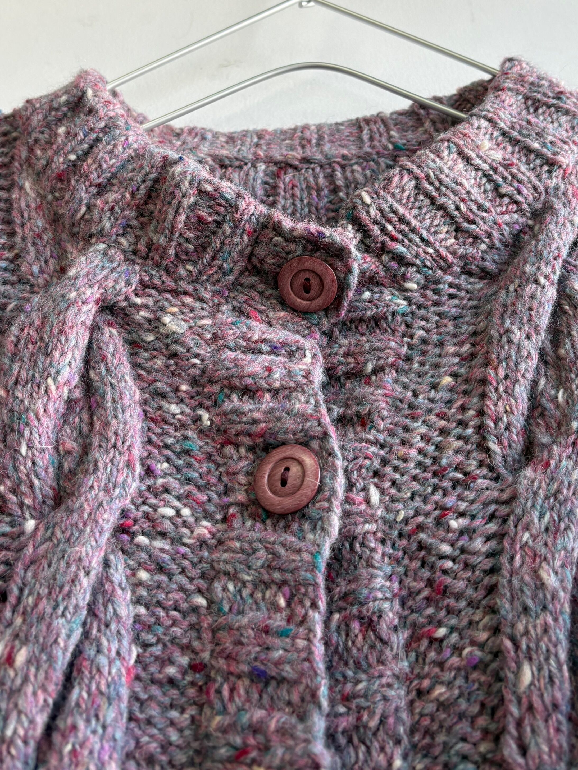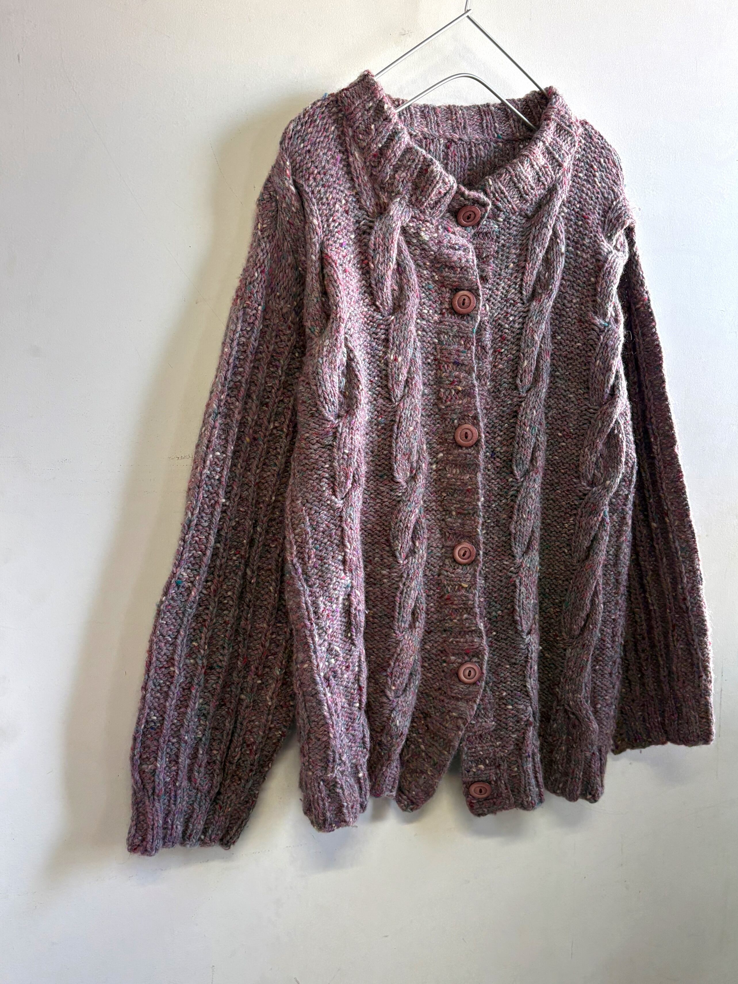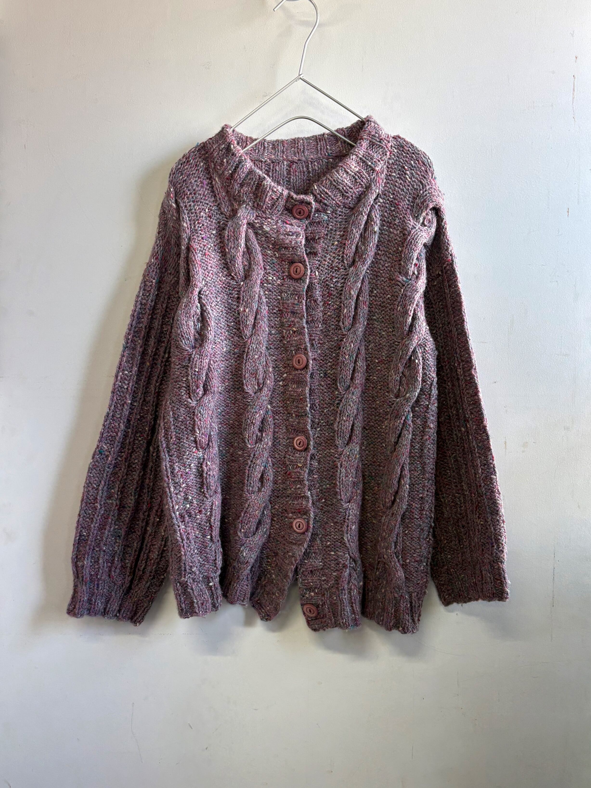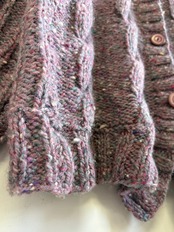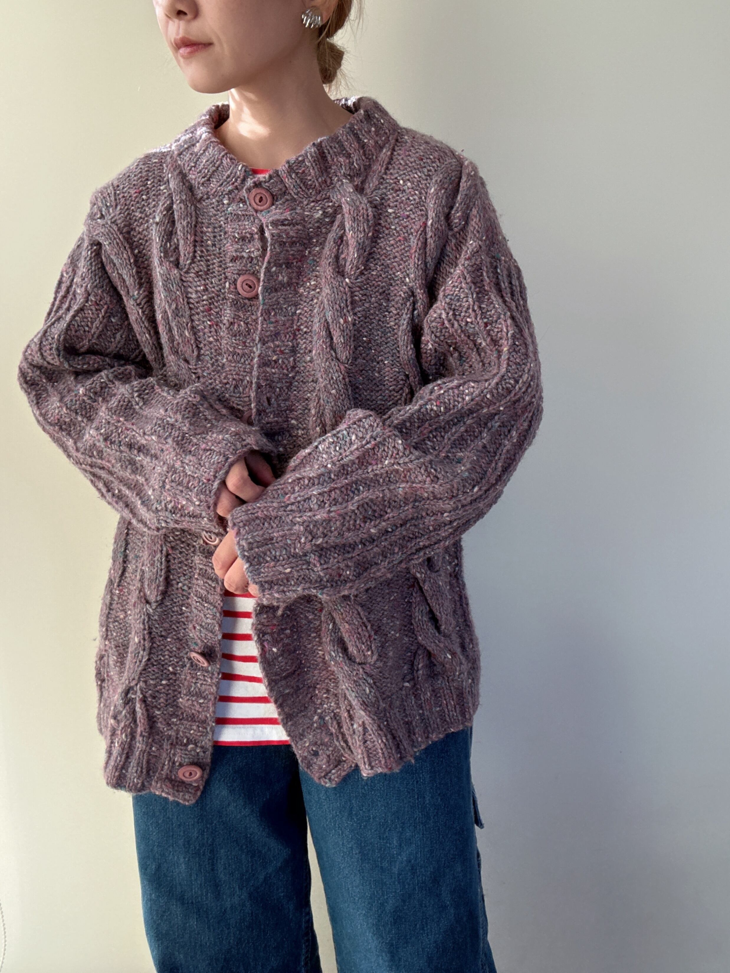 鮮やかなピンクやアイボリー色の色が混ざった糸を使用しており、