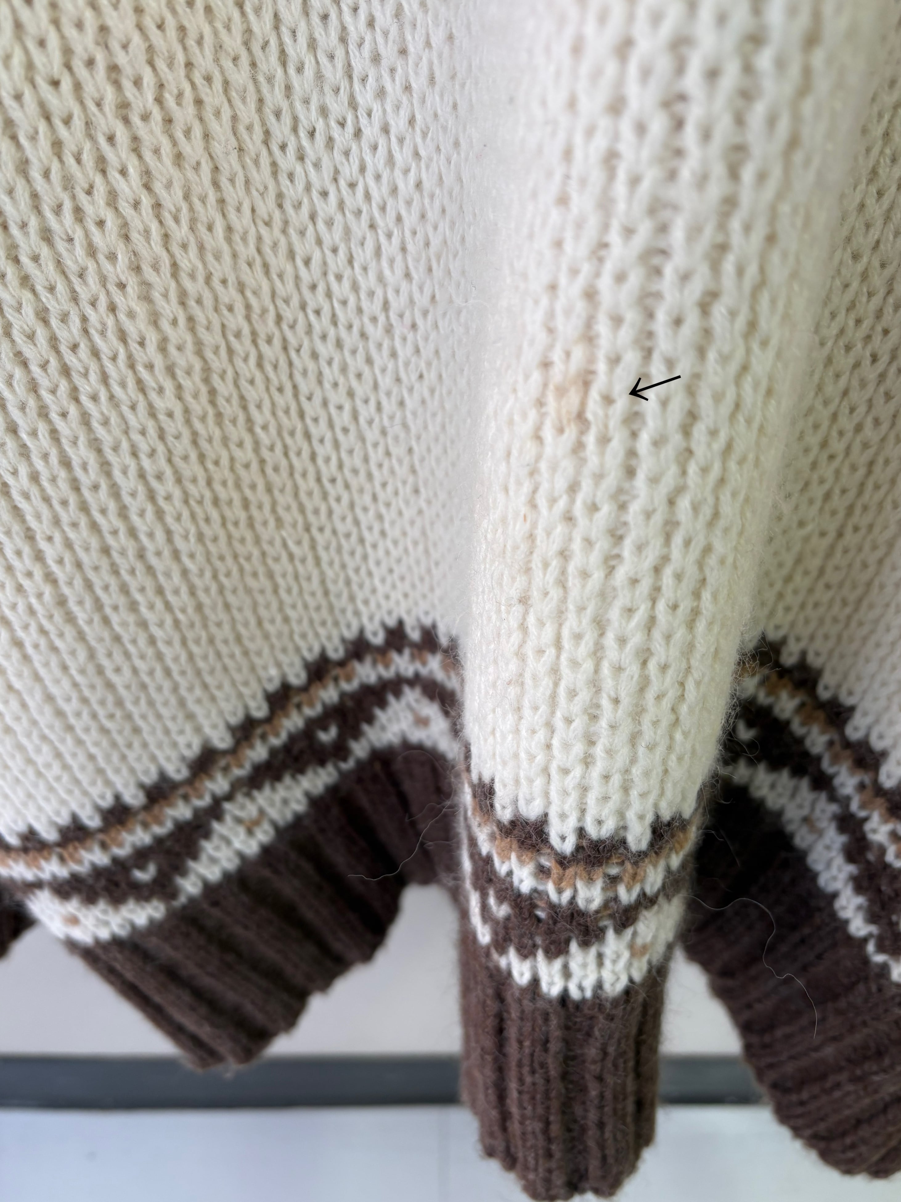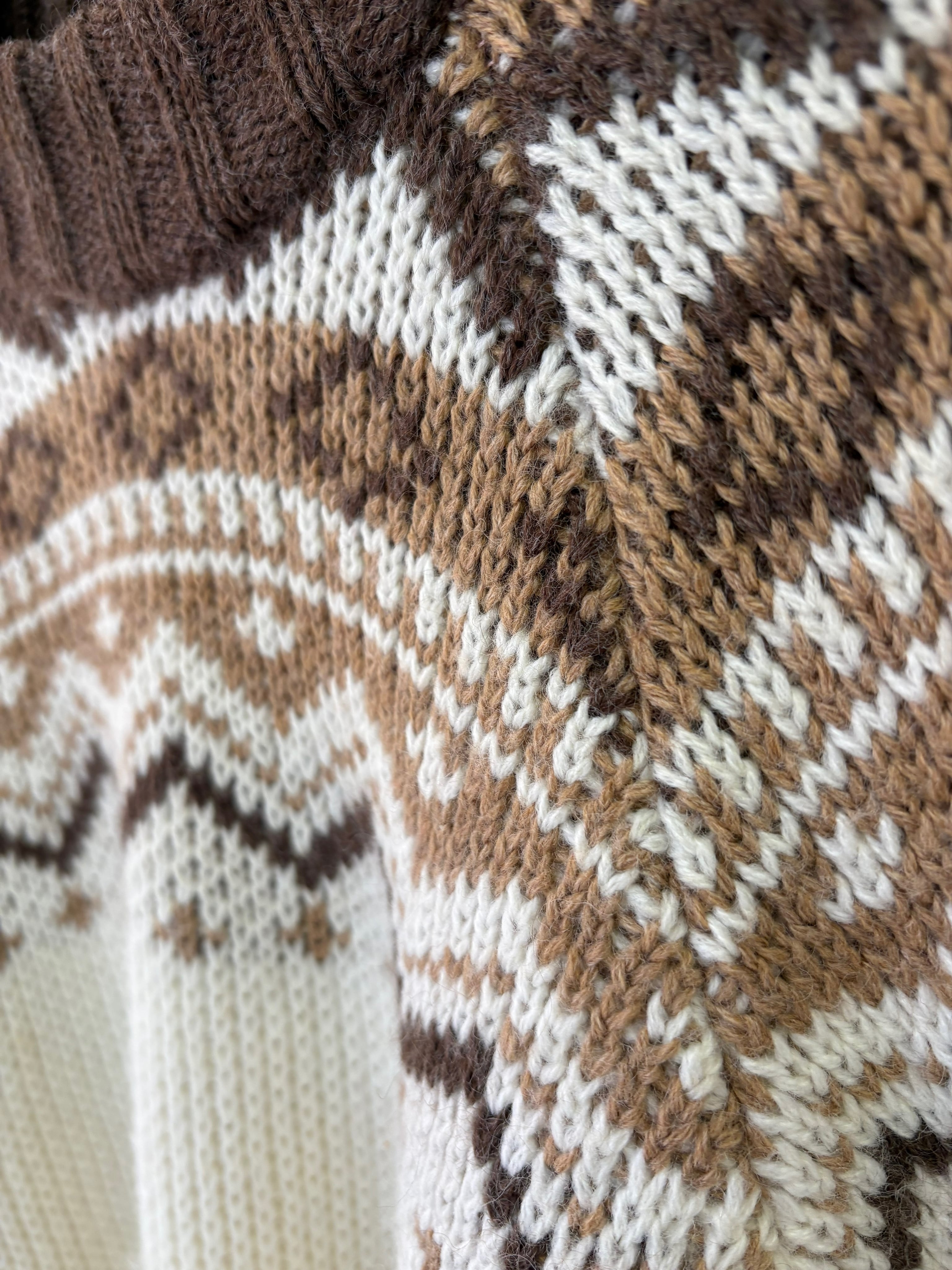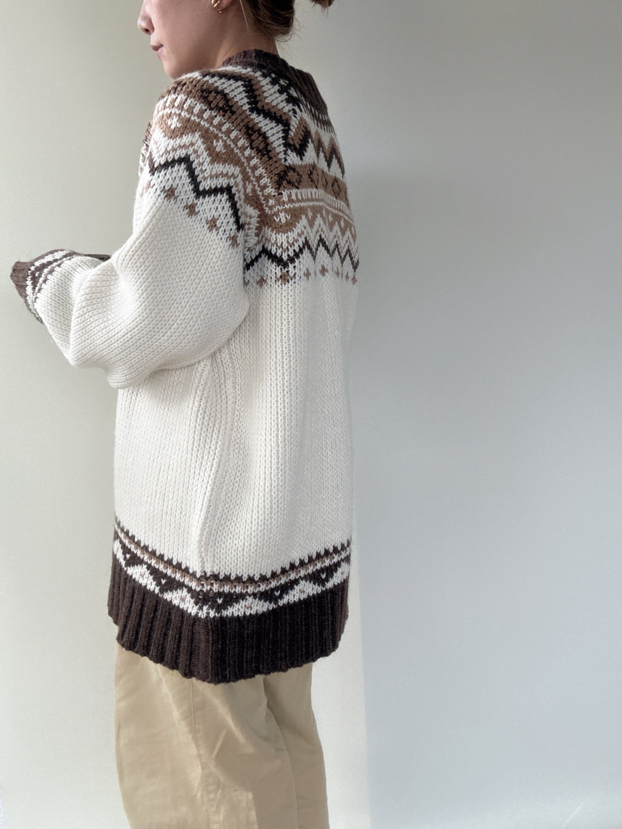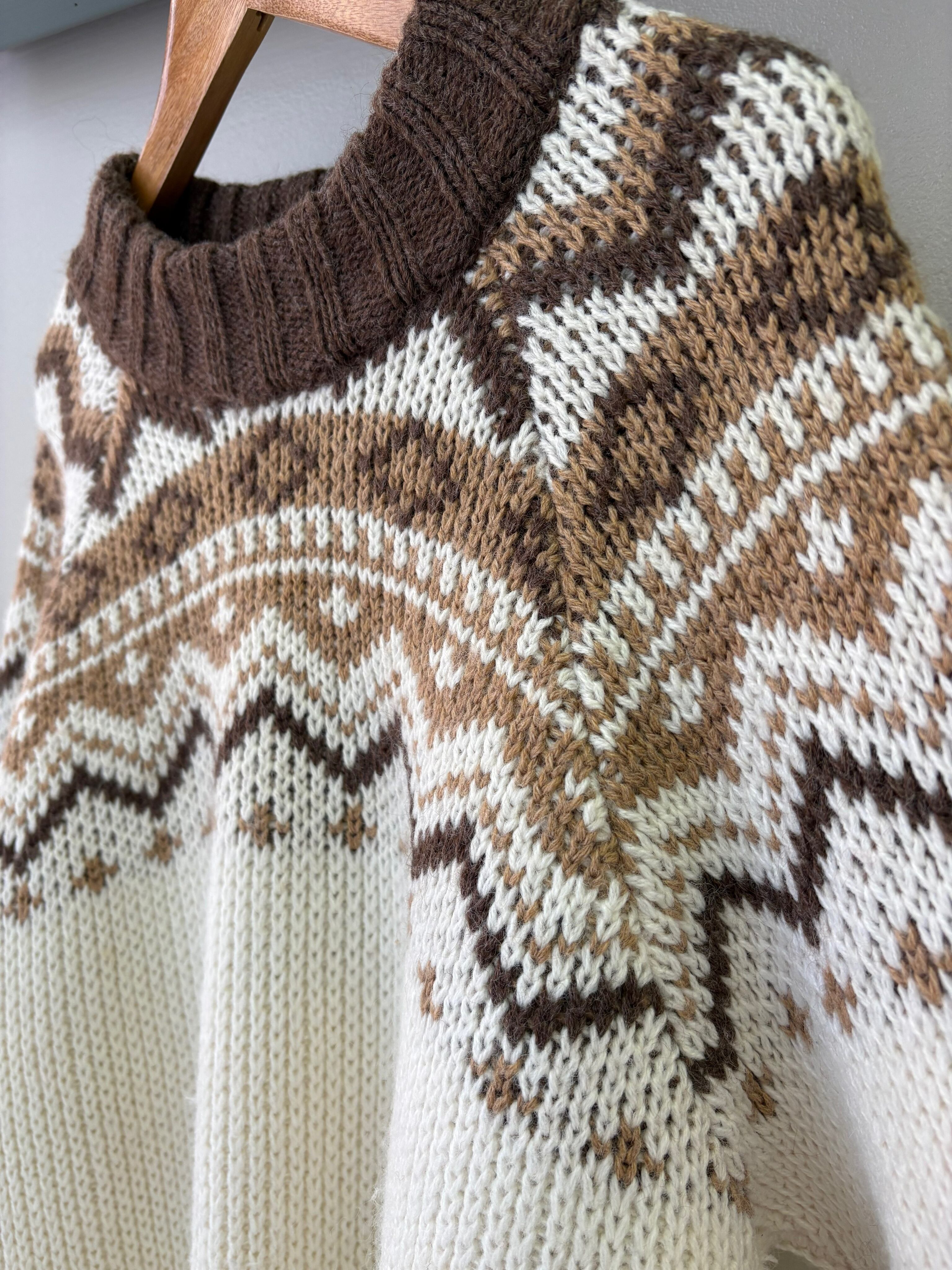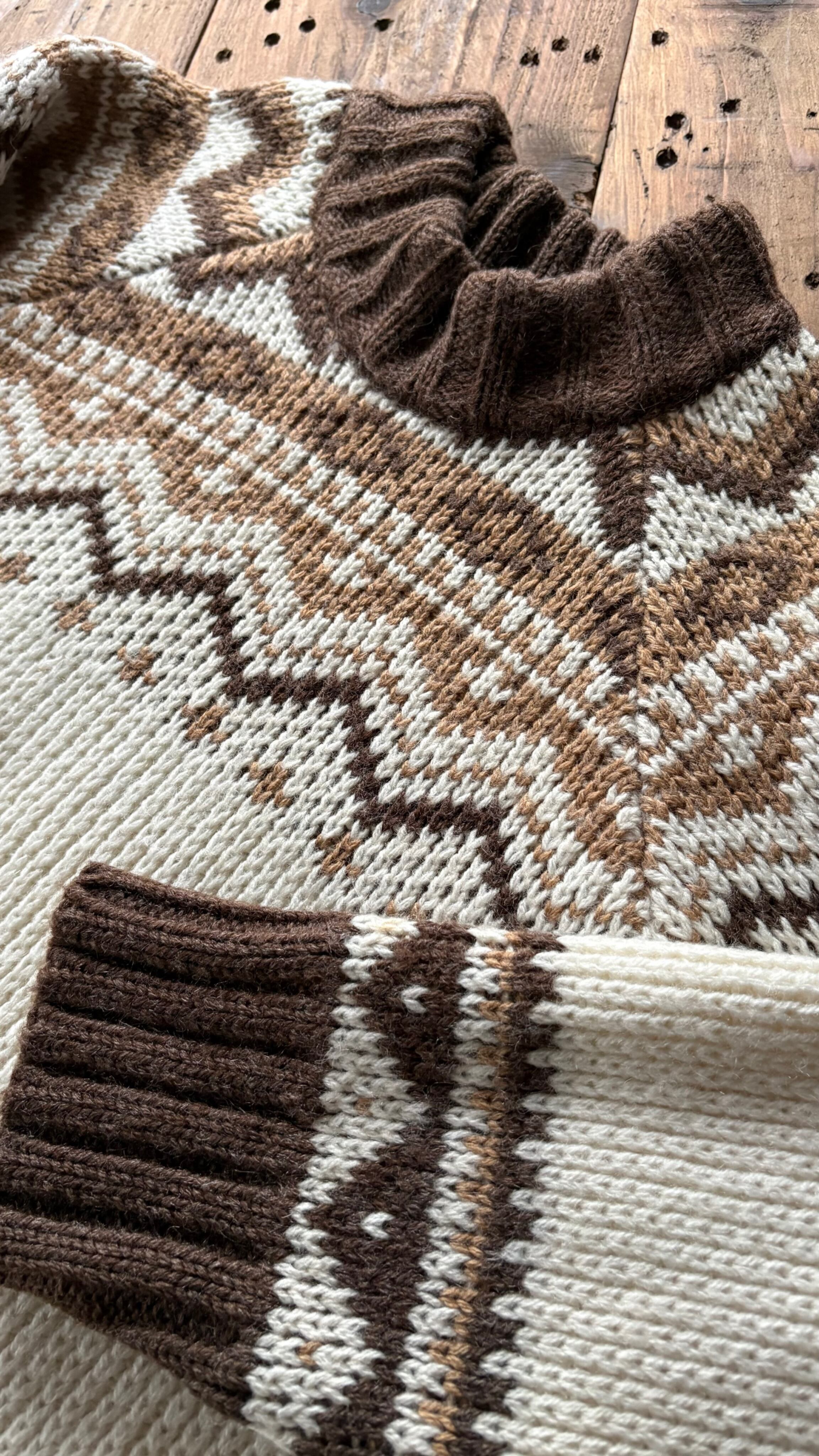 ブラウン、ベージュのノルディックデザインが温かみあるヨーロッパ製のセーターです。