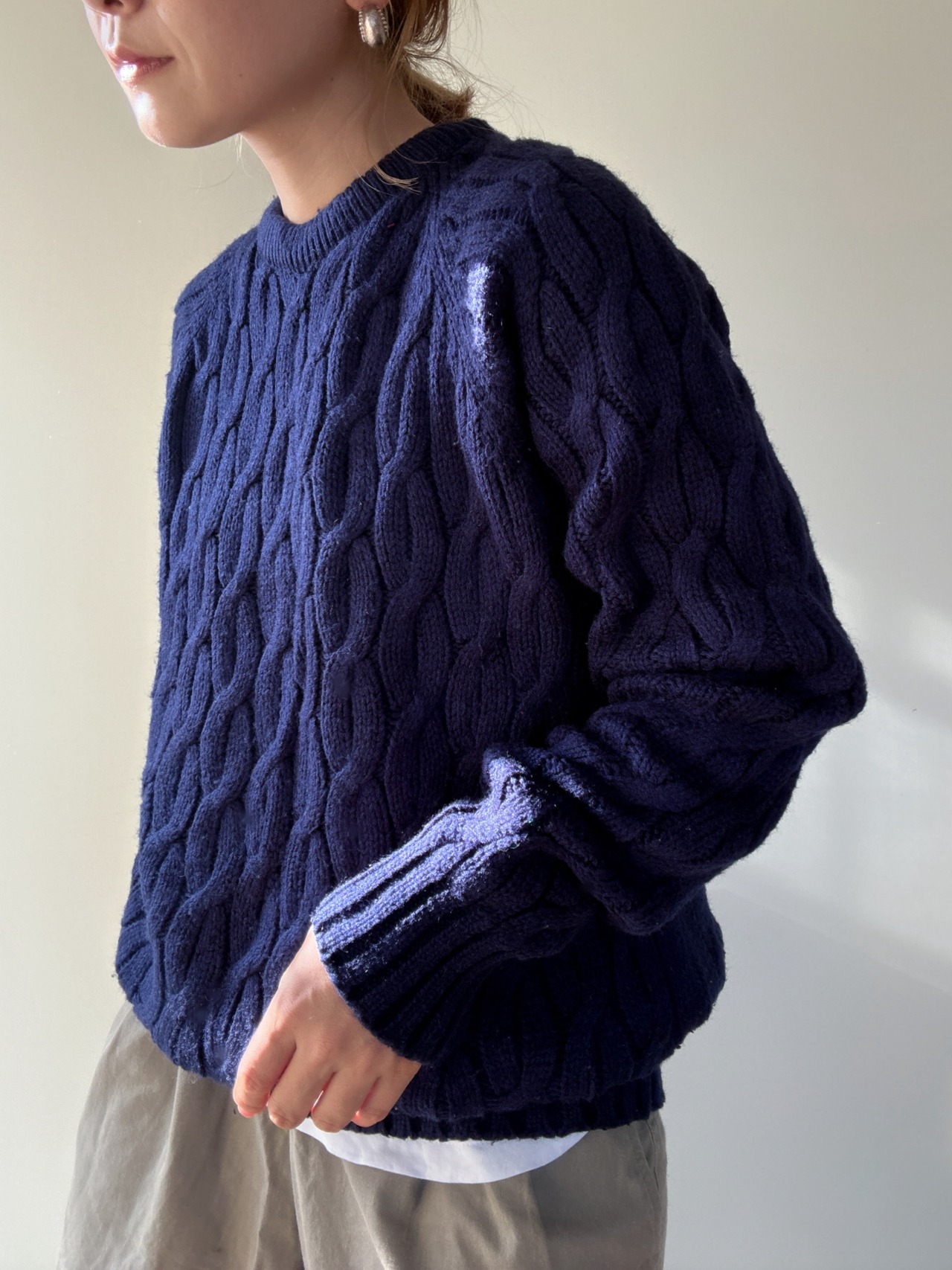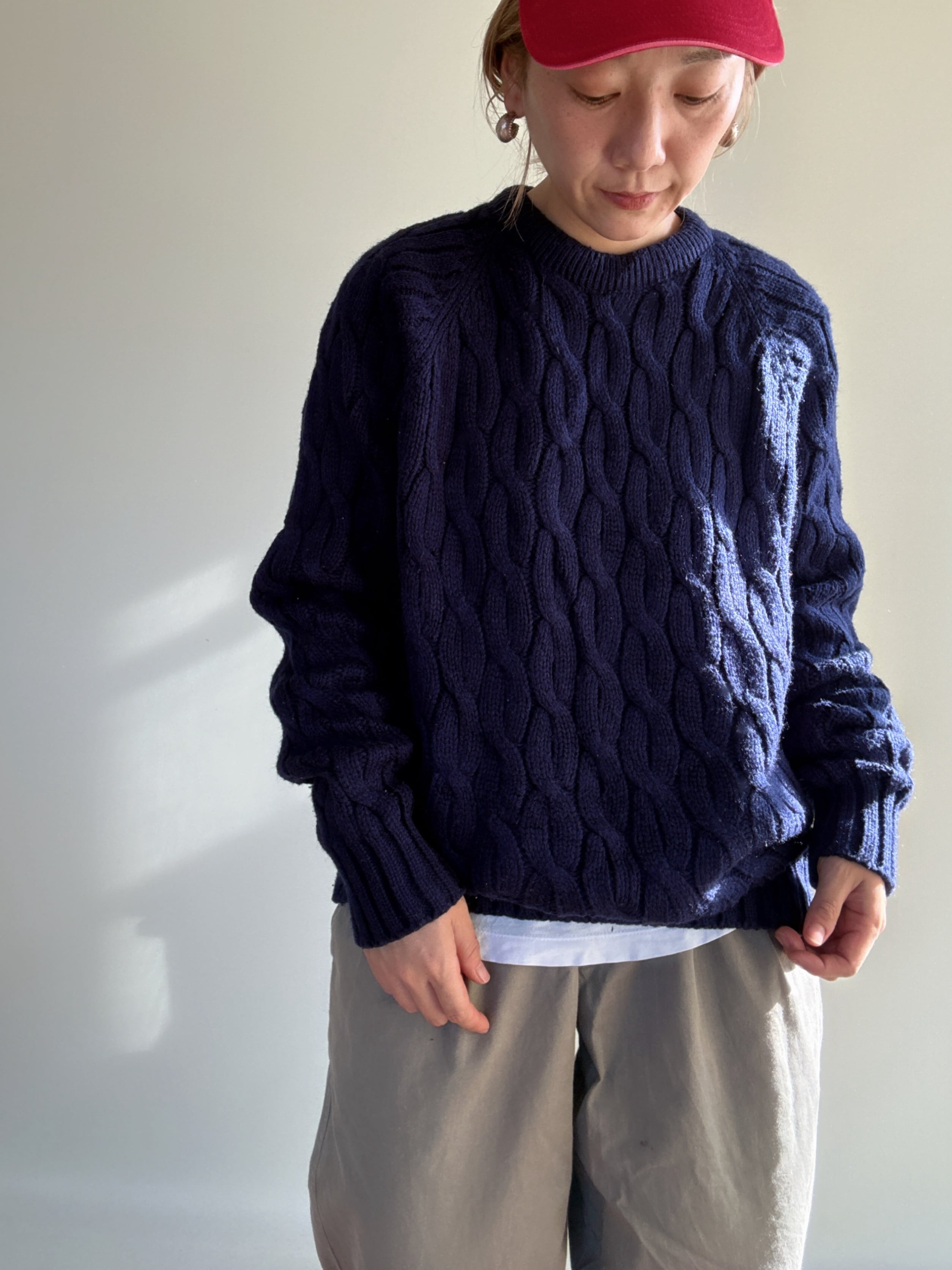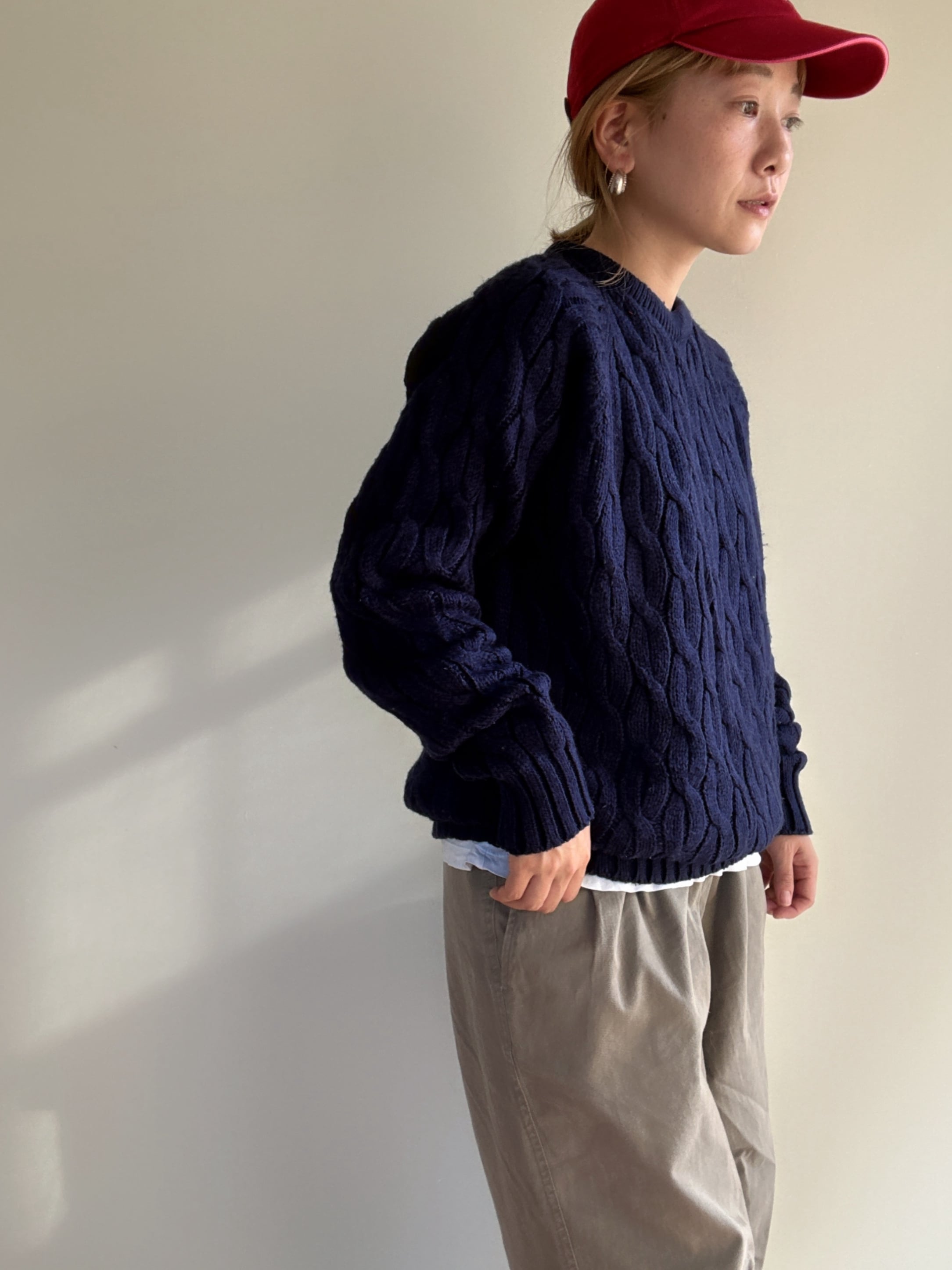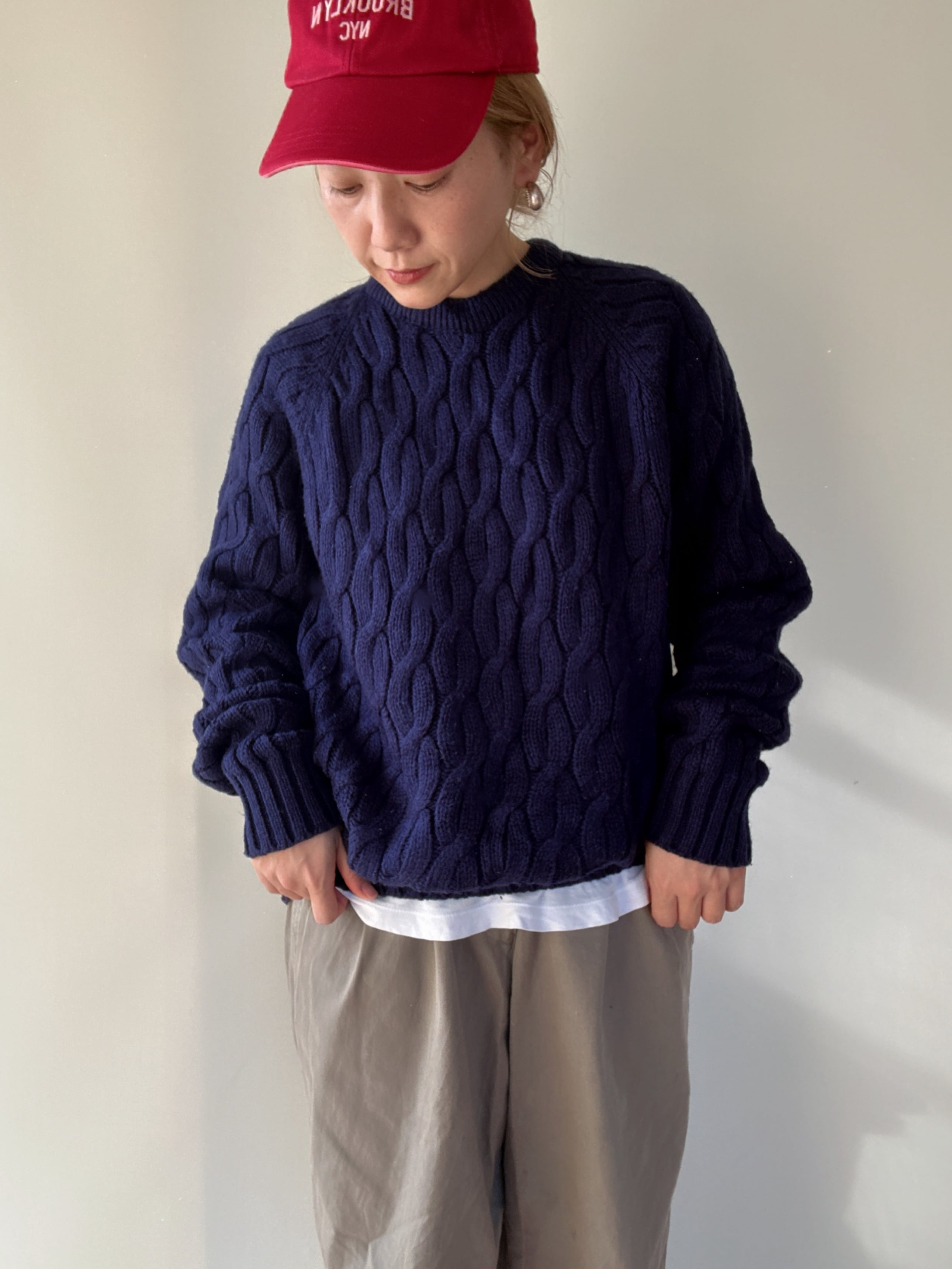 シンプルなデザインで様々なスタイルに活躍しそうなアクリルセーターです。