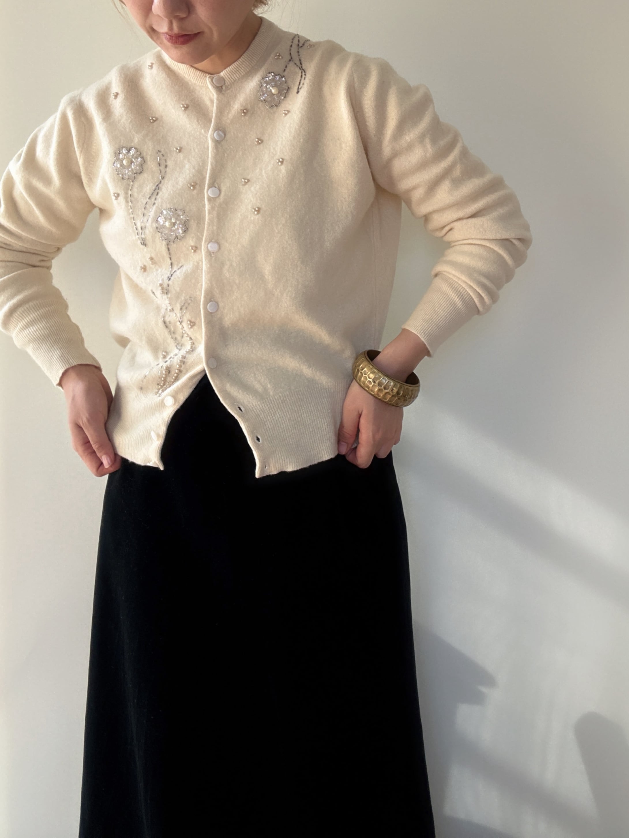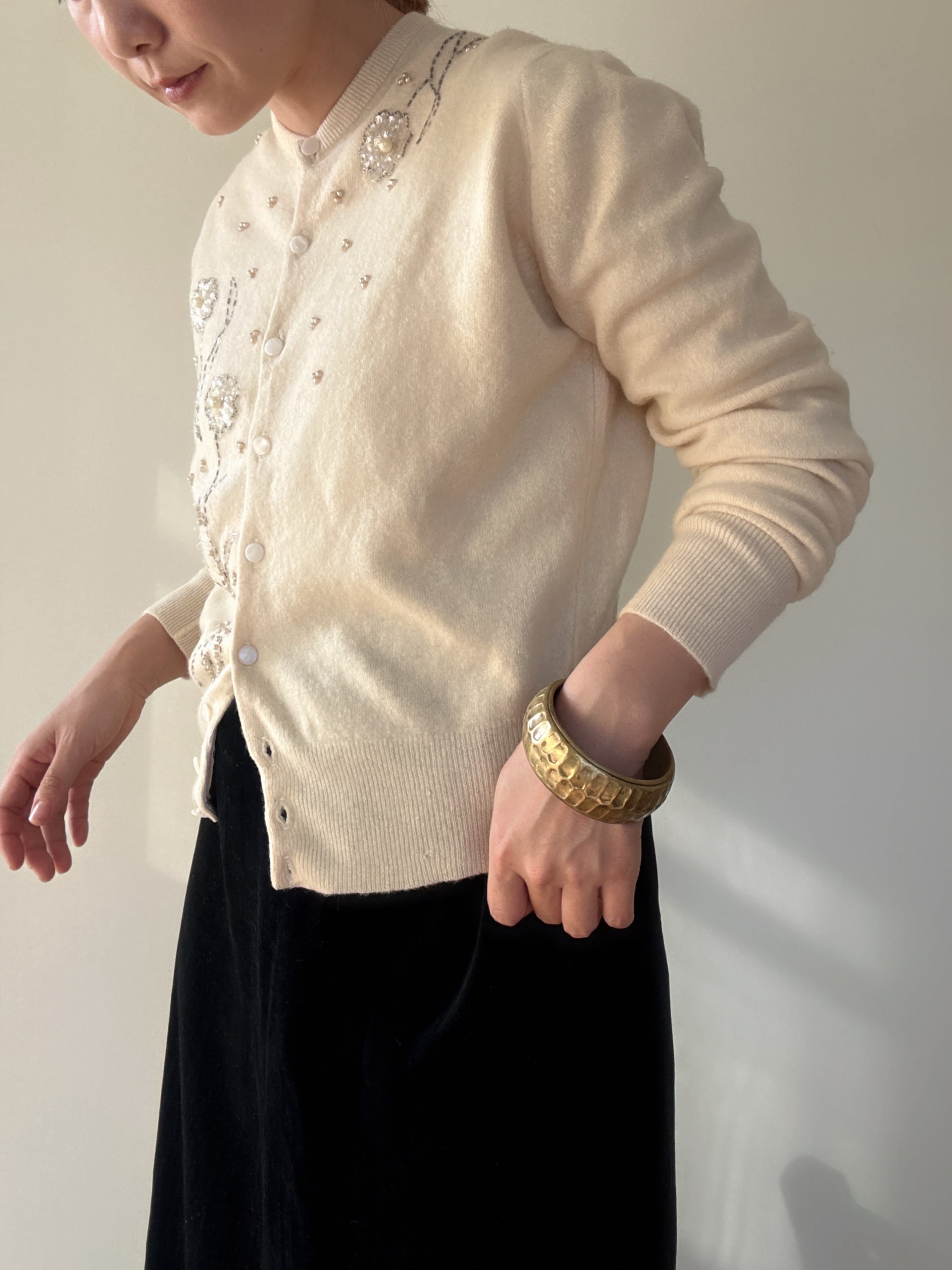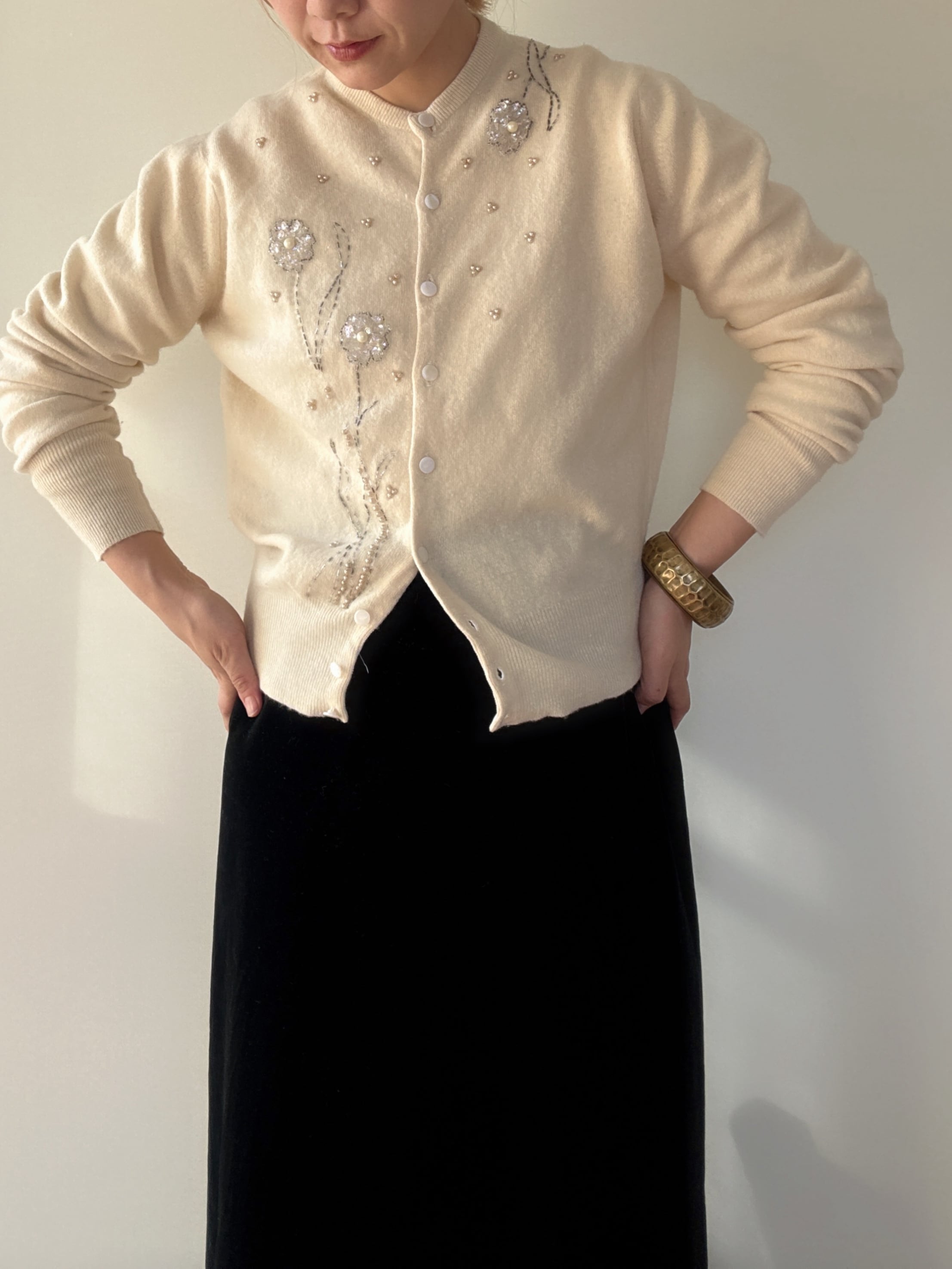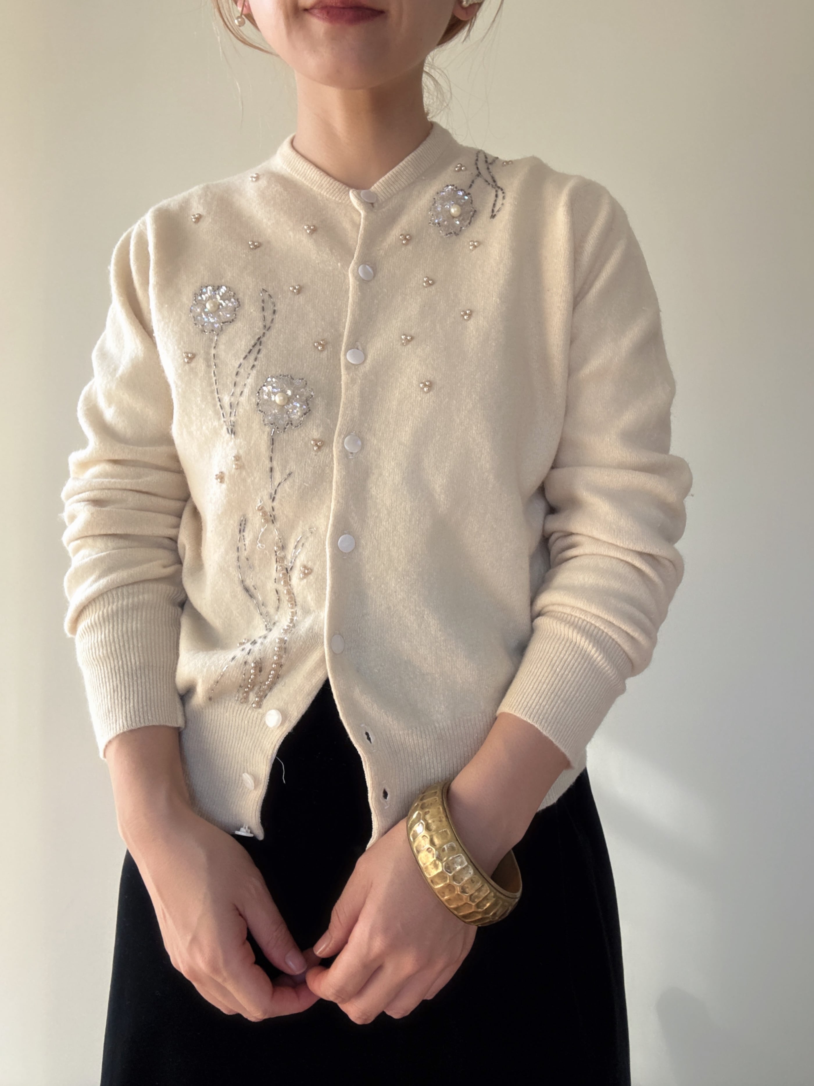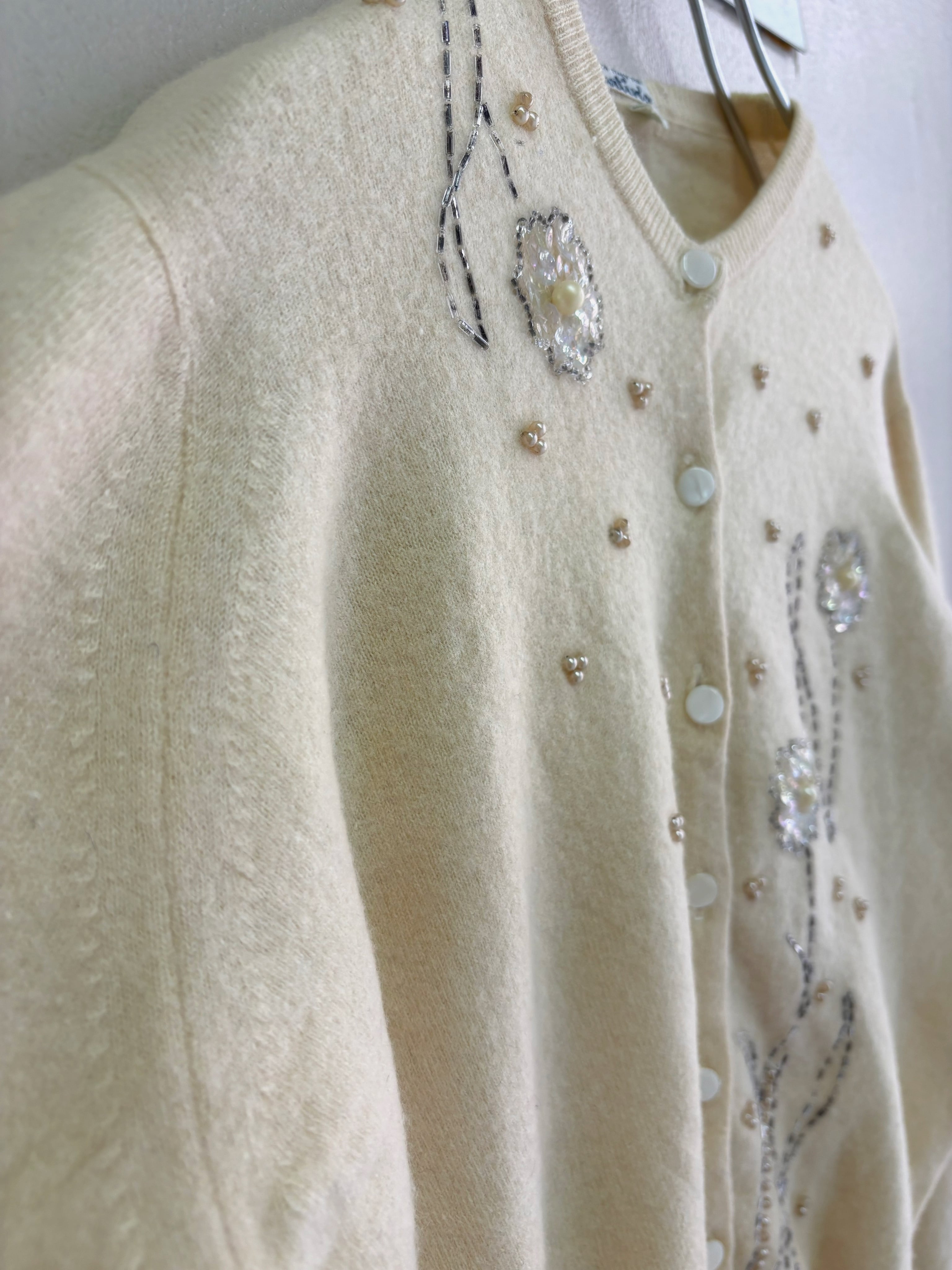 " ITALY 50-60's vintage"ivory embroidery cardigan
