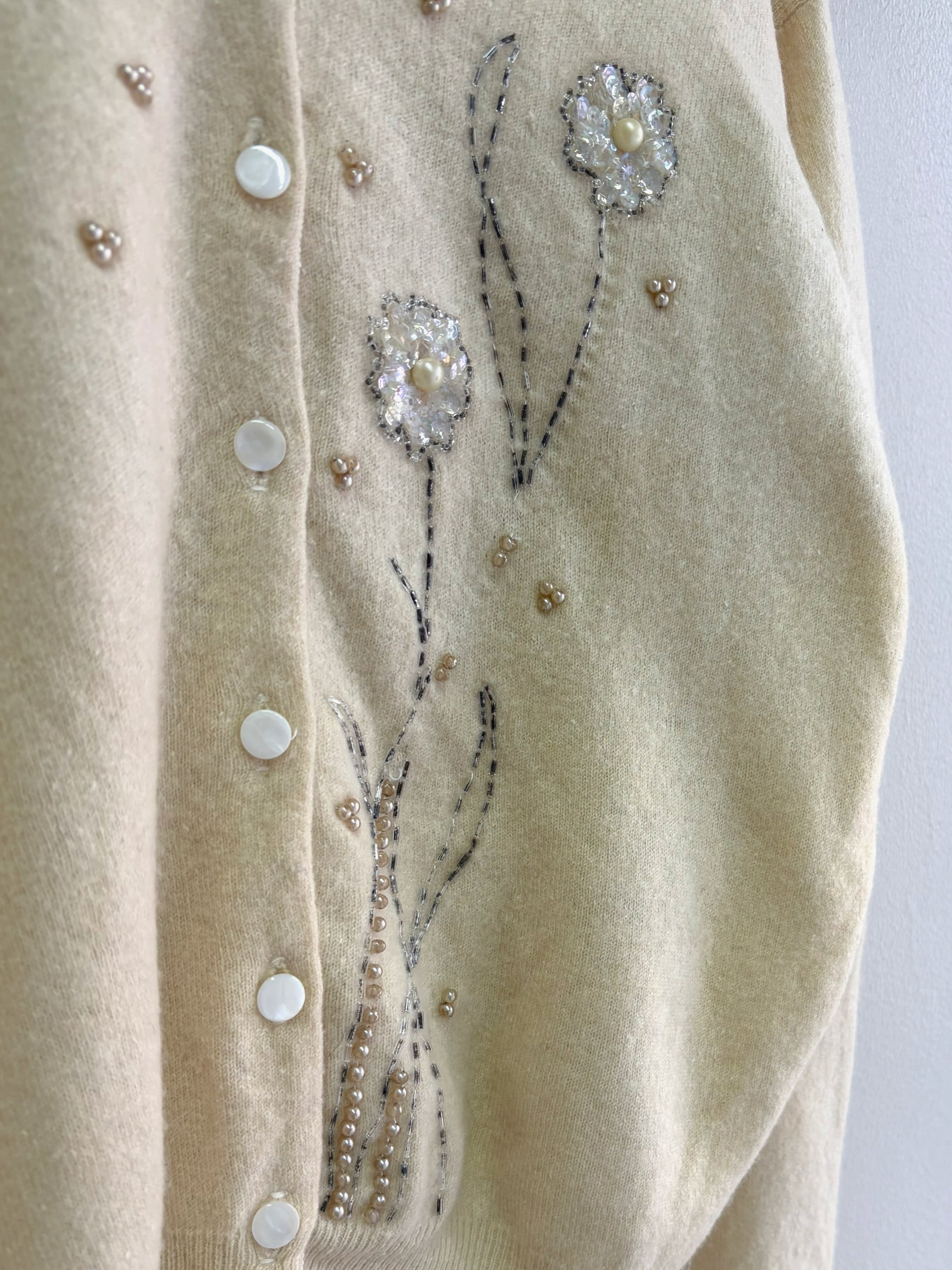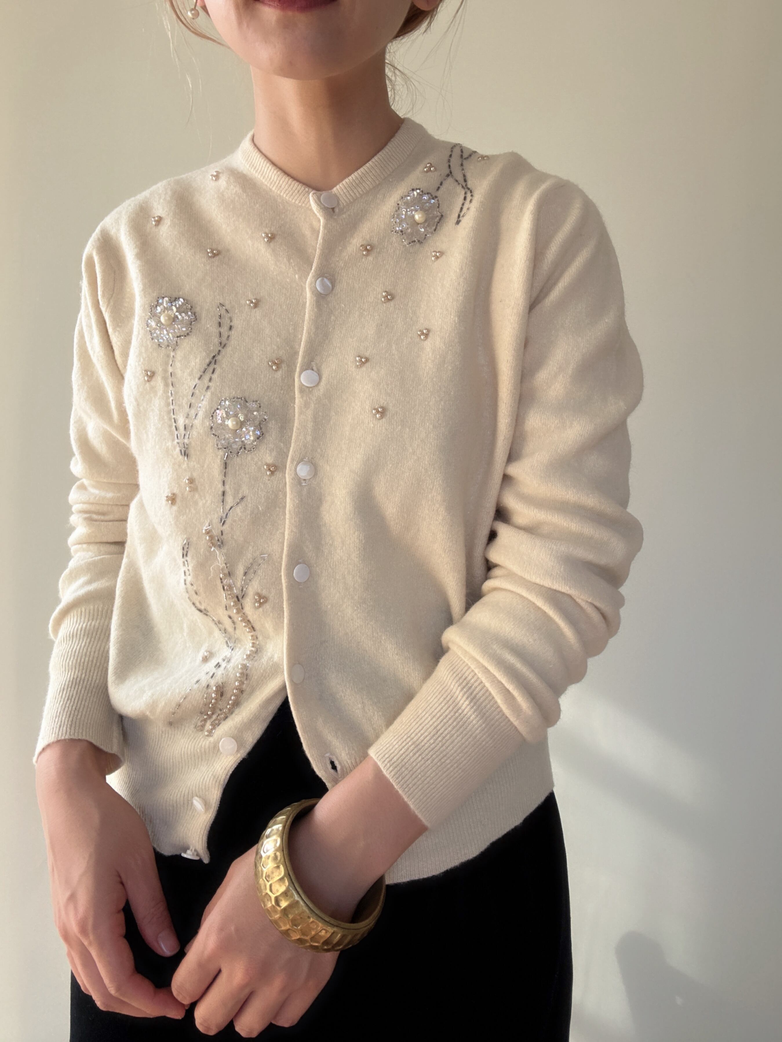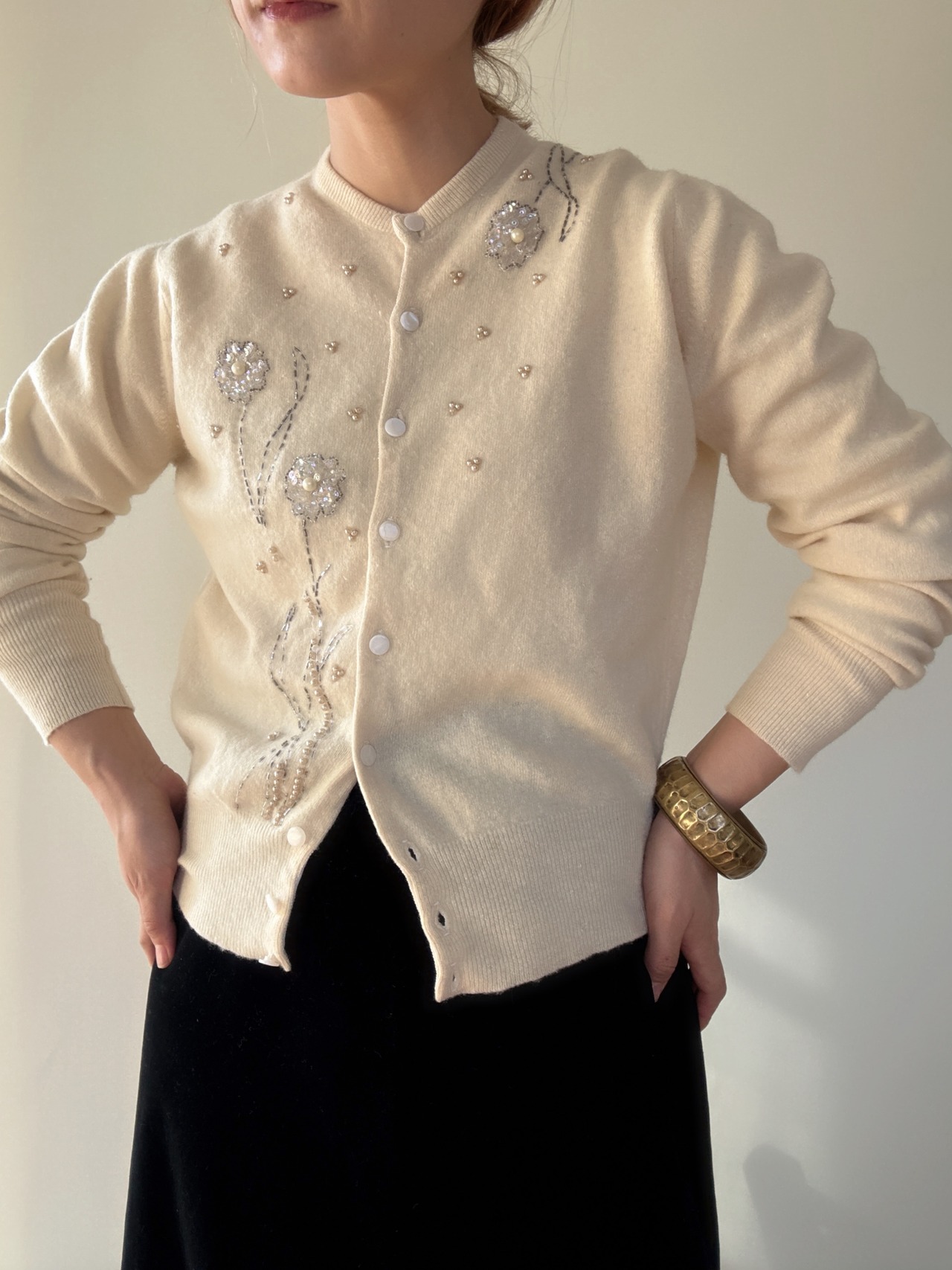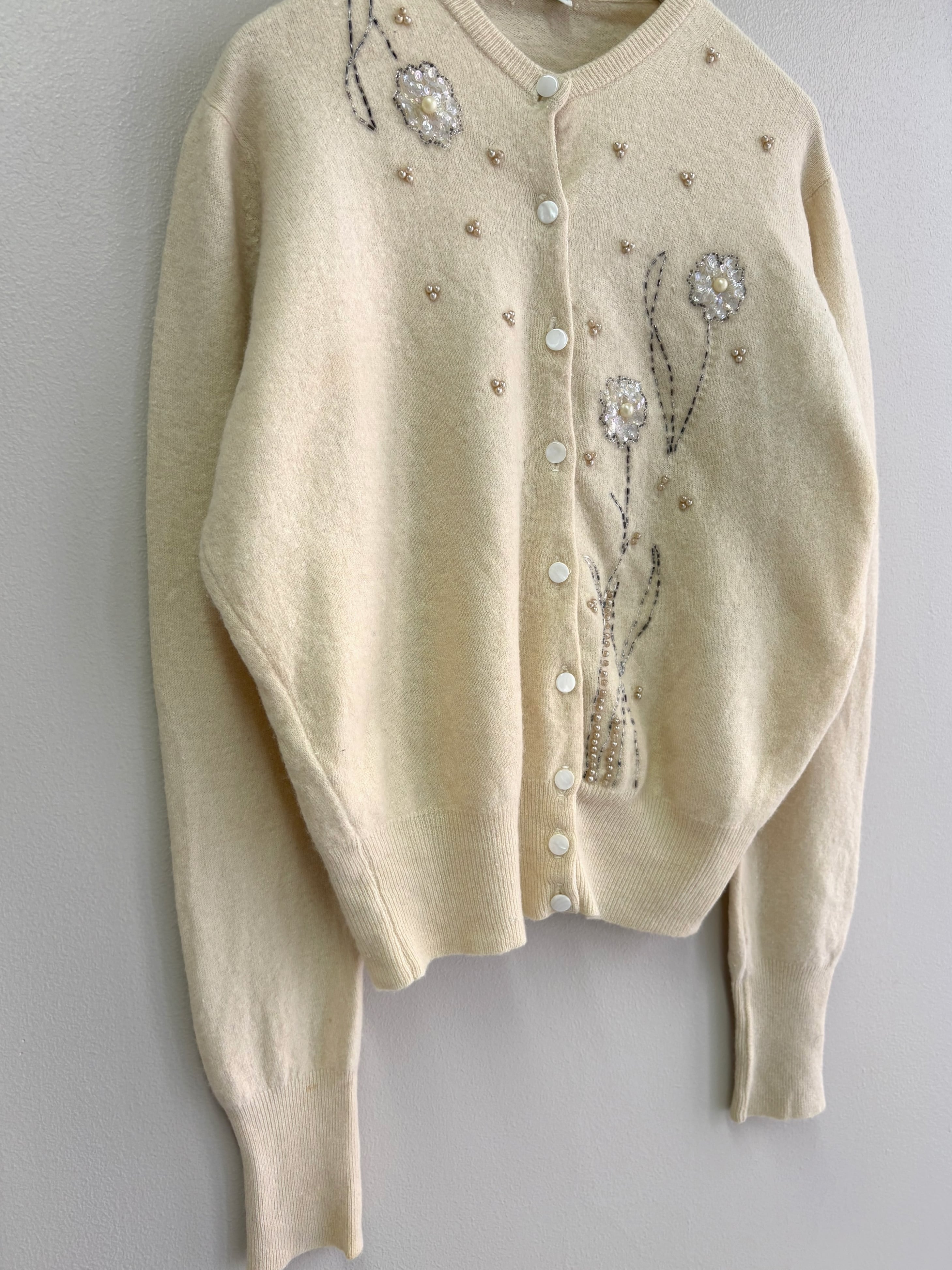 " ITALY 50-60's vintage"ivory embroidery cardigan