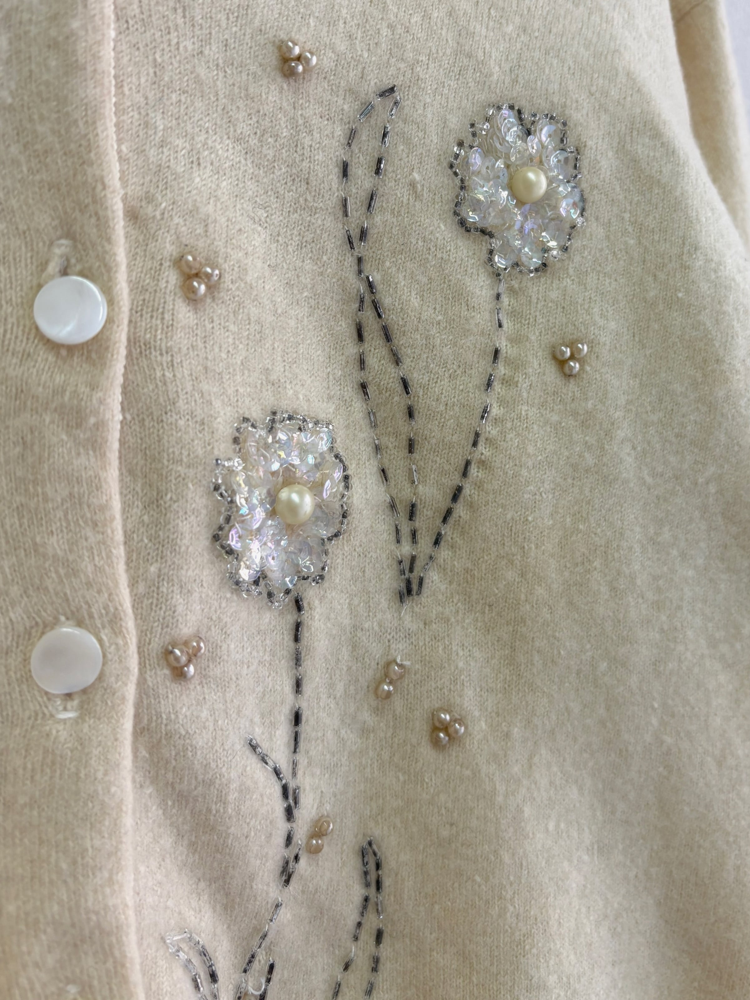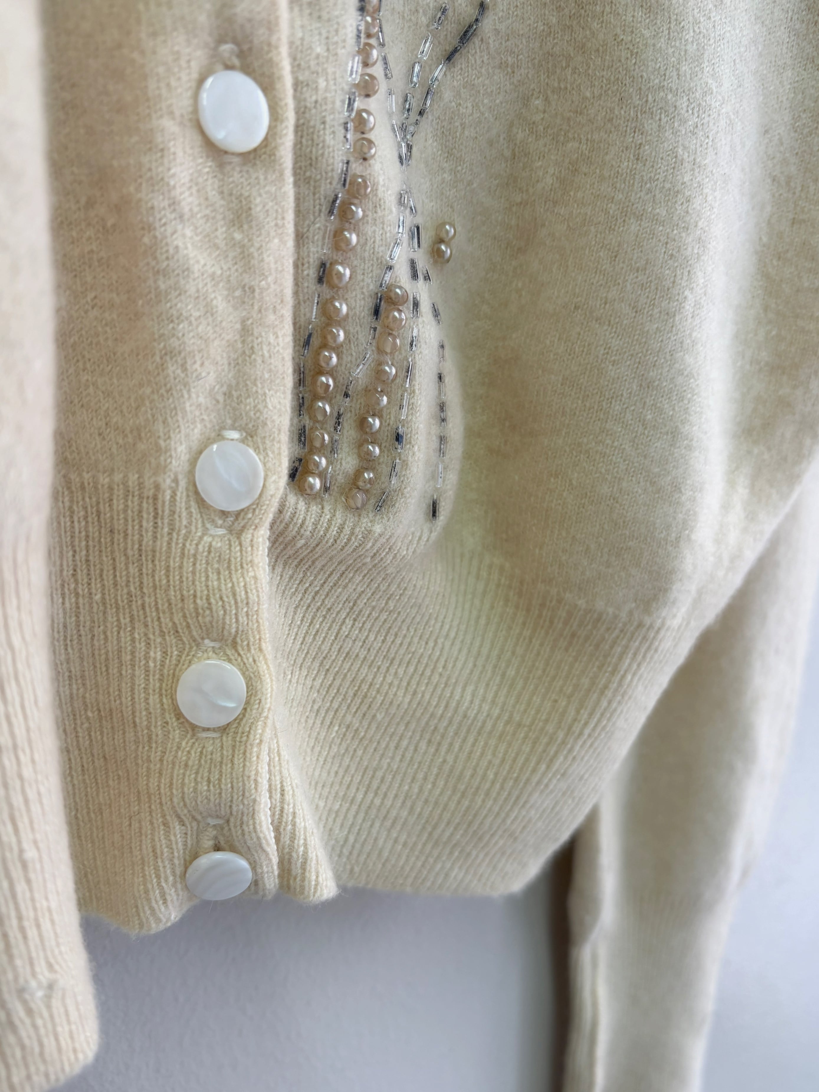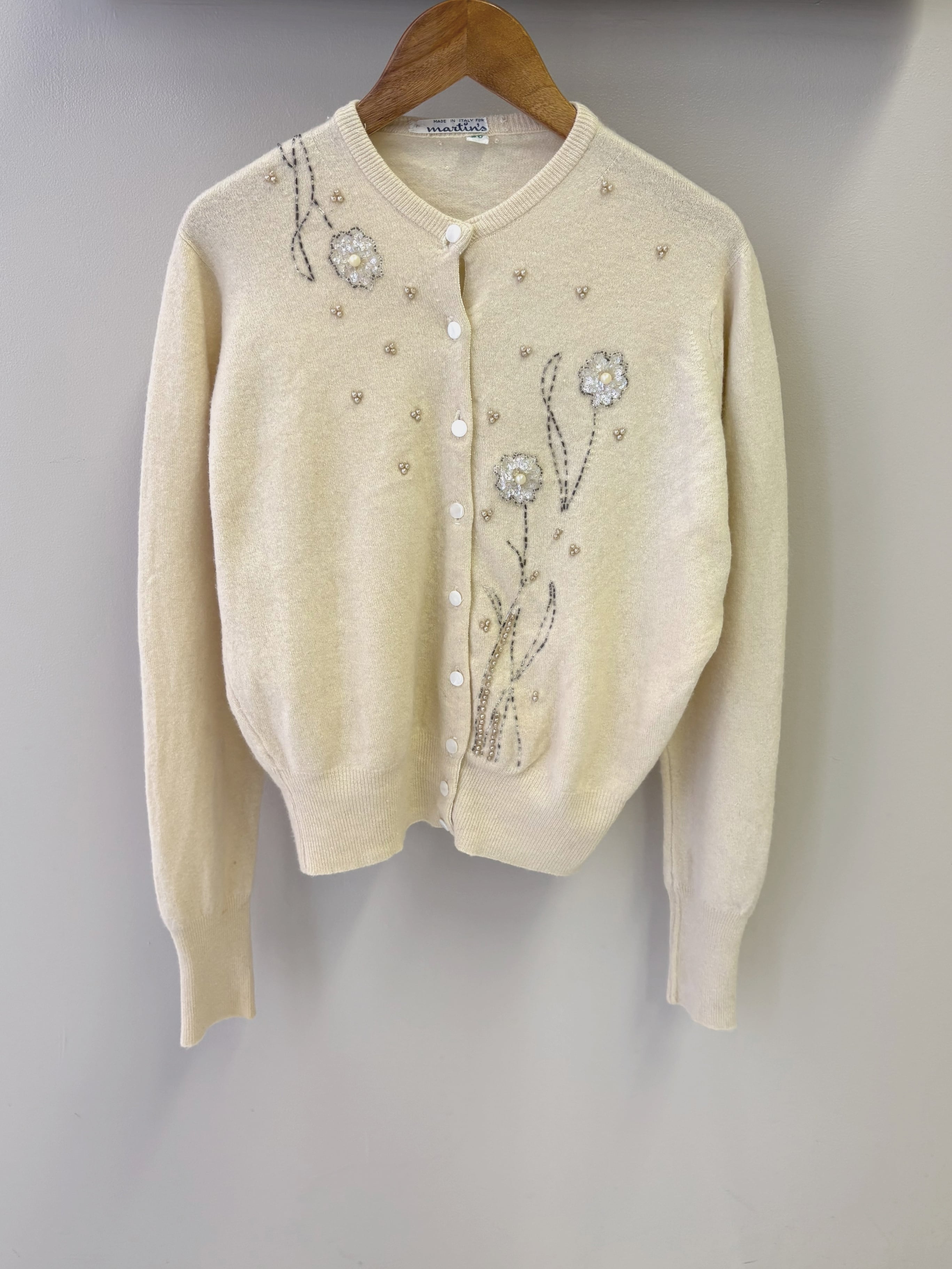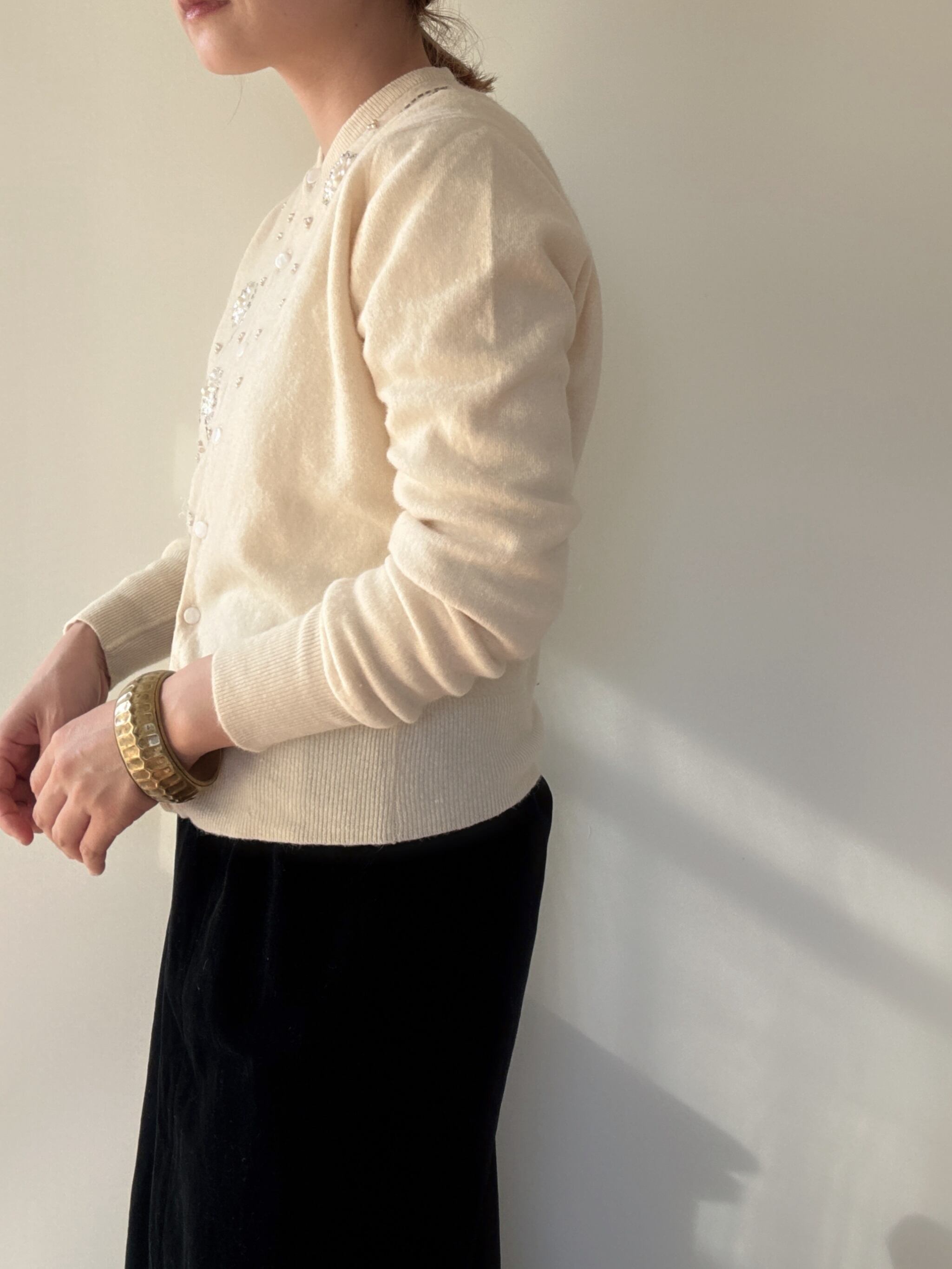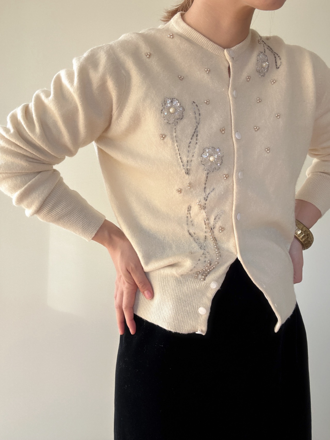 " ITALY 50-60's vintage"ivory embroidery cardigan